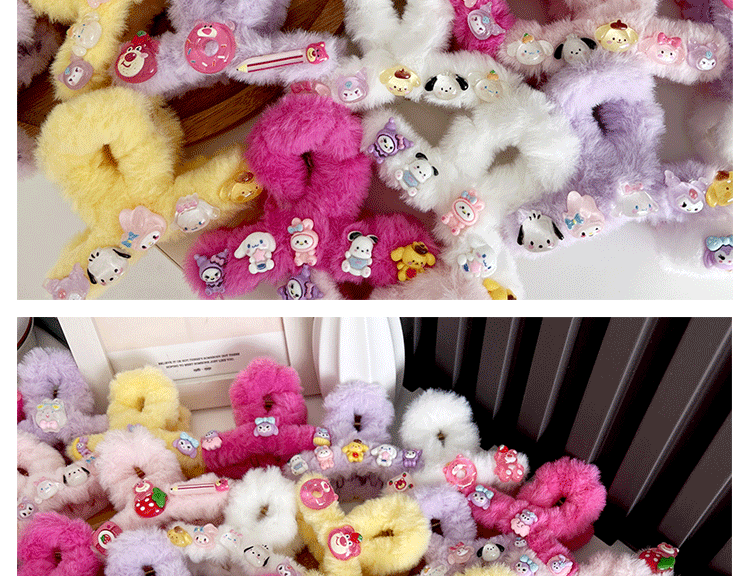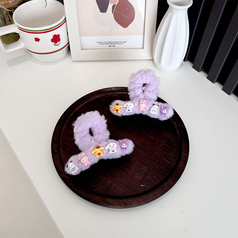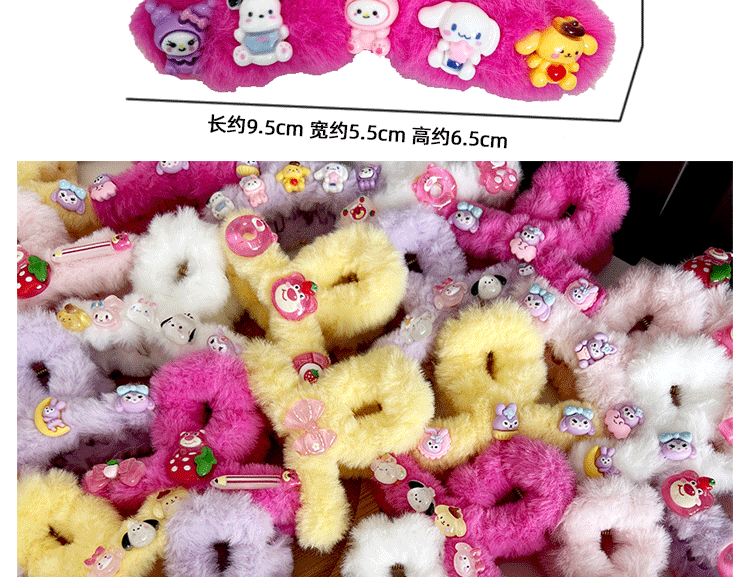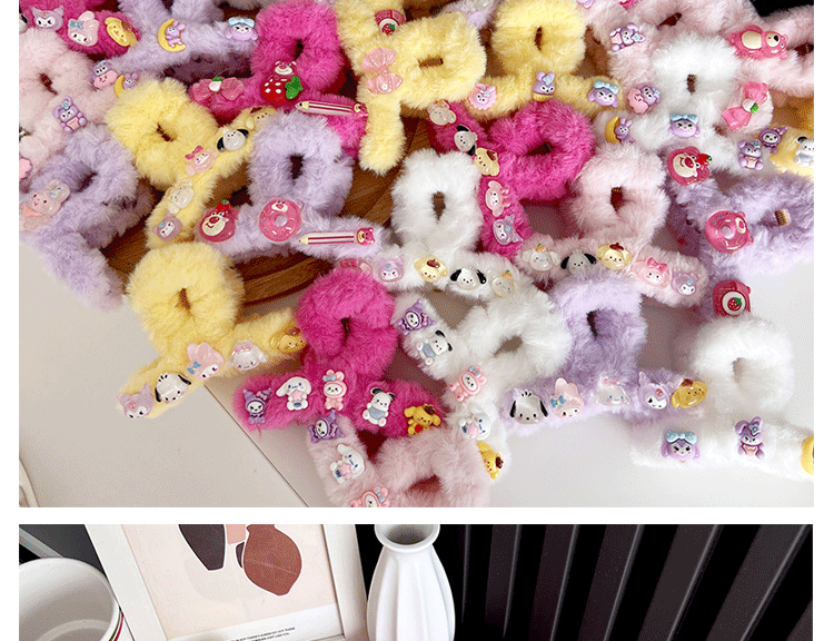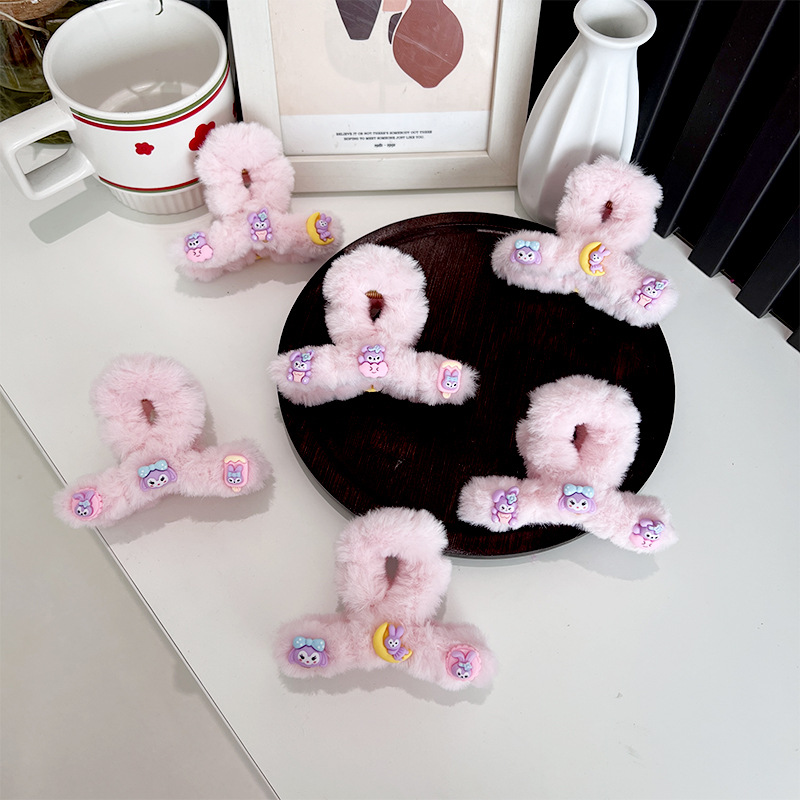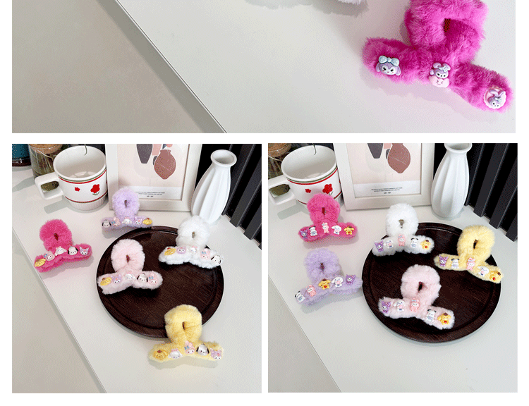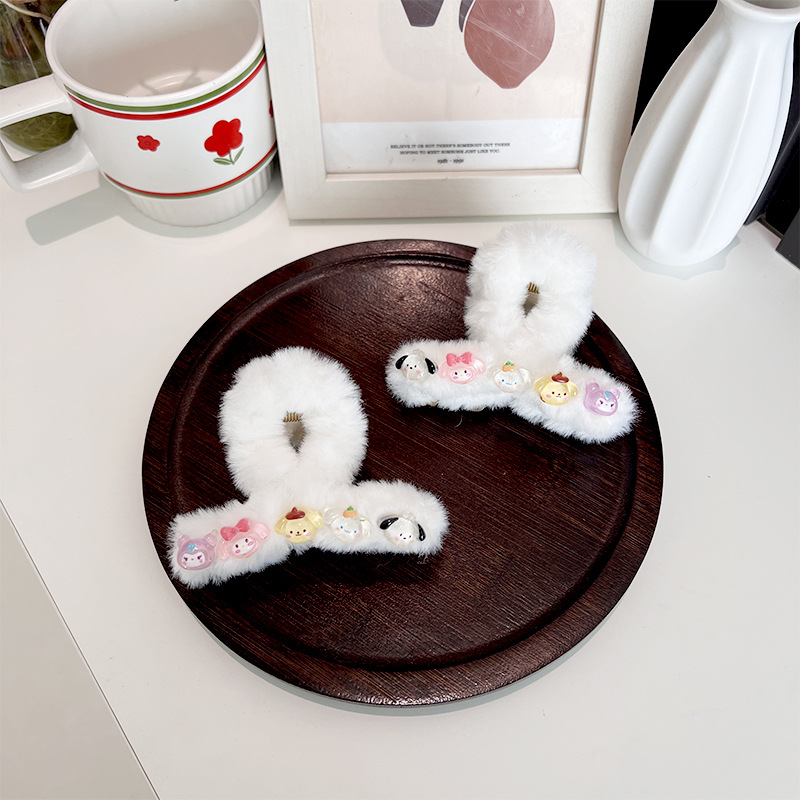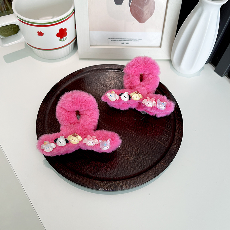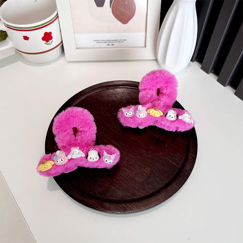 산리오 귀여운 봉제 잡아 머리 수량 상어 클립 캔디 컬러 헤어 클립 소녀 딸기 곰 헤어 그랩