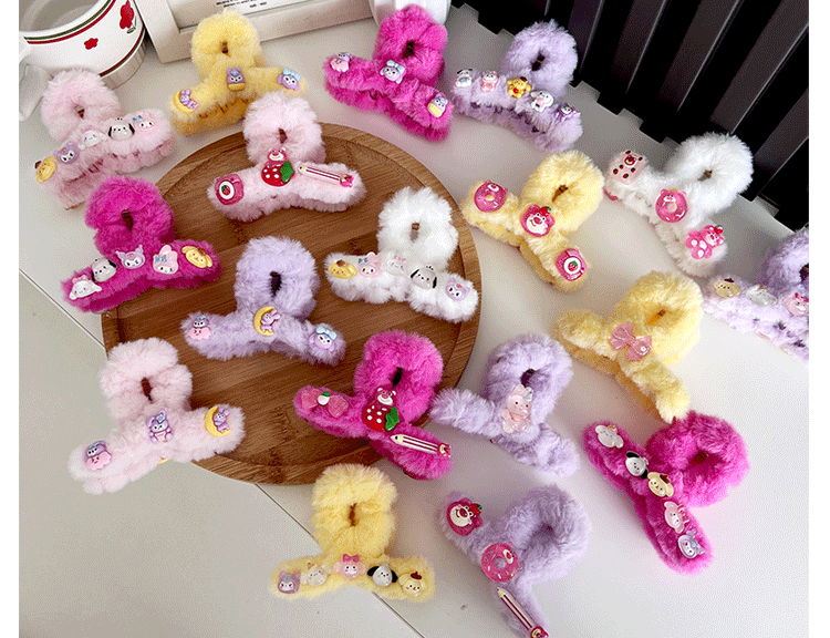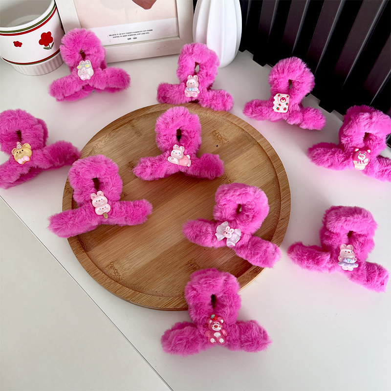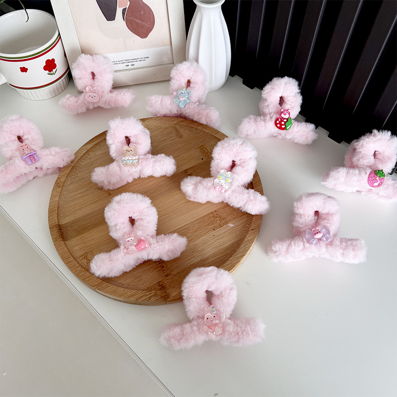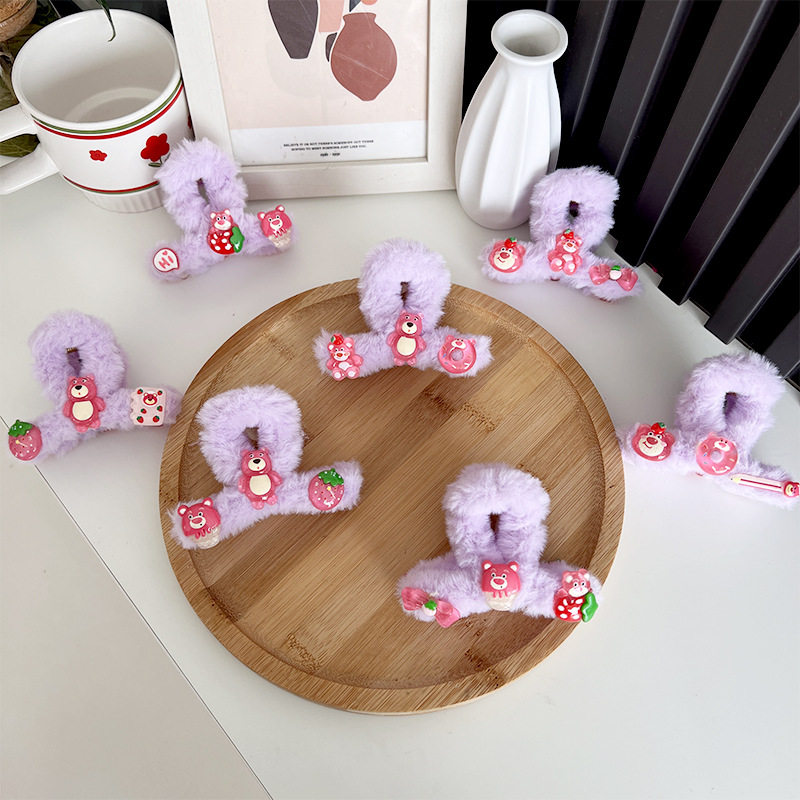 산리오 귀여운 봉제 잡아 머리 수량 상어 클립 캔디 컬러 헤어 클립 소녀 딸기 곰 헤어 그랩스토어 가기