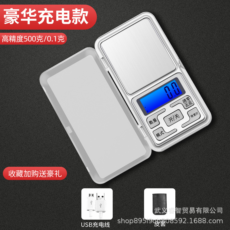• 충전식 모델 500g/0.01g + 가죽 케이스 액세서리 포함