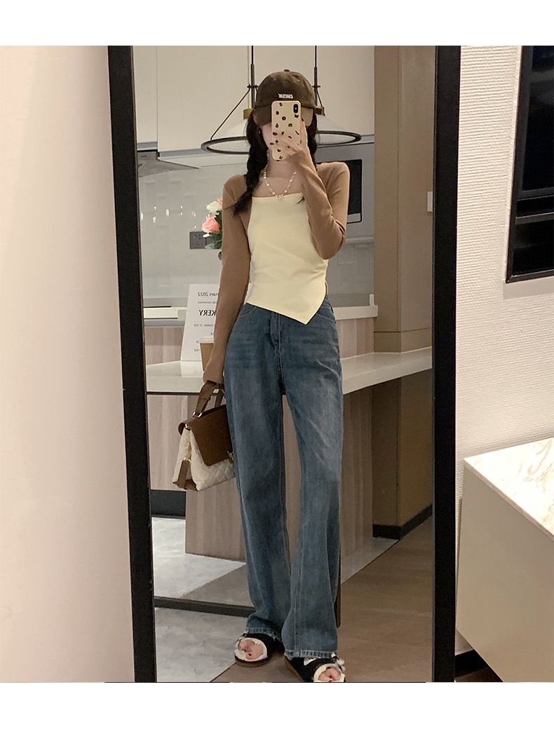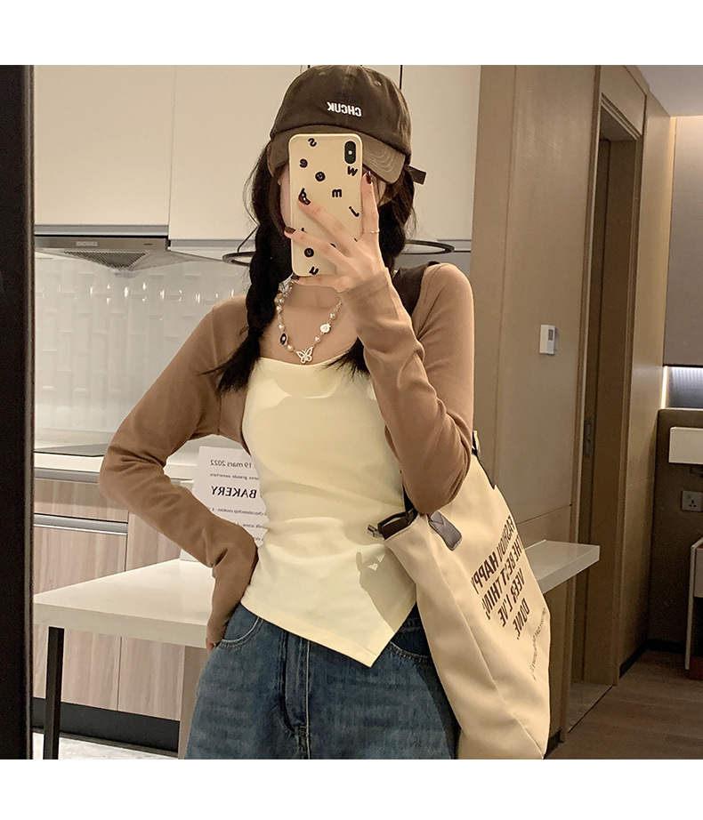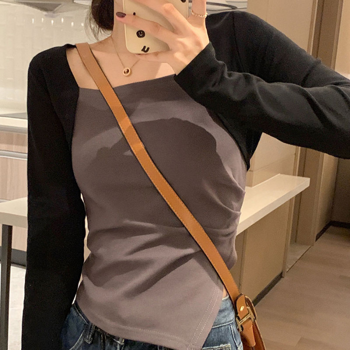 세련된 가을 새로운 불규칙한 긴팔 티셔츠 여성용 바닥 짧은 순수한 욕망 스파이스 걸스 슬림핏 틈새 순수한 욕망 탑
