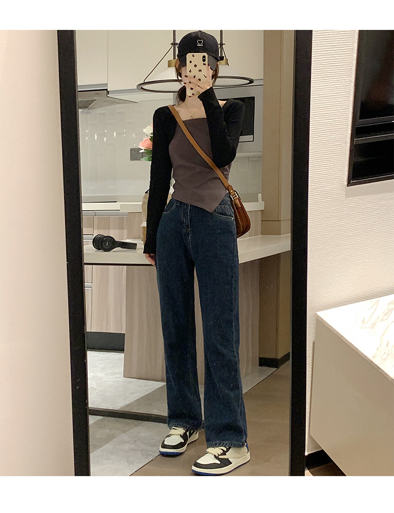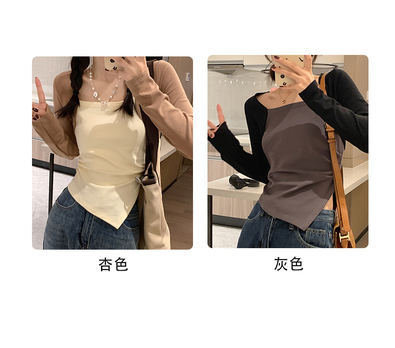 세련된 가을 새로운 불규칙한 긴팔 티셔츠 여성용 바닥 짧은 순수한 욕망 스파이스 걸스 슬림핏 틈새 순수한 욕망 탑스토어 가기