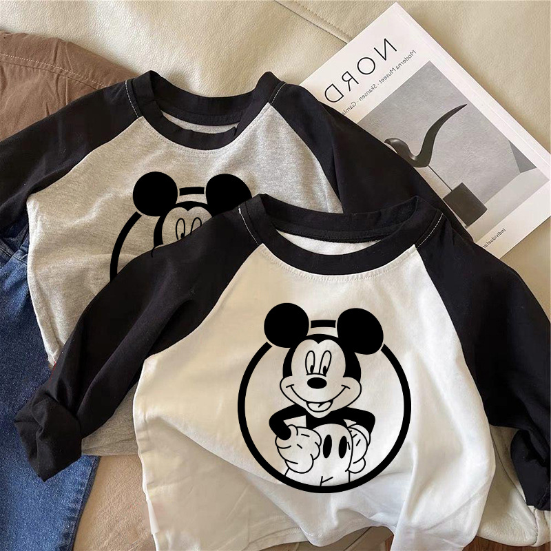면 어린이 티셔츠 긴팔 남성 및 여성 아동복 2023 귀여운 만화 애니메이션 어린이 바닥 탑 봄과 가을스토어 가기
