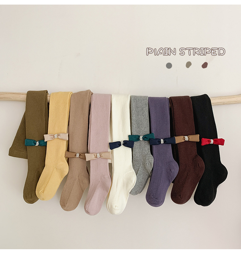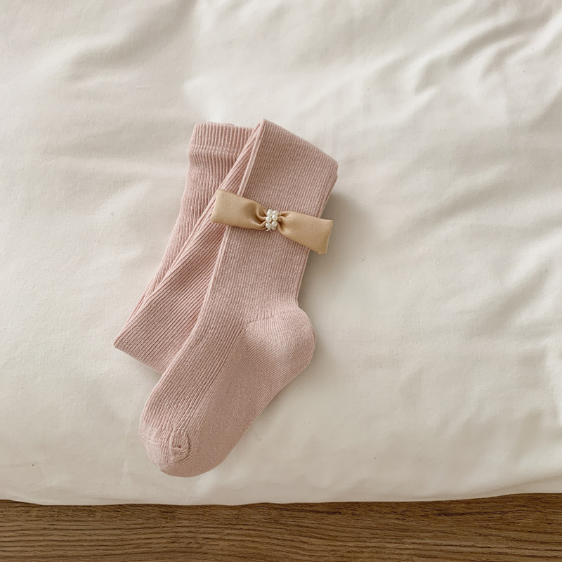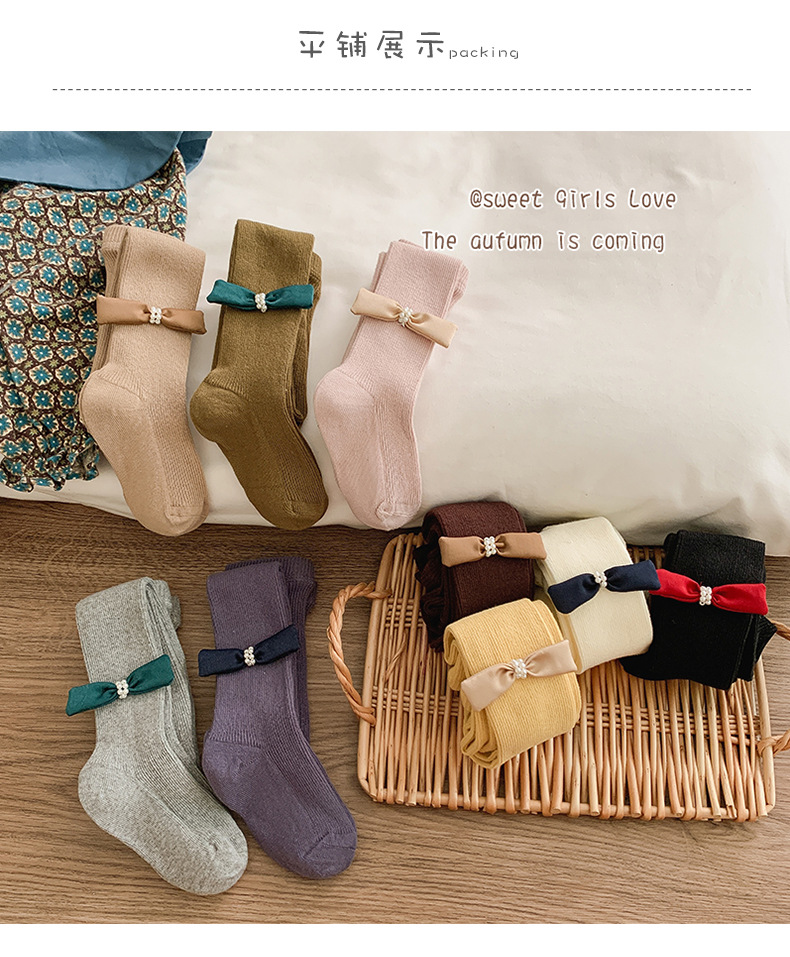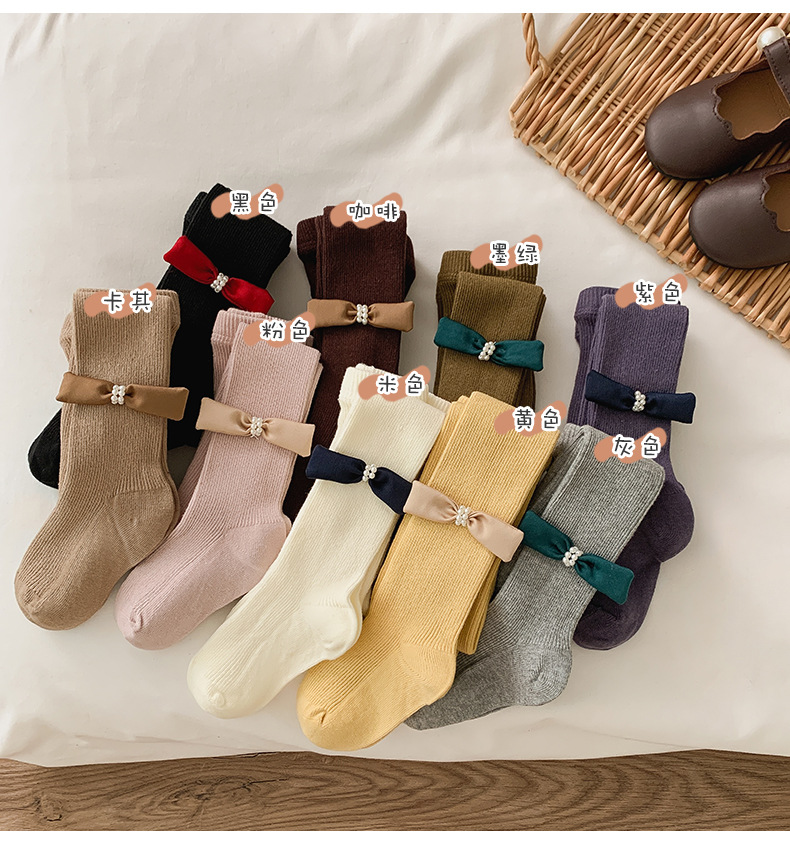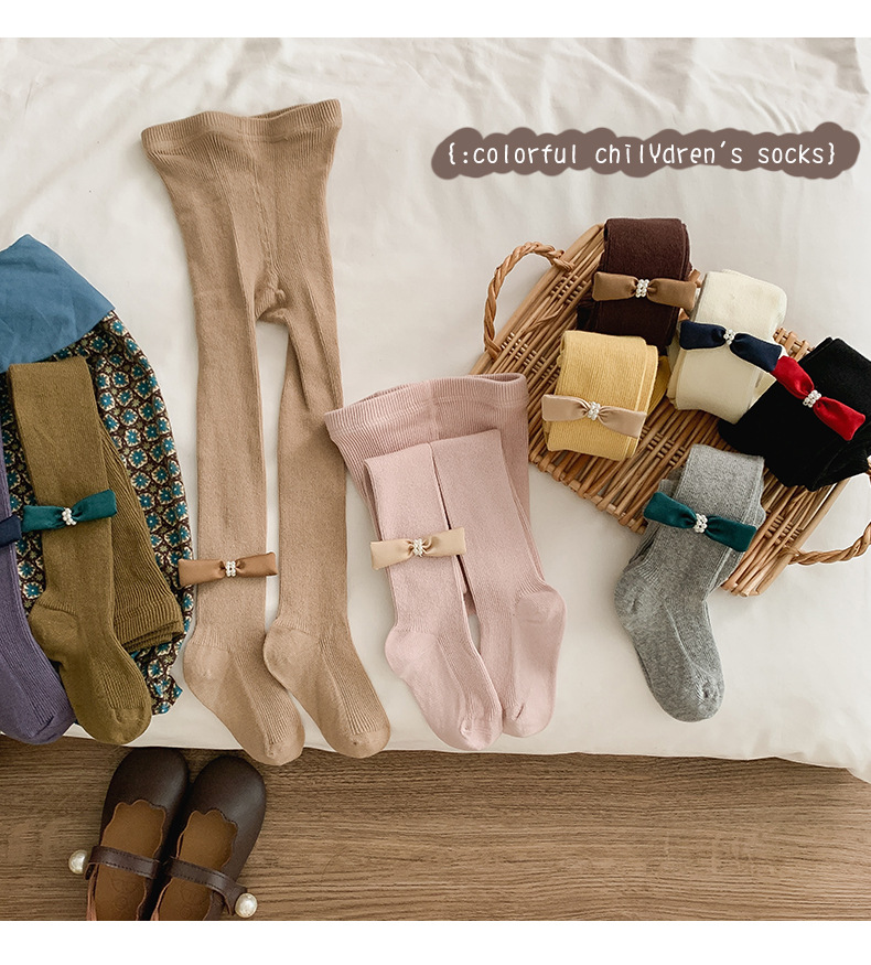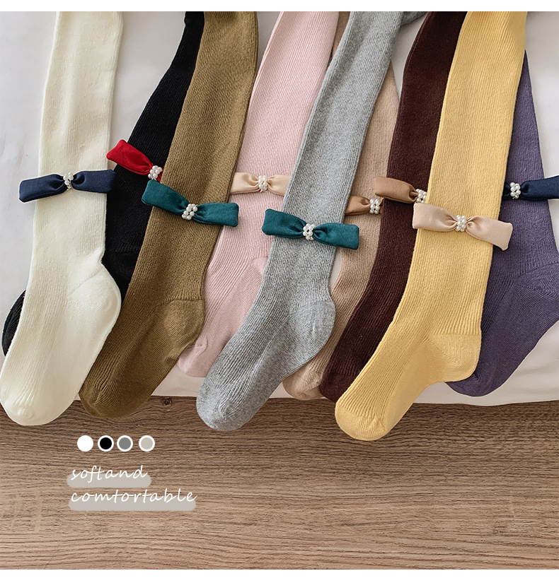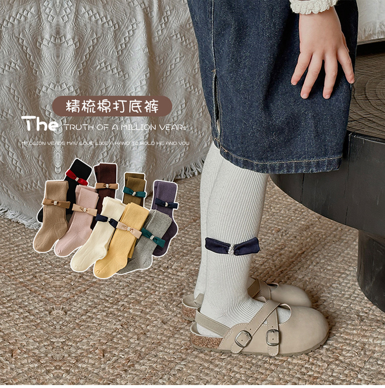 봄과 가을 어린이 팬티 스타킹 아기의 빗 코튼 더블 바늘 소녀 진주 활 팬티 스타킹 어린이 레깅스