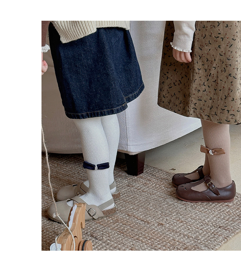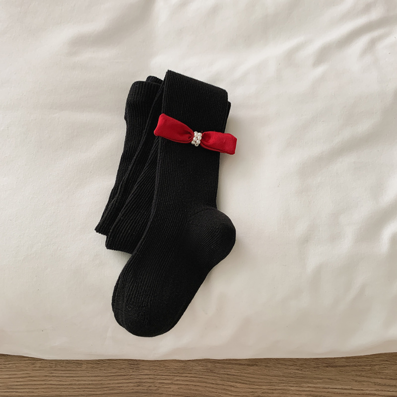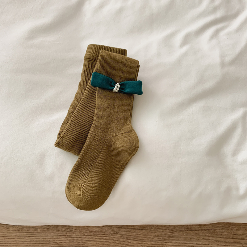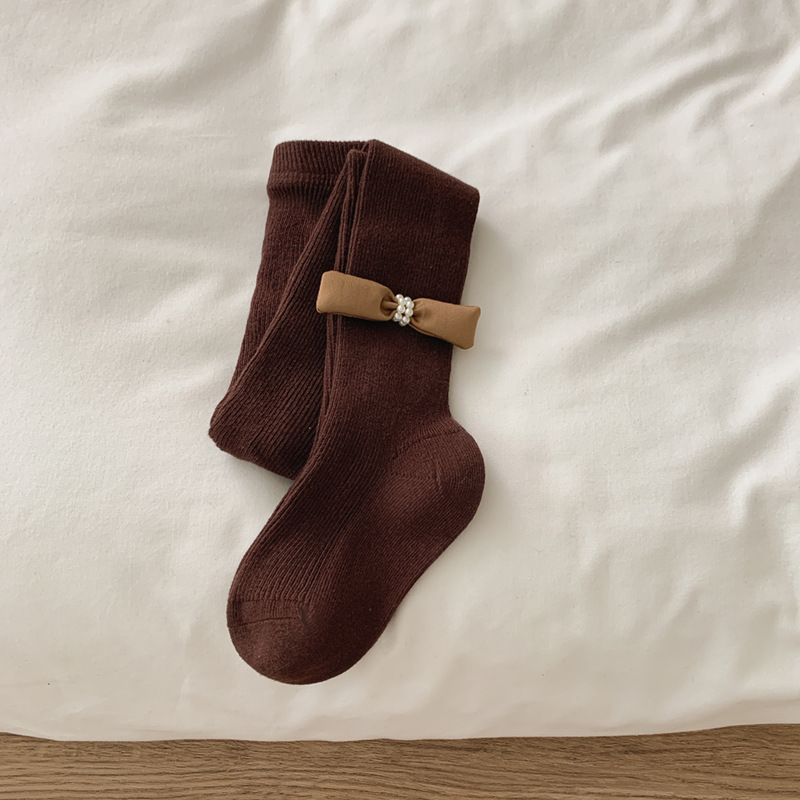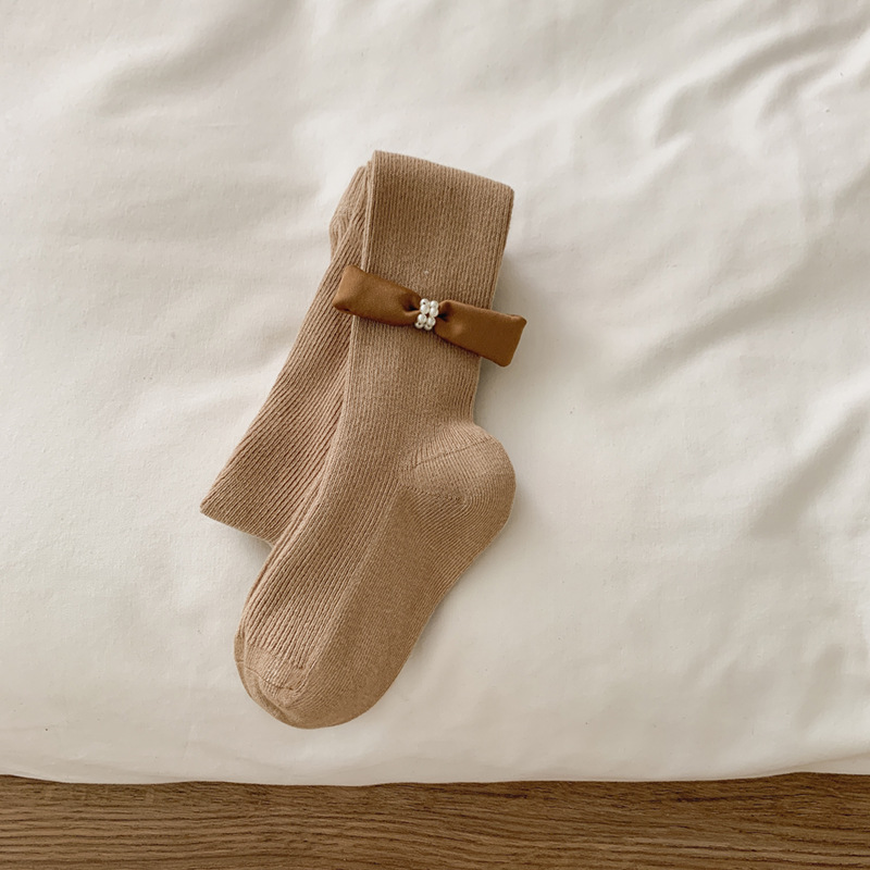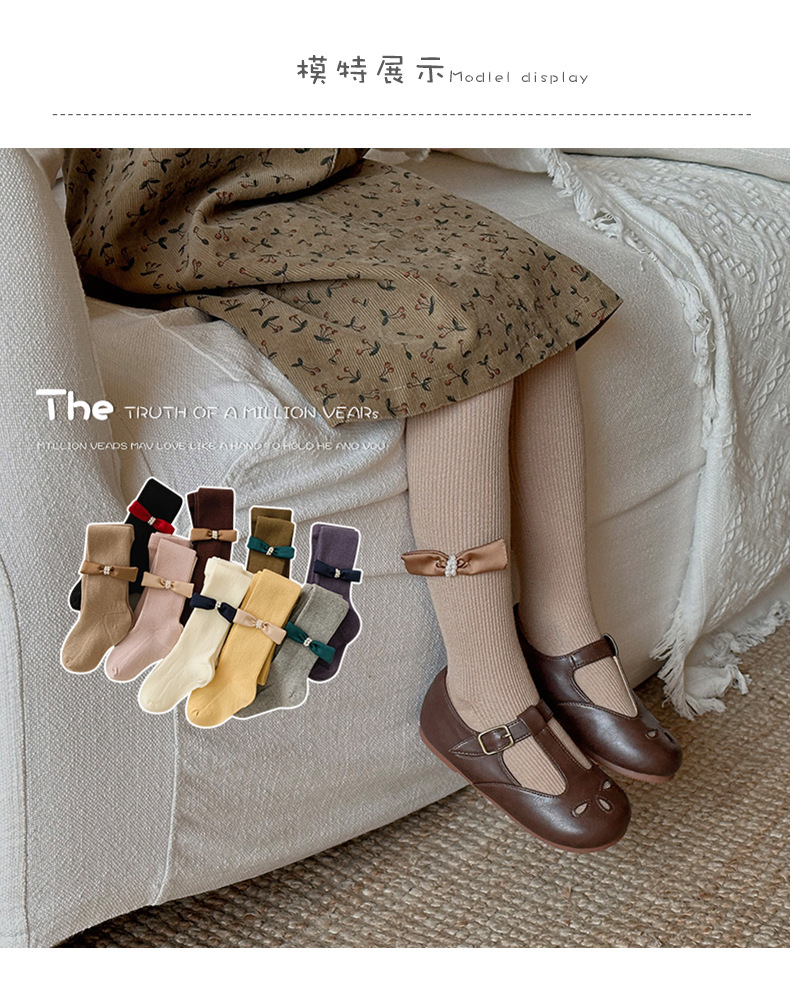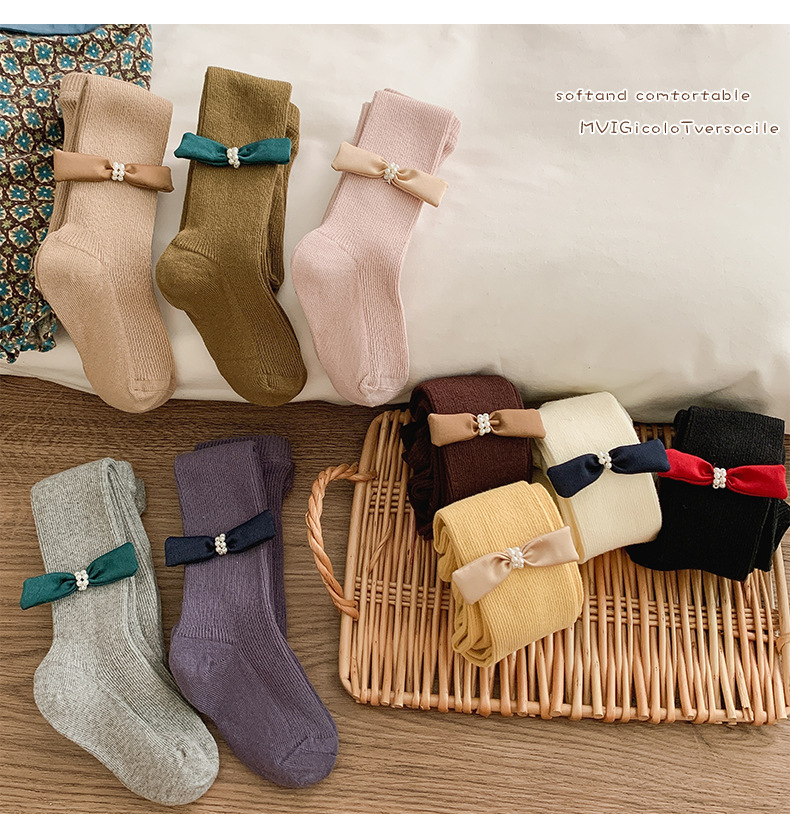 봄과 가을 어린이 팬티 스타킹 아기의 빗 코튼 더블 바늘 소녀 진주 활 팬티 스타킹 어린이 레깅스