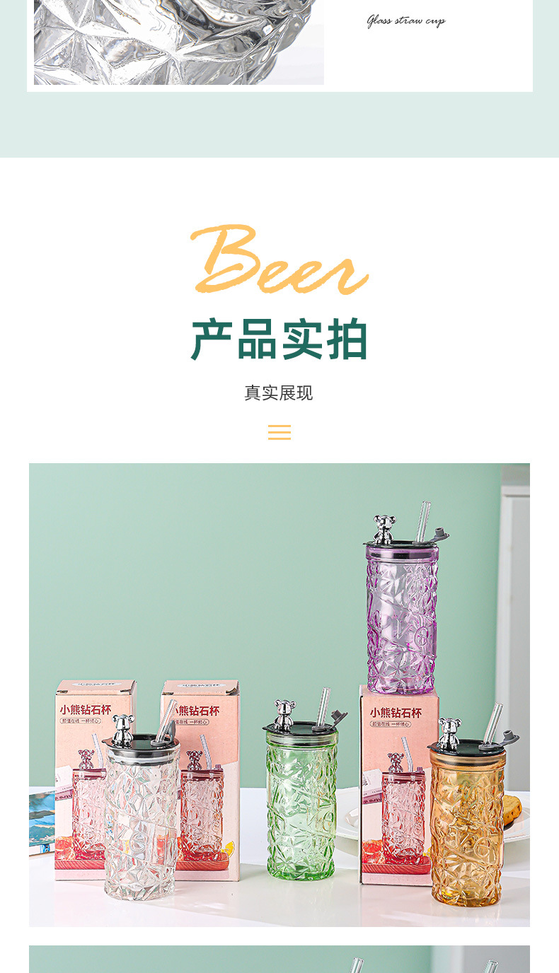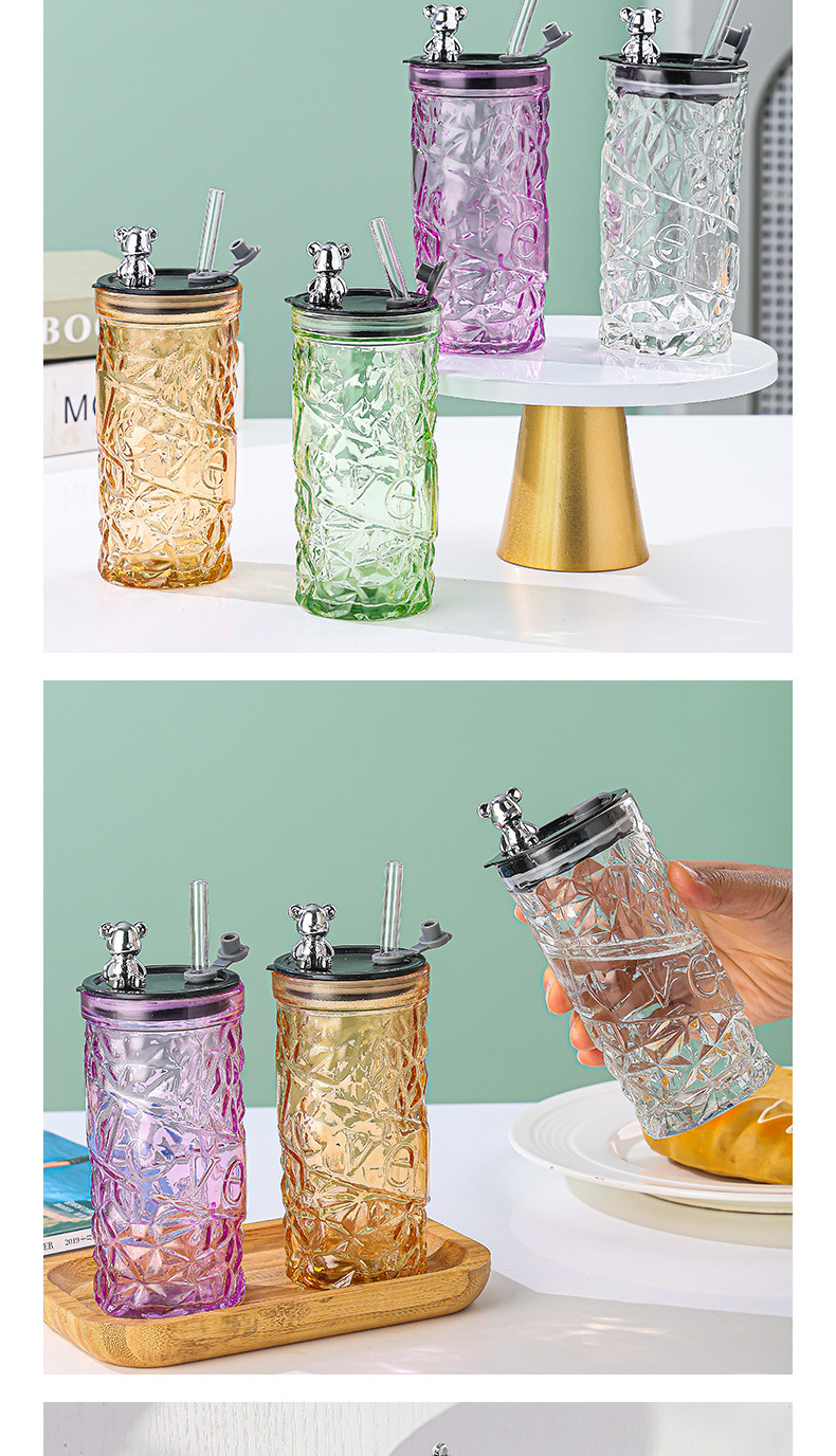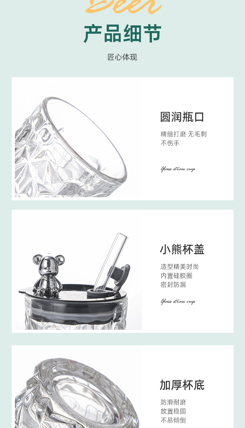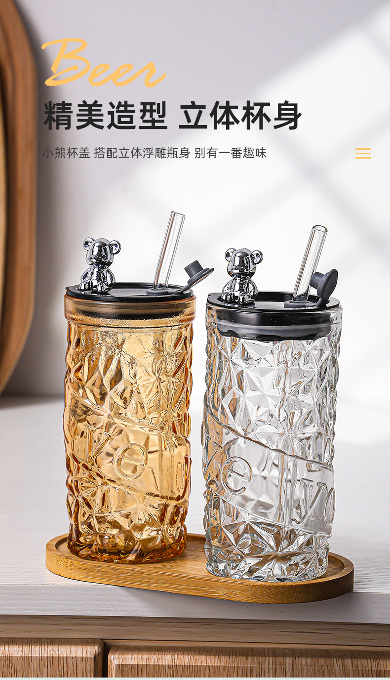 새로운 스타일의 유리컵, 창의적이고 귀여운 곰돌이 물컵, 멋스러운 사무실 가정용 뚜껑 달린 빨대컵, 선물용 컵스토어 가기