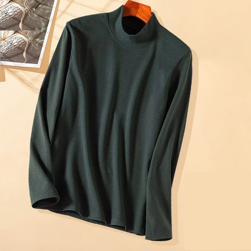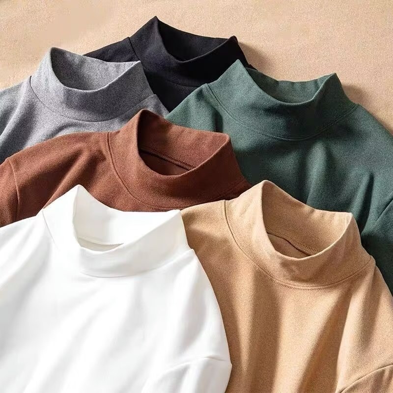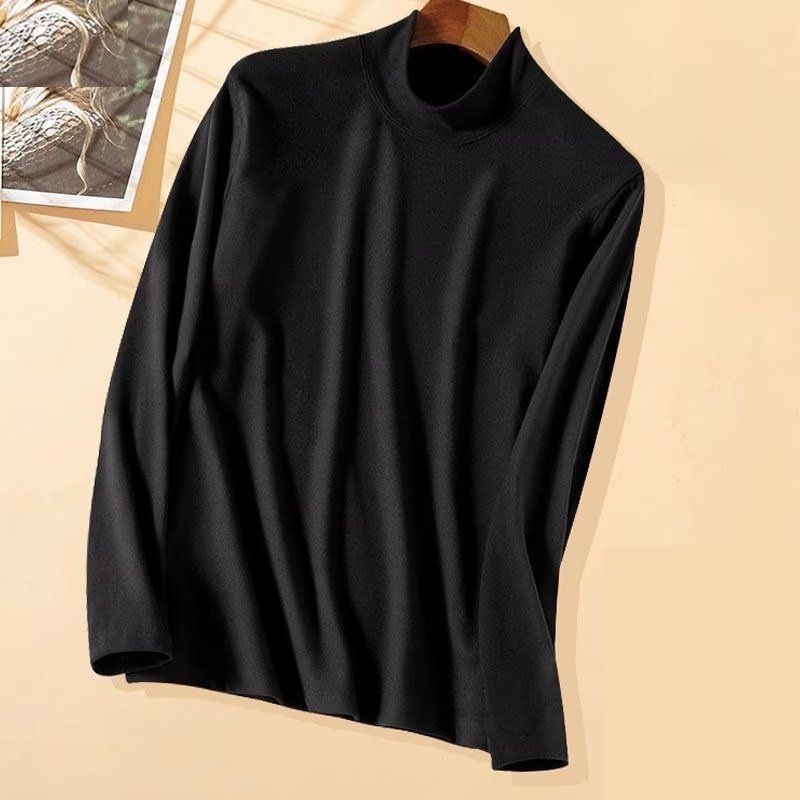 하프 하이 칼라 양면 벨벳베이스 셔츠 남자의 가을과 겨울 긴팔 티셔츠 탑 기모 두꺼운 열 속옷스토어 가기