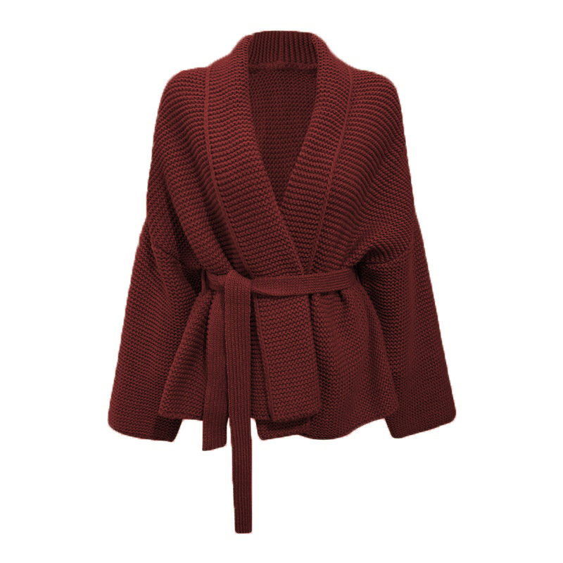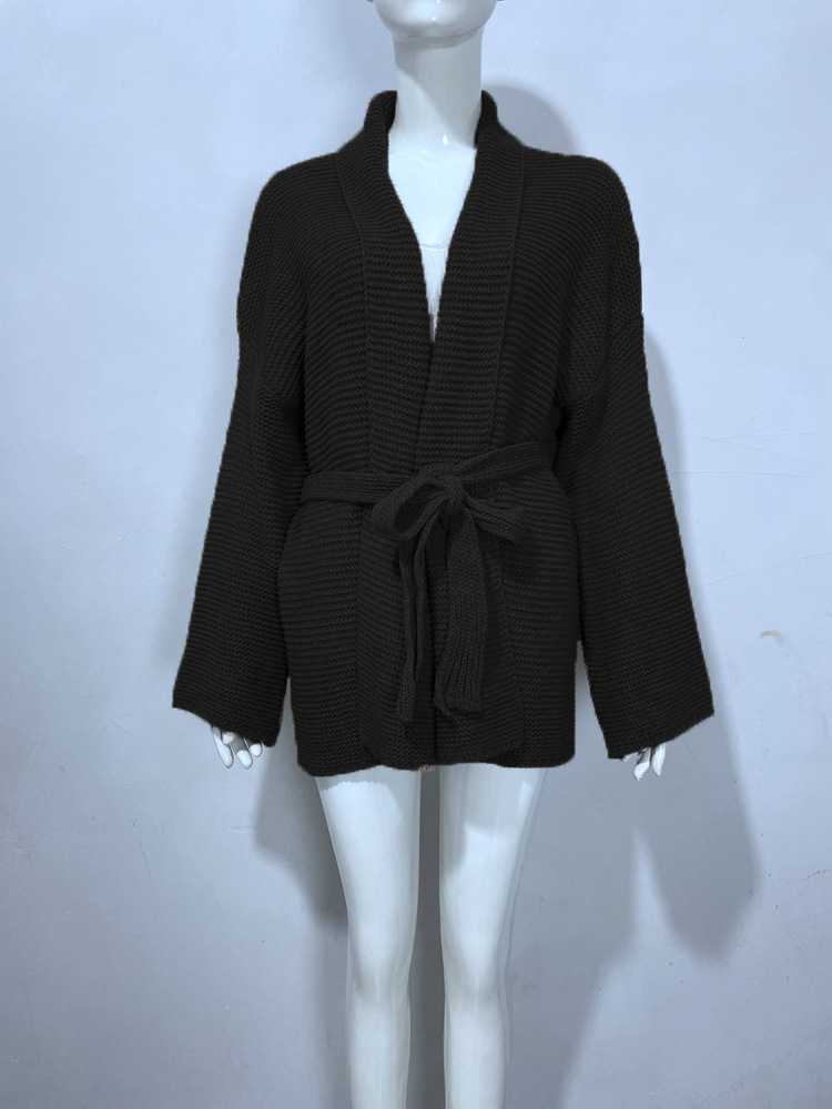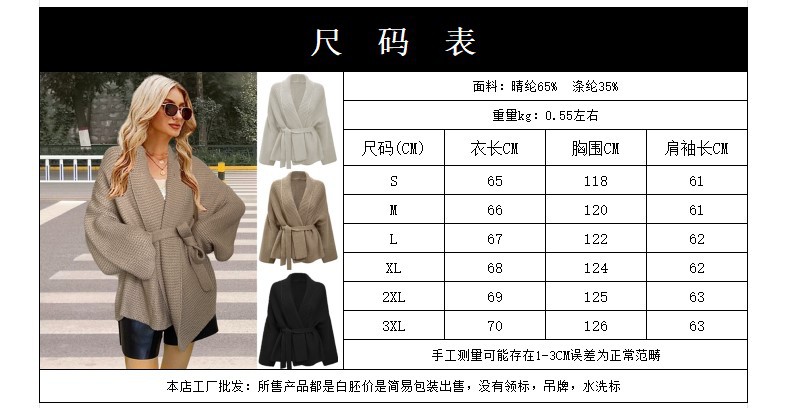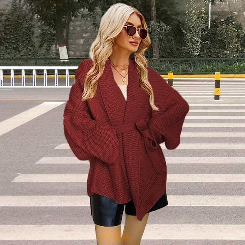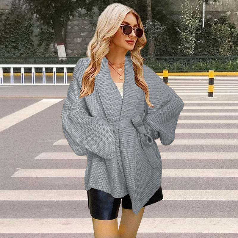 크로스 보더 가을과 겨울 아마존 V-넥 유럽과 미국 여성 대외 무역 니트 레이스 업 카디건 크로스 보더 여성용 느슨한 스웨터스토어 가기