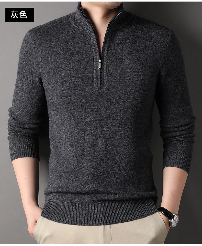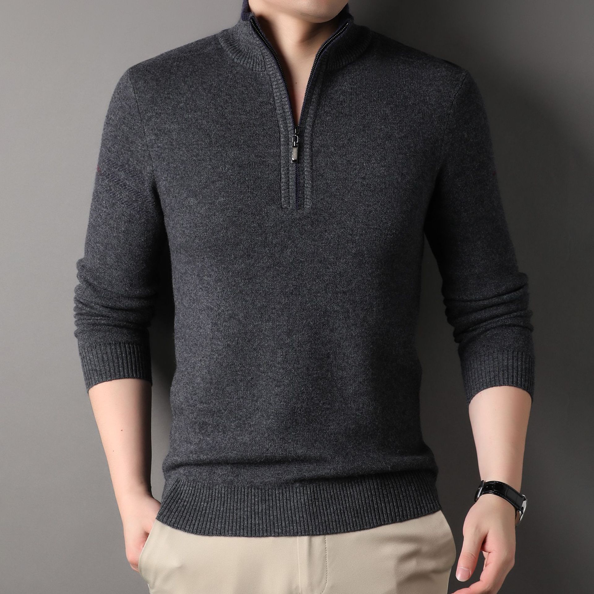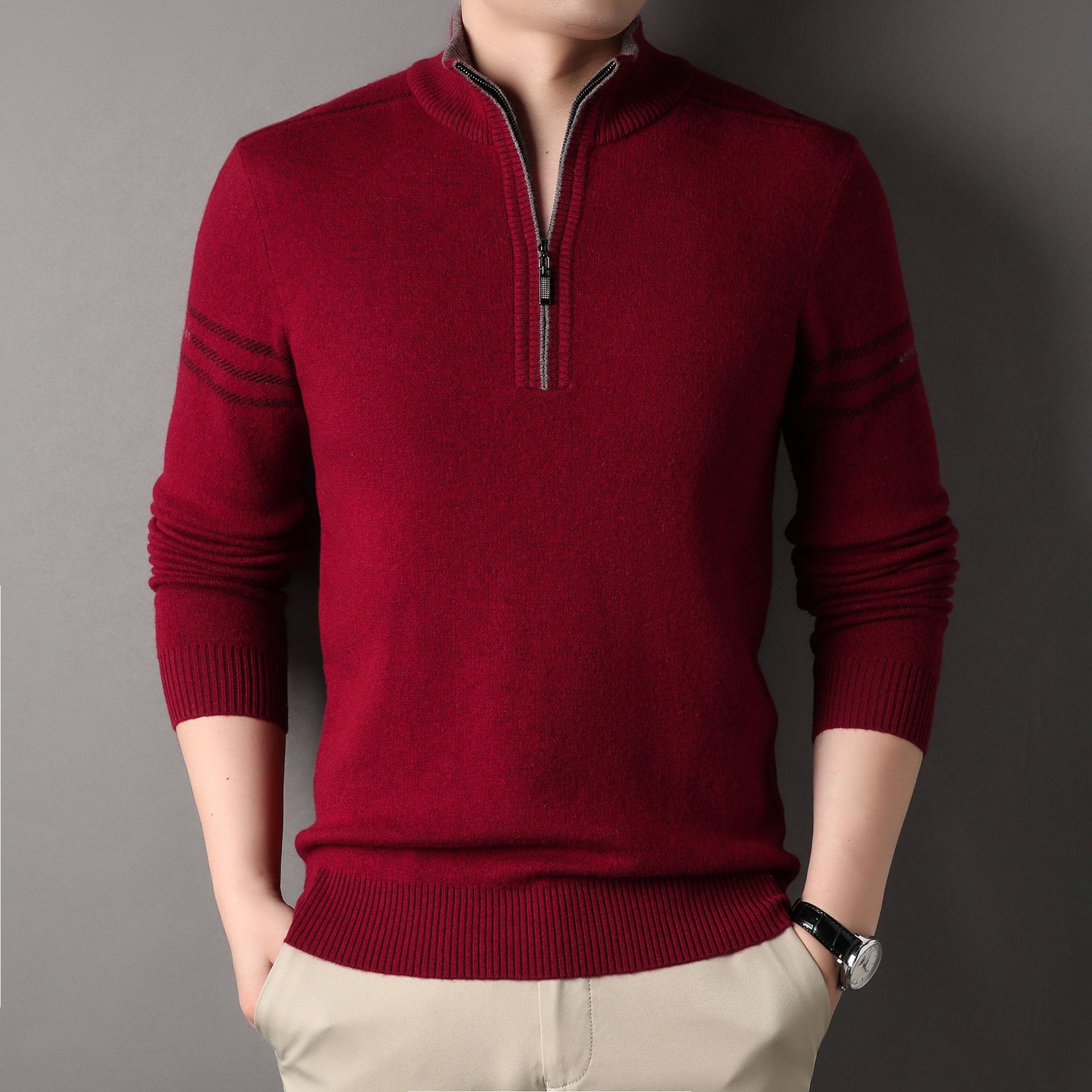 새로운 남자의 울 캐주얼 베이스 셔츠 2023 겨울 울 스웨터 남자의 유행 칼라 따뜻한 단색 스웨터