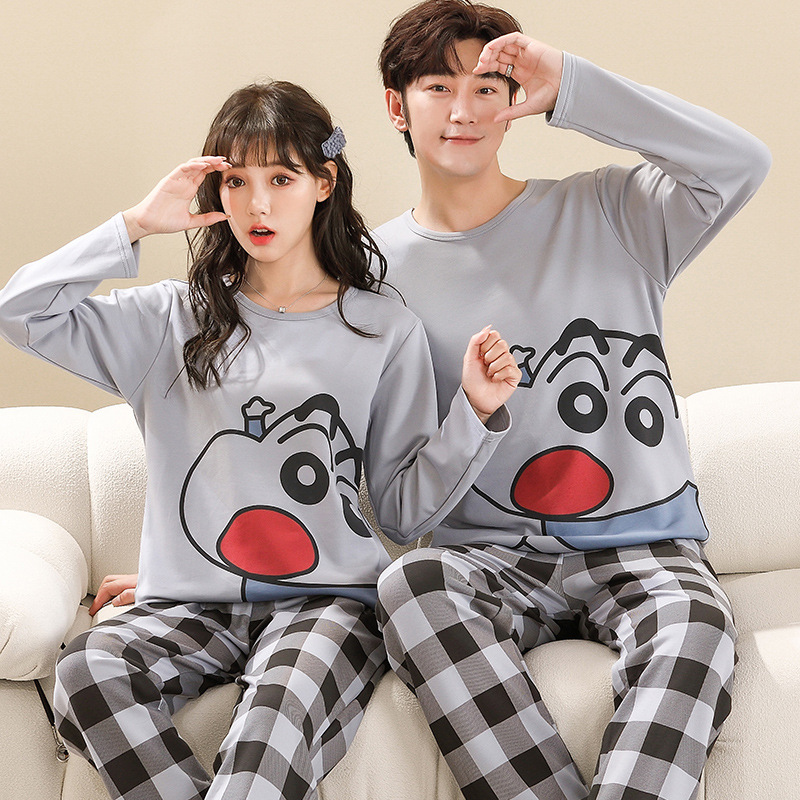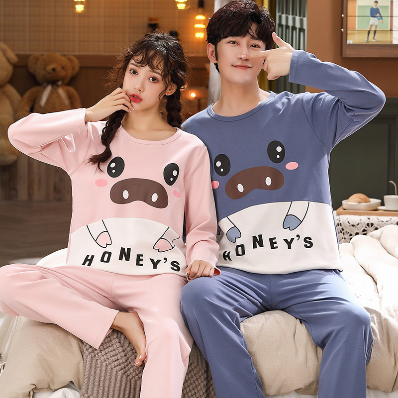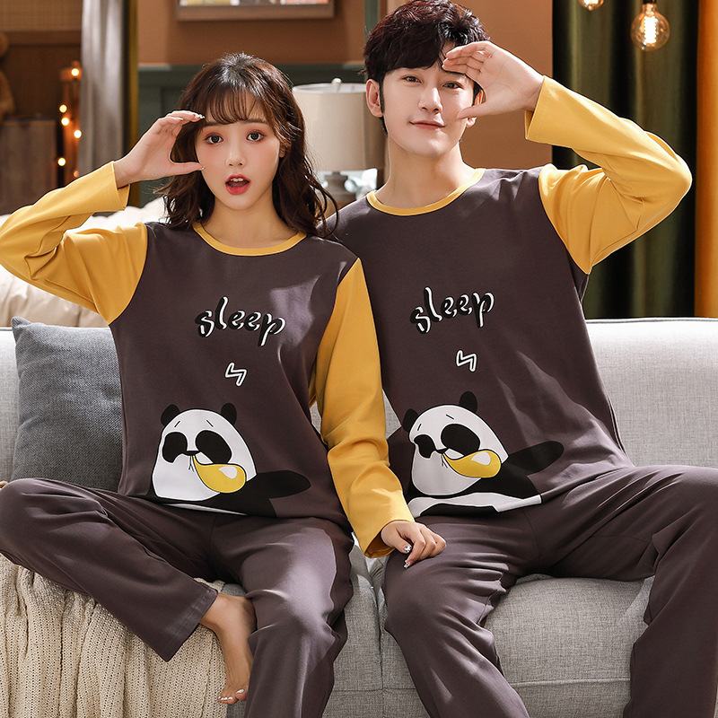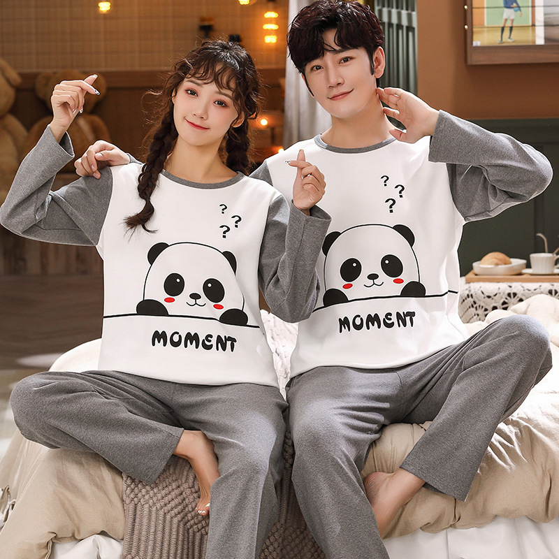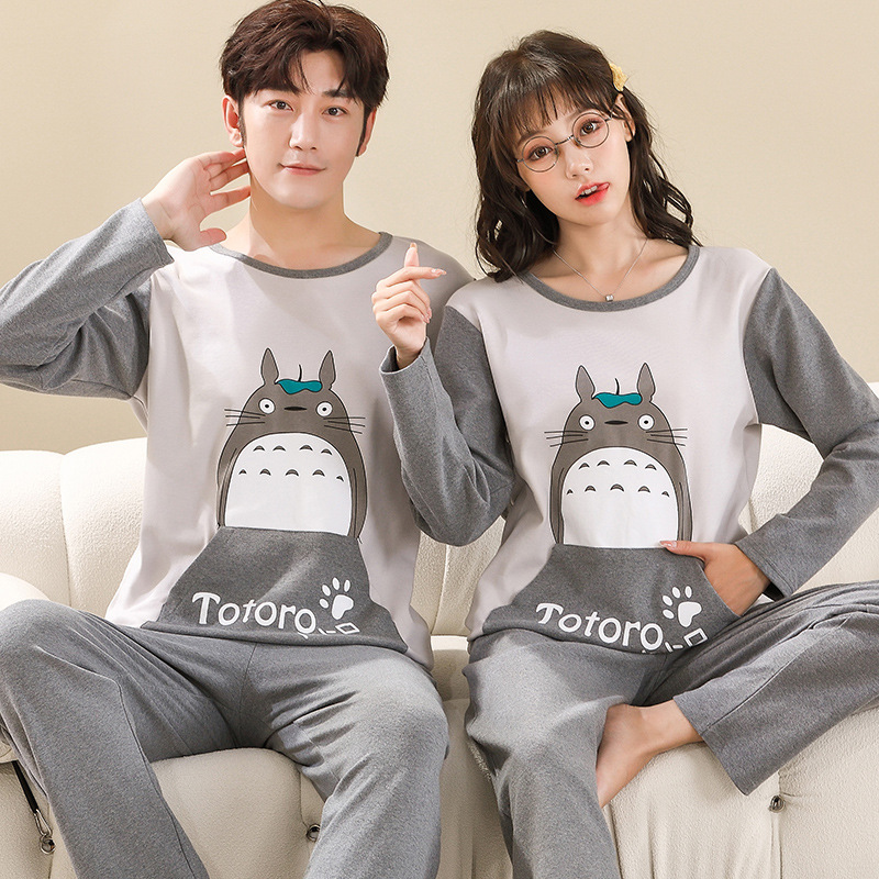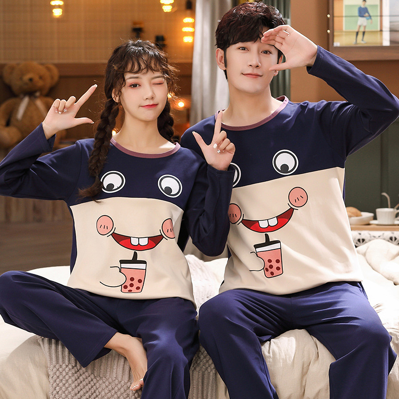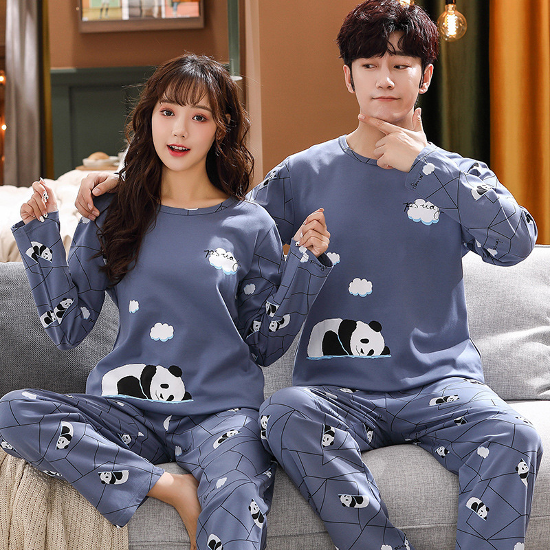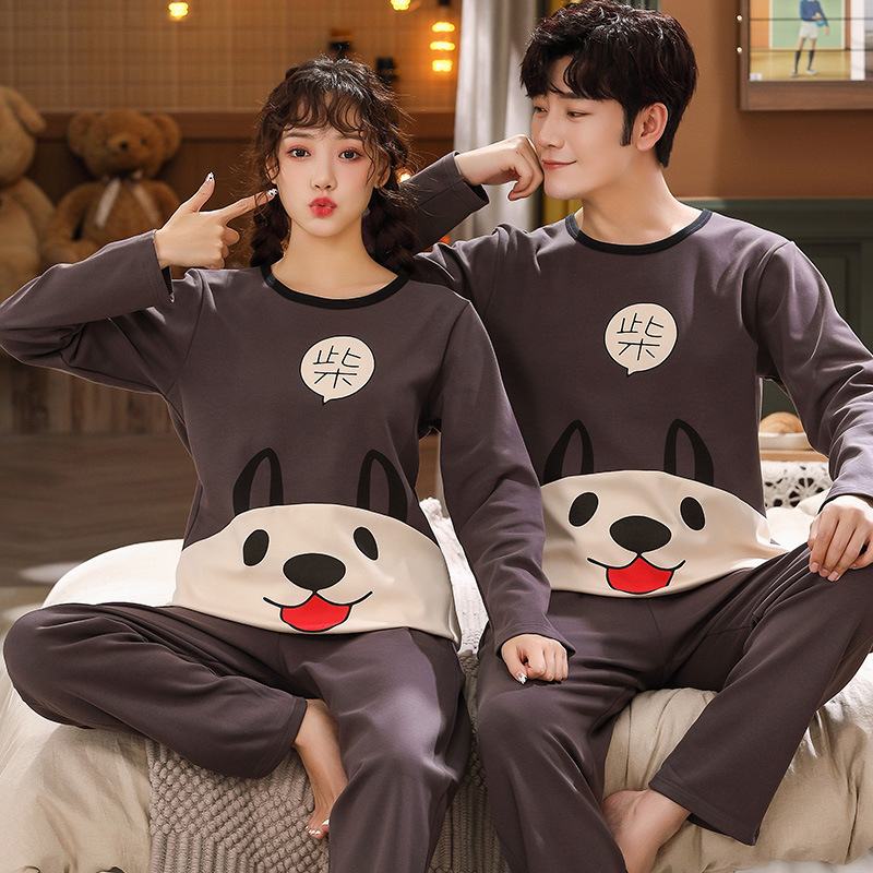 2025 새로운 커플 잠옷 남성면 긴 소매 플러스 사이즈 만화 귀여운 남성과 여성의 홈 의류 세트스토어 가기