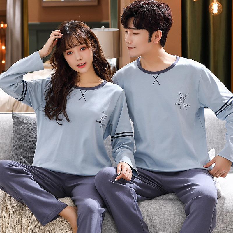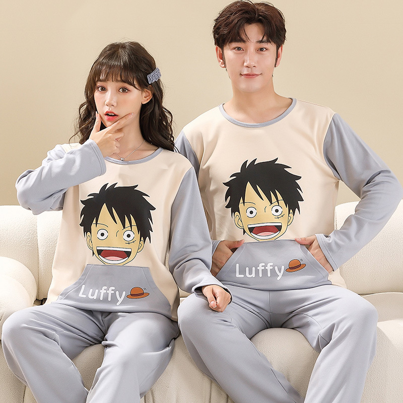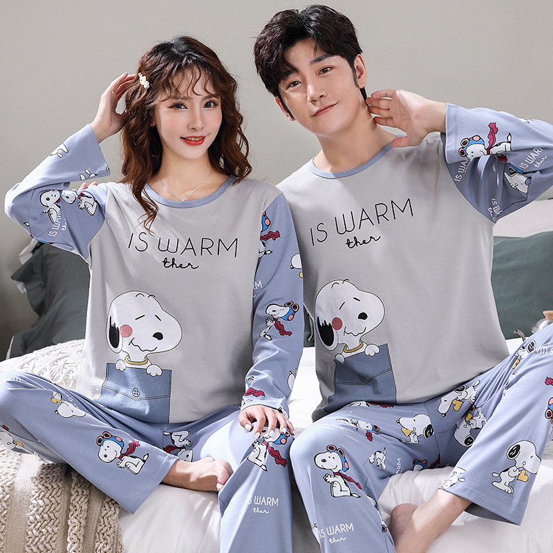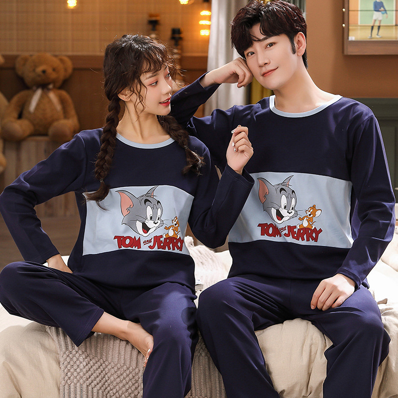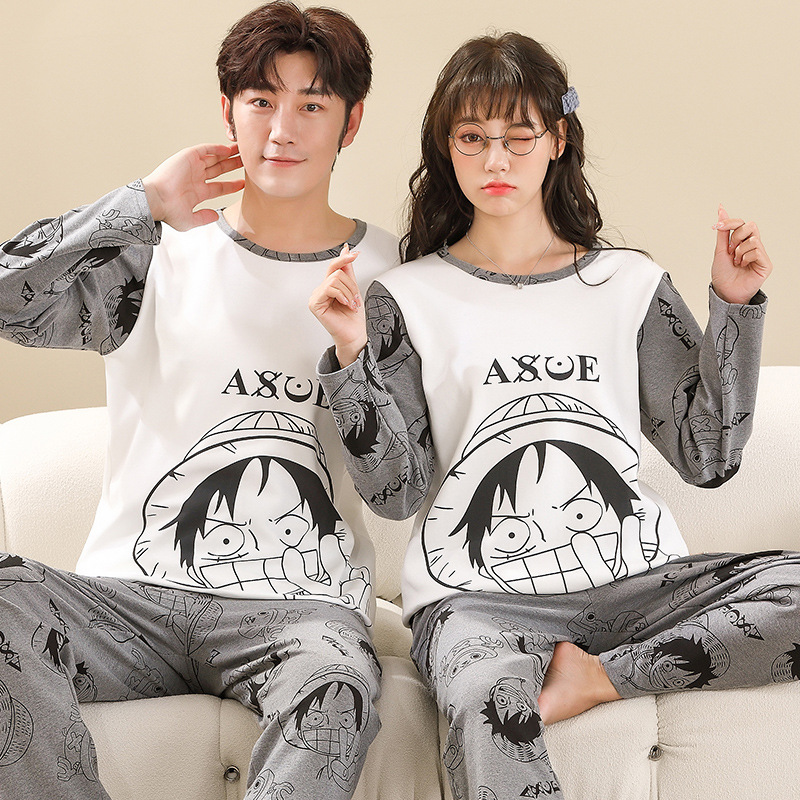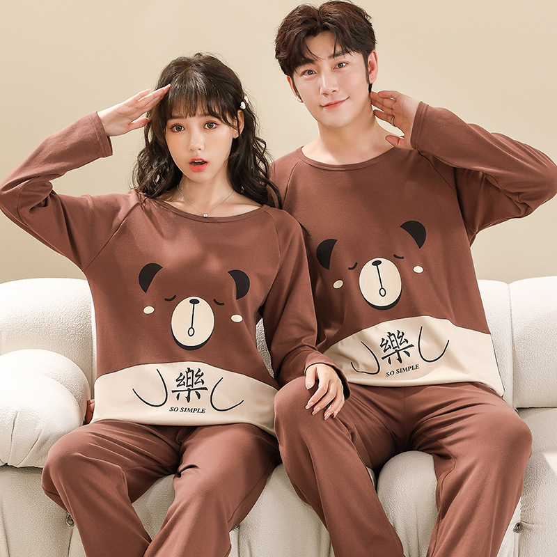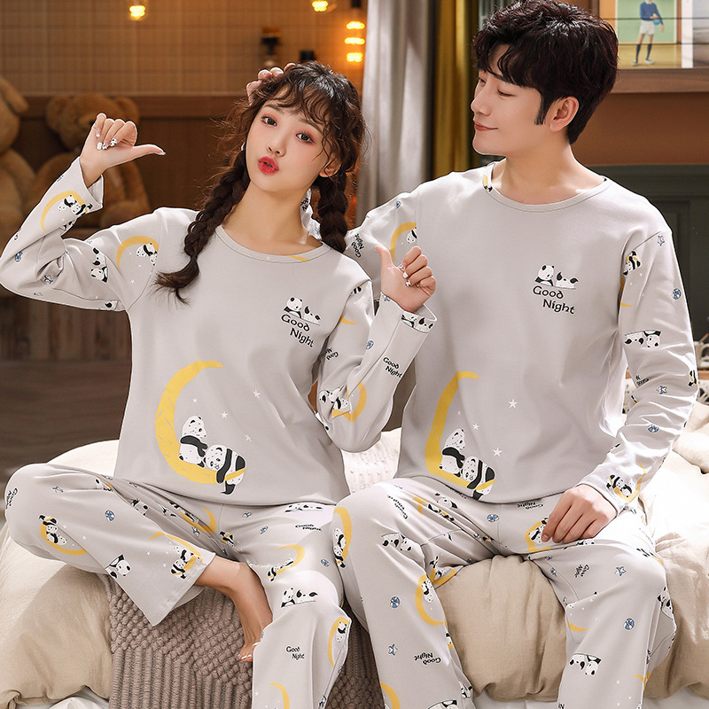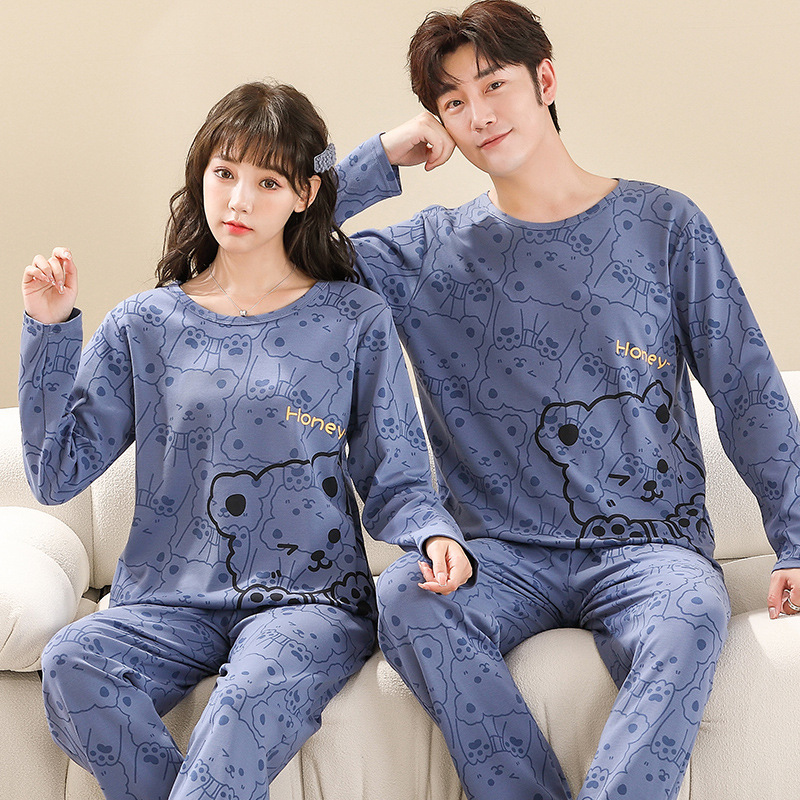 2025 새로운 커플 잠옷 남성면 긴 소매 플러스 사이즈 만화 귀여운 남성과 여성의 홈 의류 세트스토어 가기