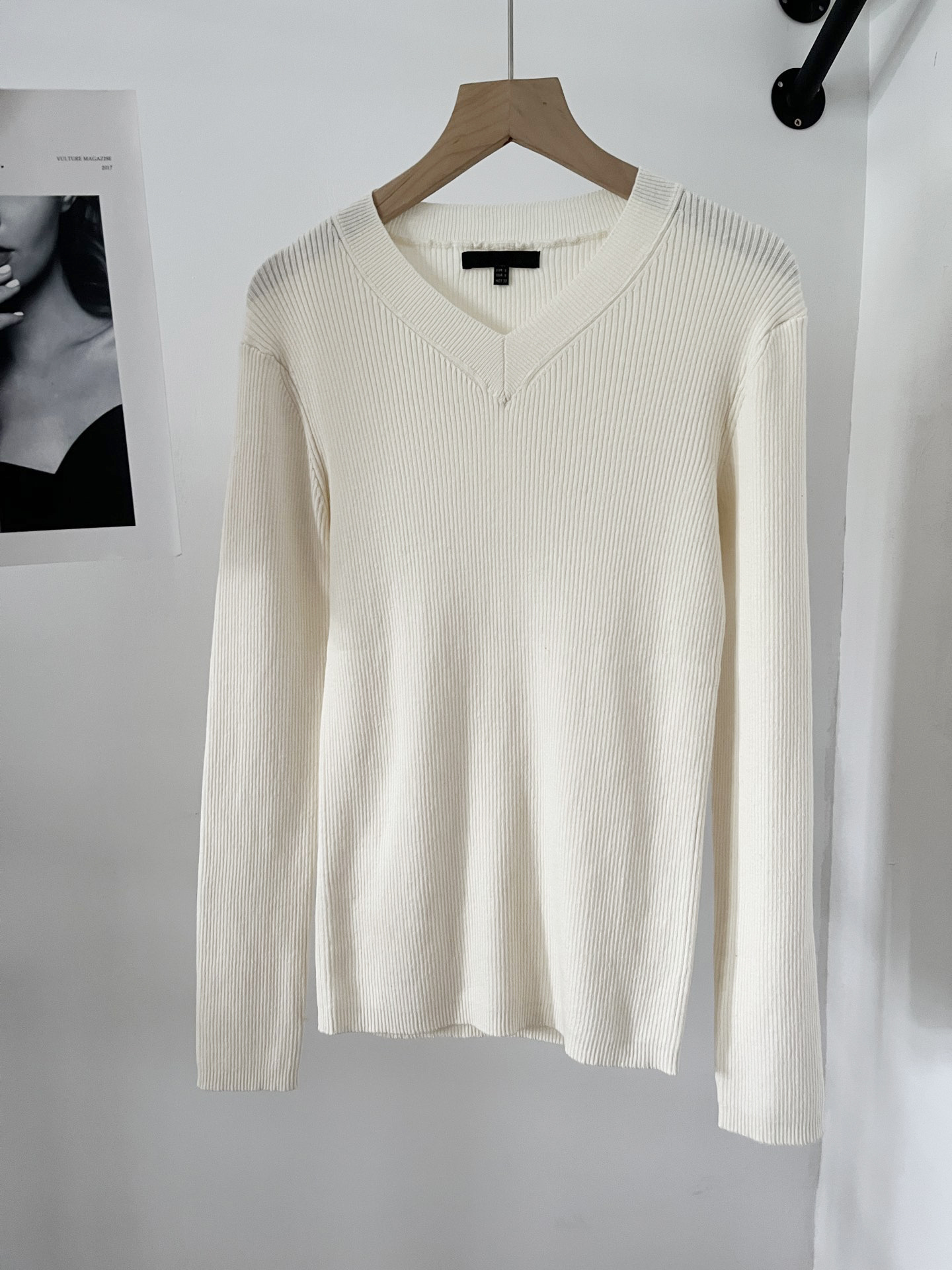 여성용 MD 스타일 23 우아한 슬림핏 편안한 면 혼방 브이넥 리브 스웨터 05713536712스토어 가기