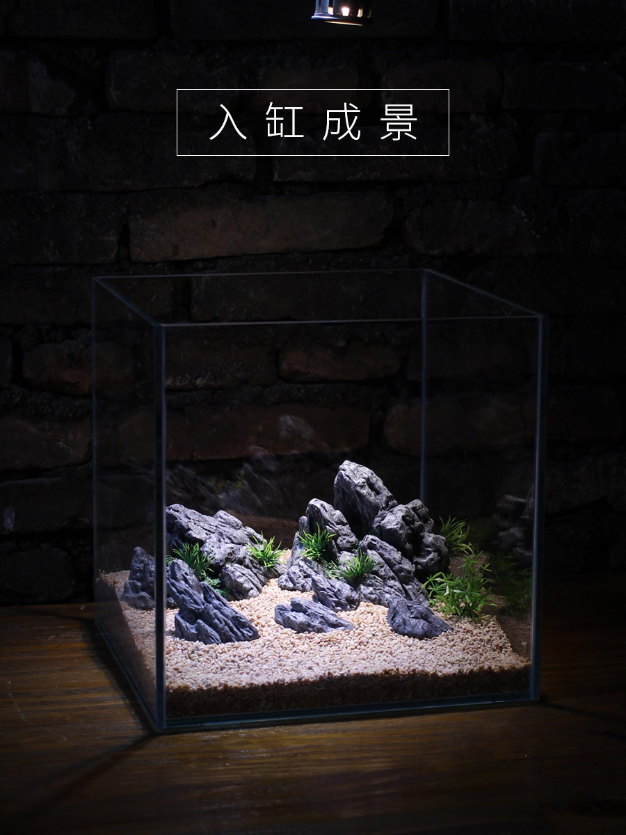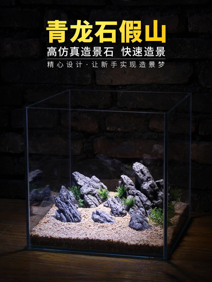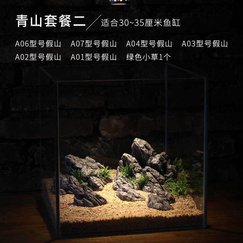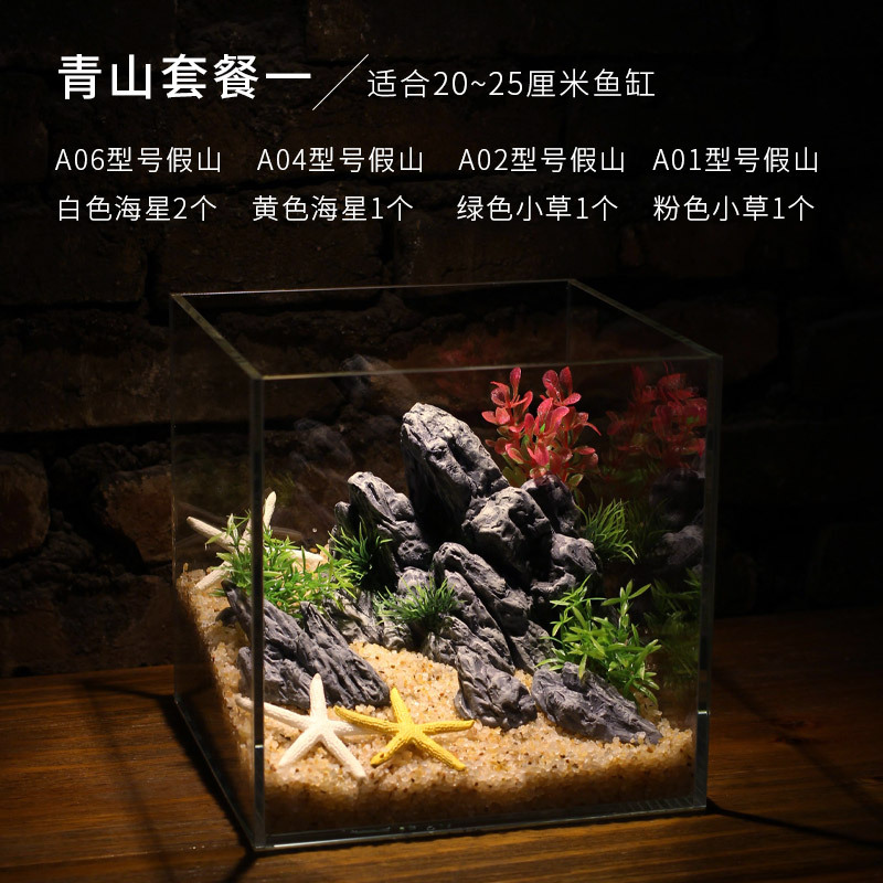 물고기 탱크 시뮬레이션 녹색 용 돌 분재 돌 바위 장식 물 잔디 작은 장식품 작은 수족관 세트 패키지스토어 가기
