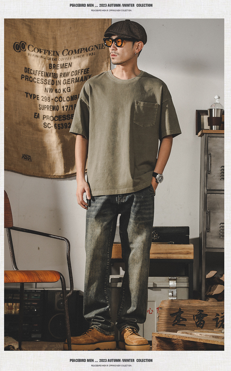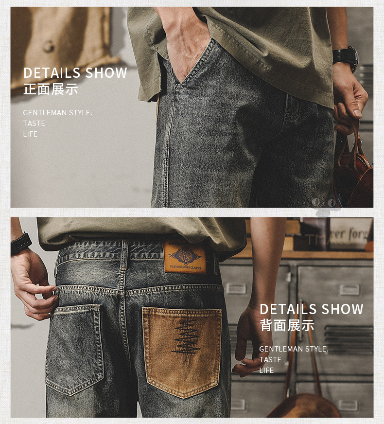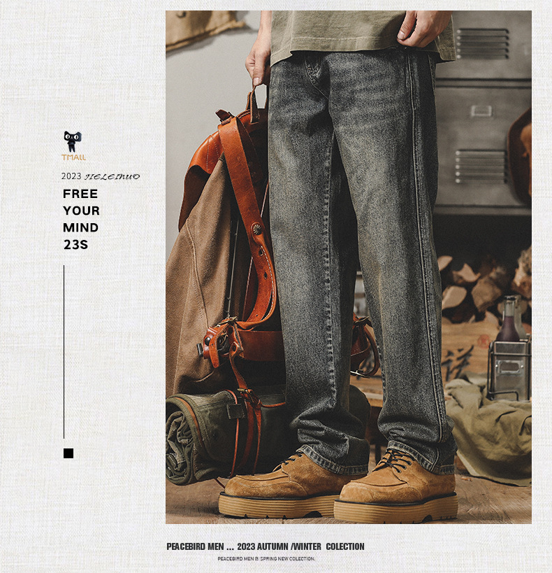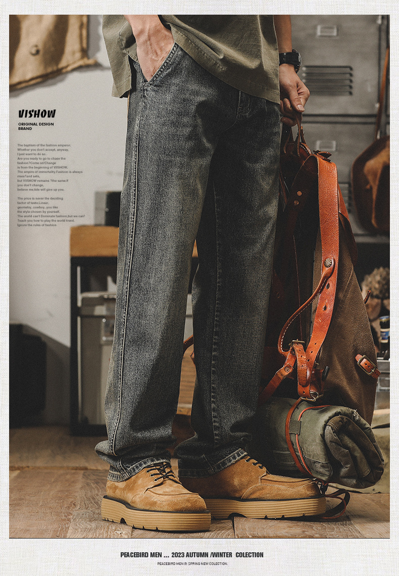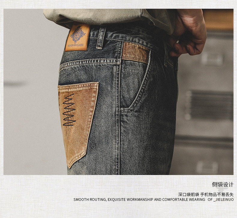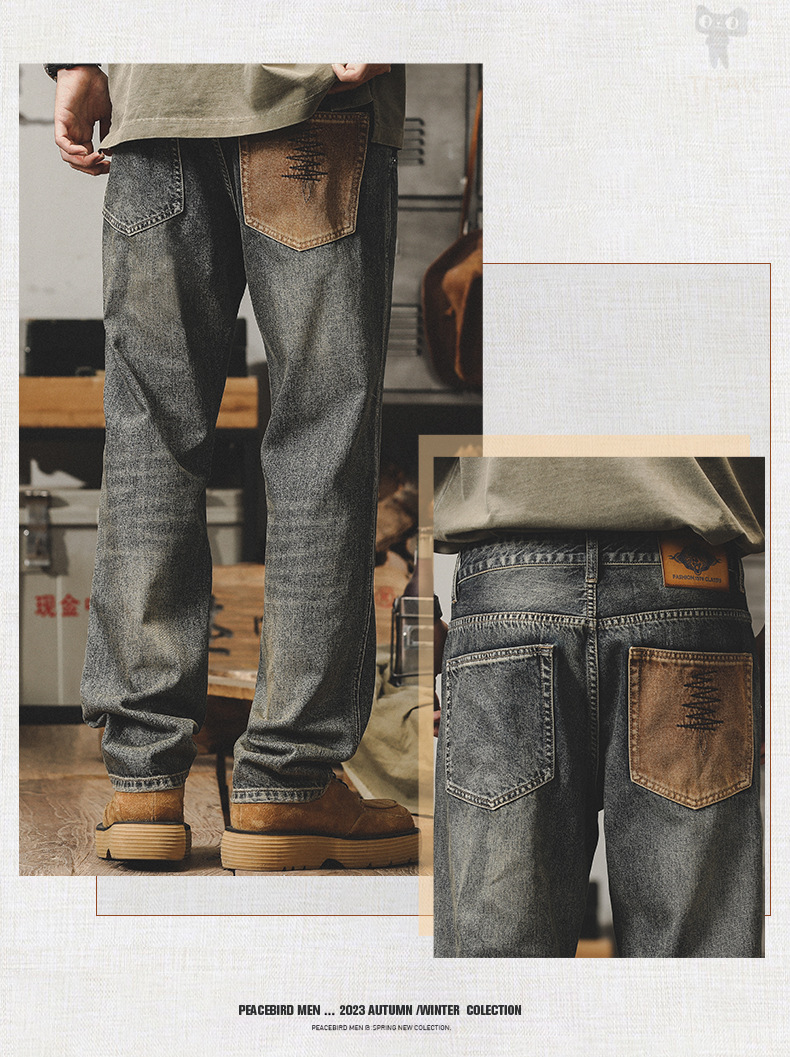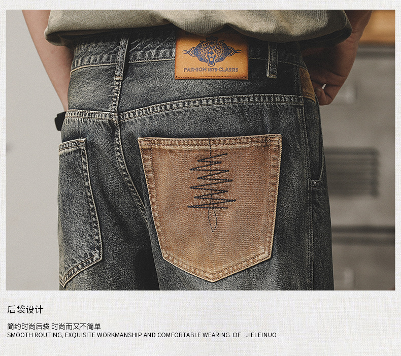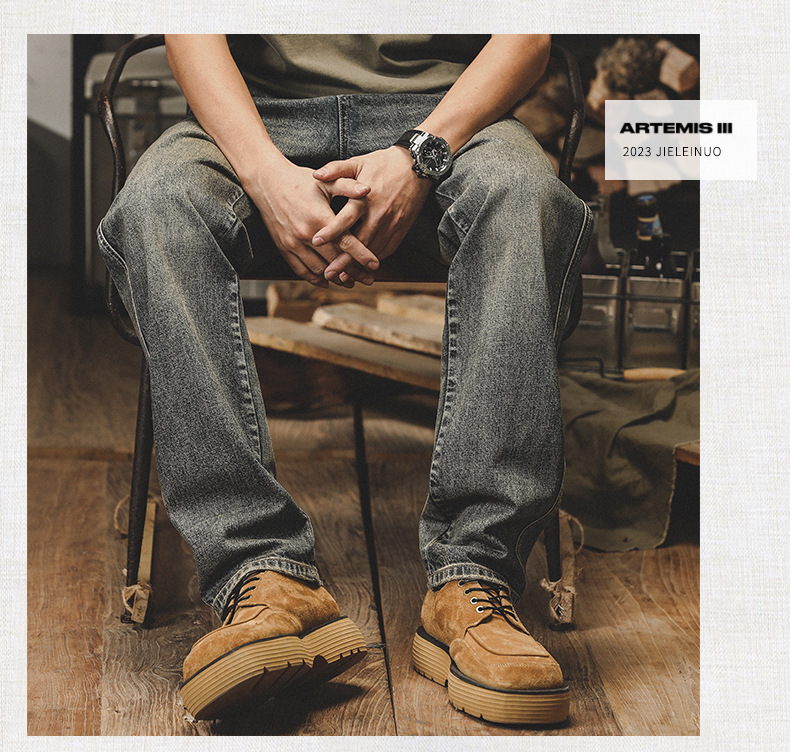 제이 레노 아메리칸 스타일 클래식 레트로 청바지 남성용 느슨한 스트레이트 옐로우 머드 염료 사용 바지 남성용 봄과 가을 유행 브랜드스토어 가기