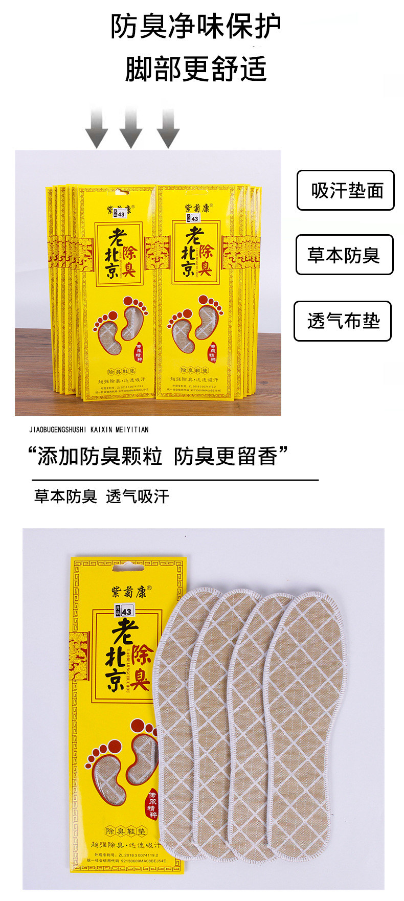 여성과 남성을위한 정품 린넨 탈취제 깔창 땀 흡수성 쑥 냄새 제거 린넨 통기성 향수 오래된 베이징 insoles스토어 가기