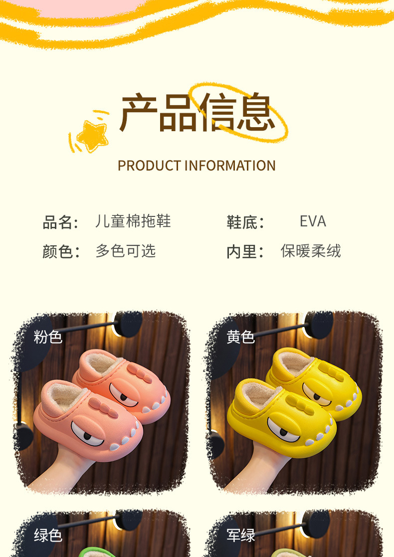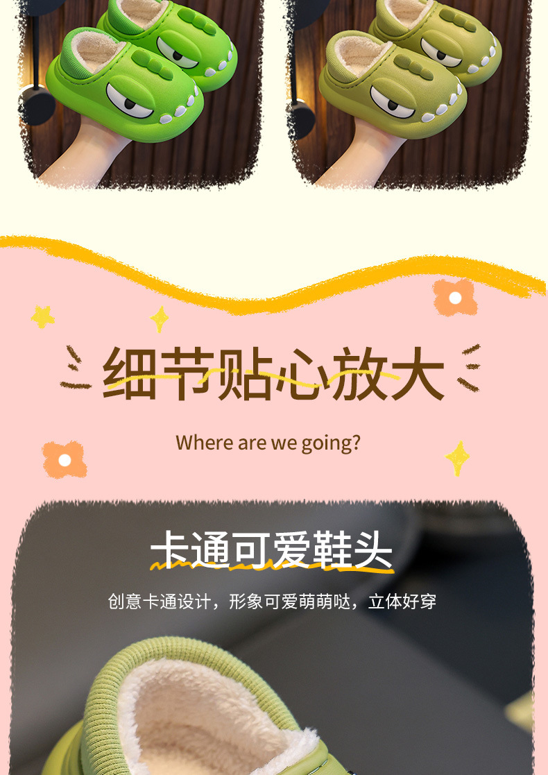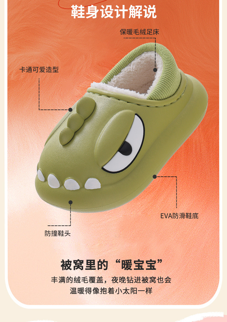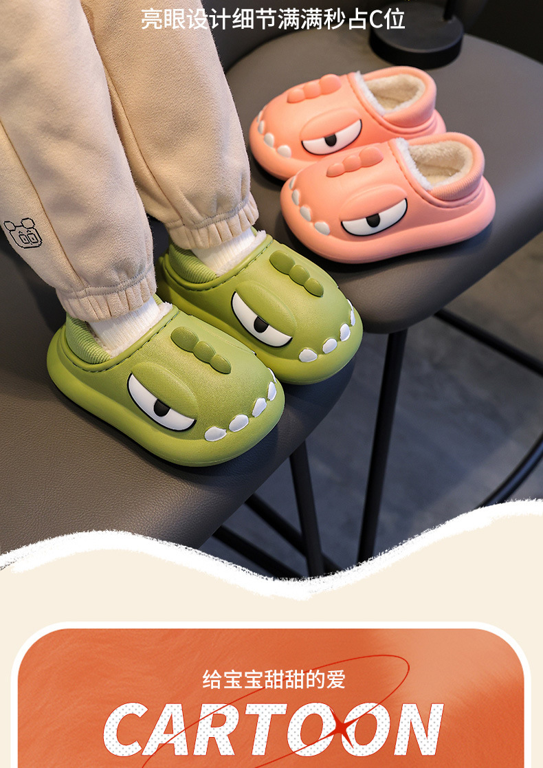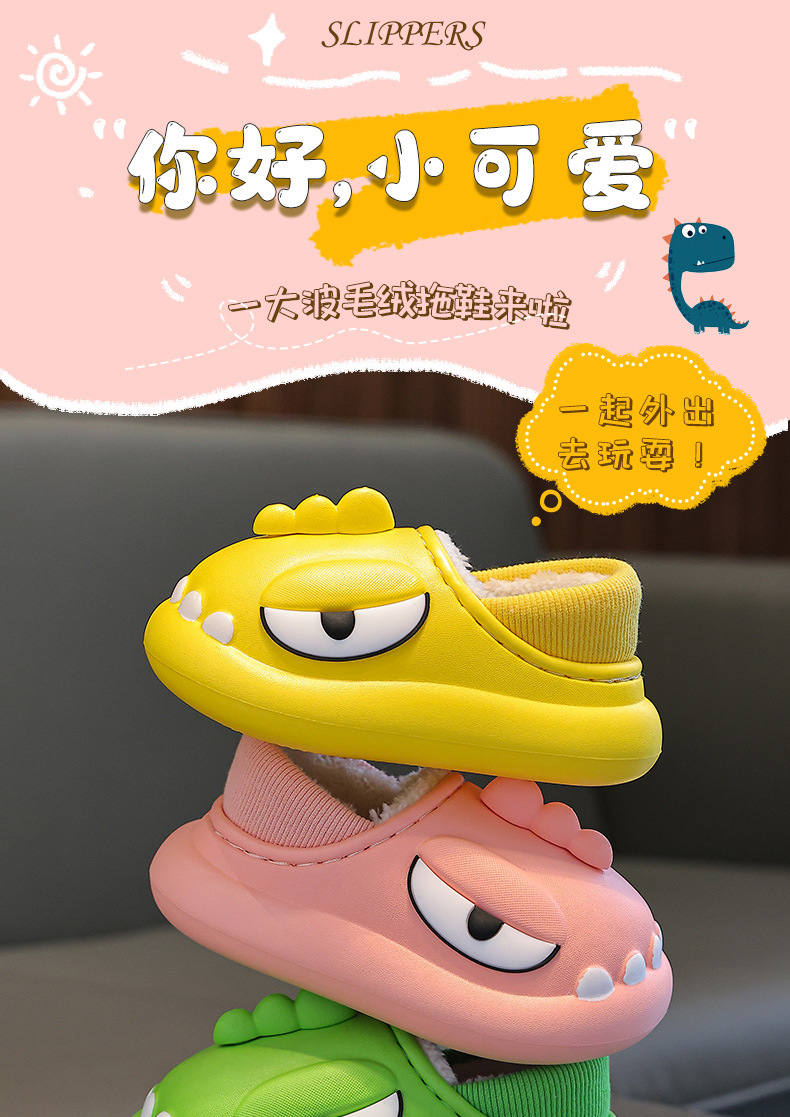 어린이 면화 슬리퍼 겨울 부모-자식 EVA 똥 느낌 공룡 가방 소년과 소녀 아기 방수 따뜻한 어린이 면화 신발스토어 가기