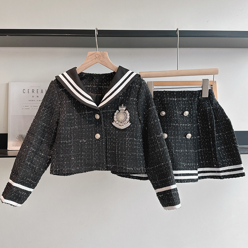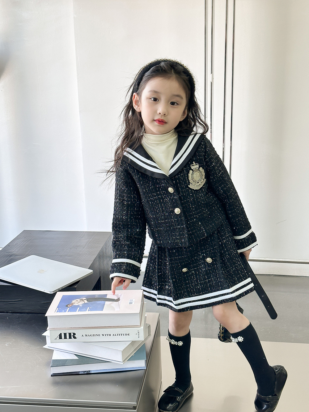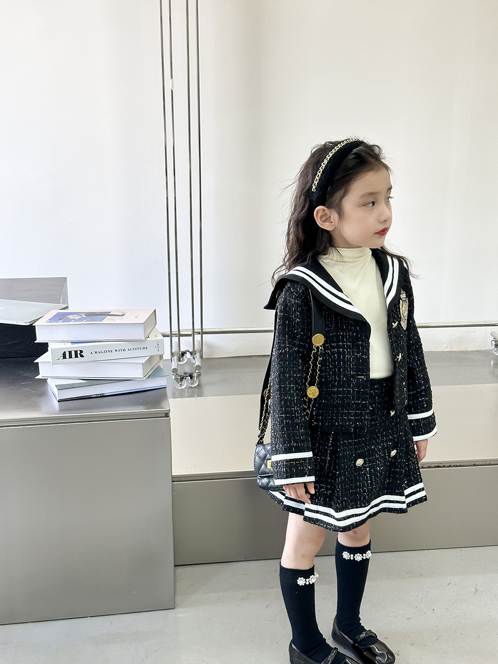 여아용 아카데미 스타일 봄가을 작은 프랑스풍 JK 네이비 칼라 재킷 플리츠 스커트 투피스 세트 재고정리 상품 반품불가스토어 가기
