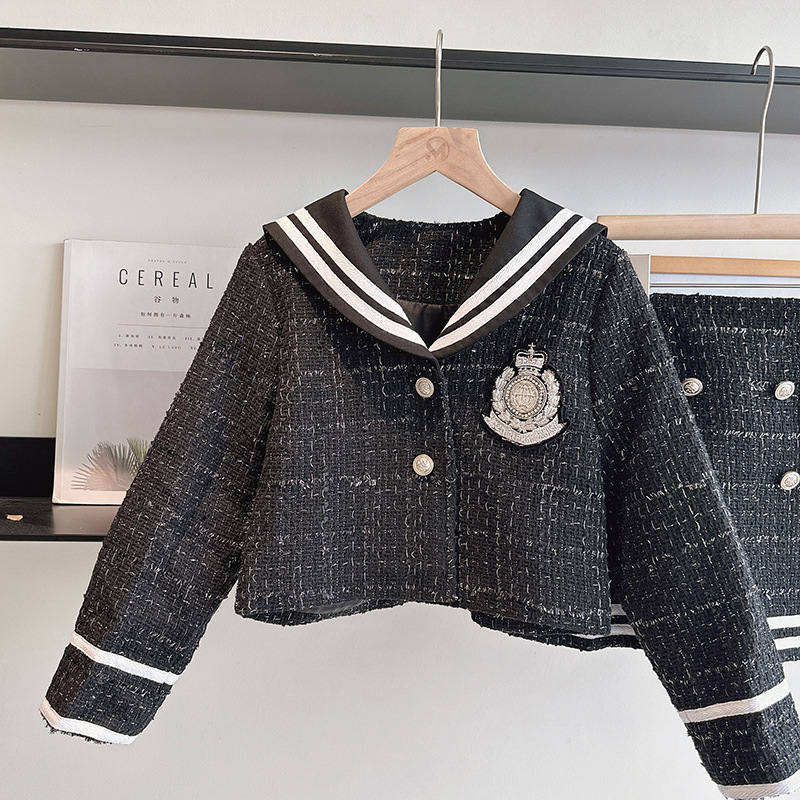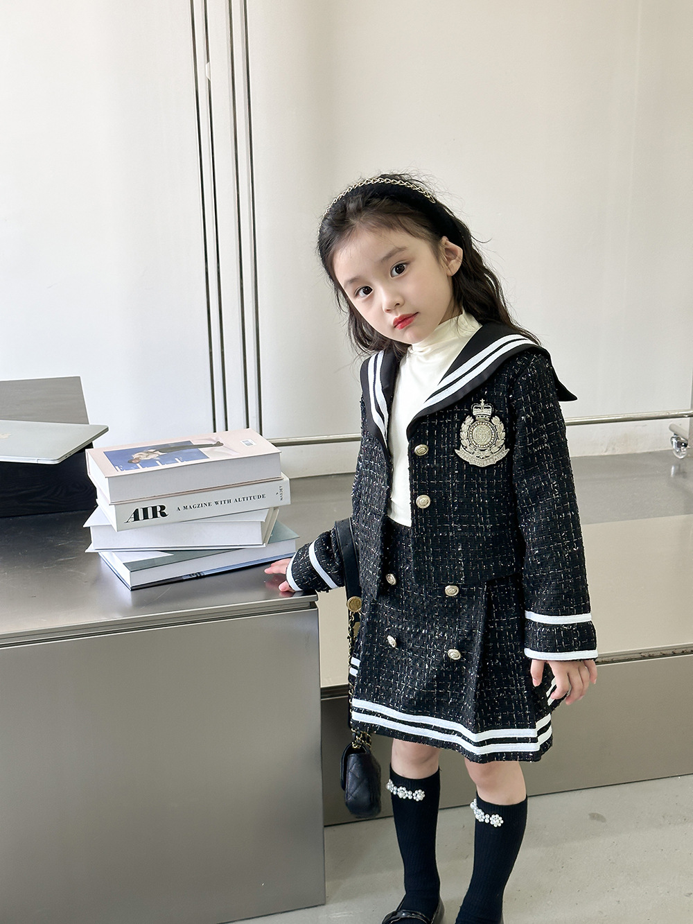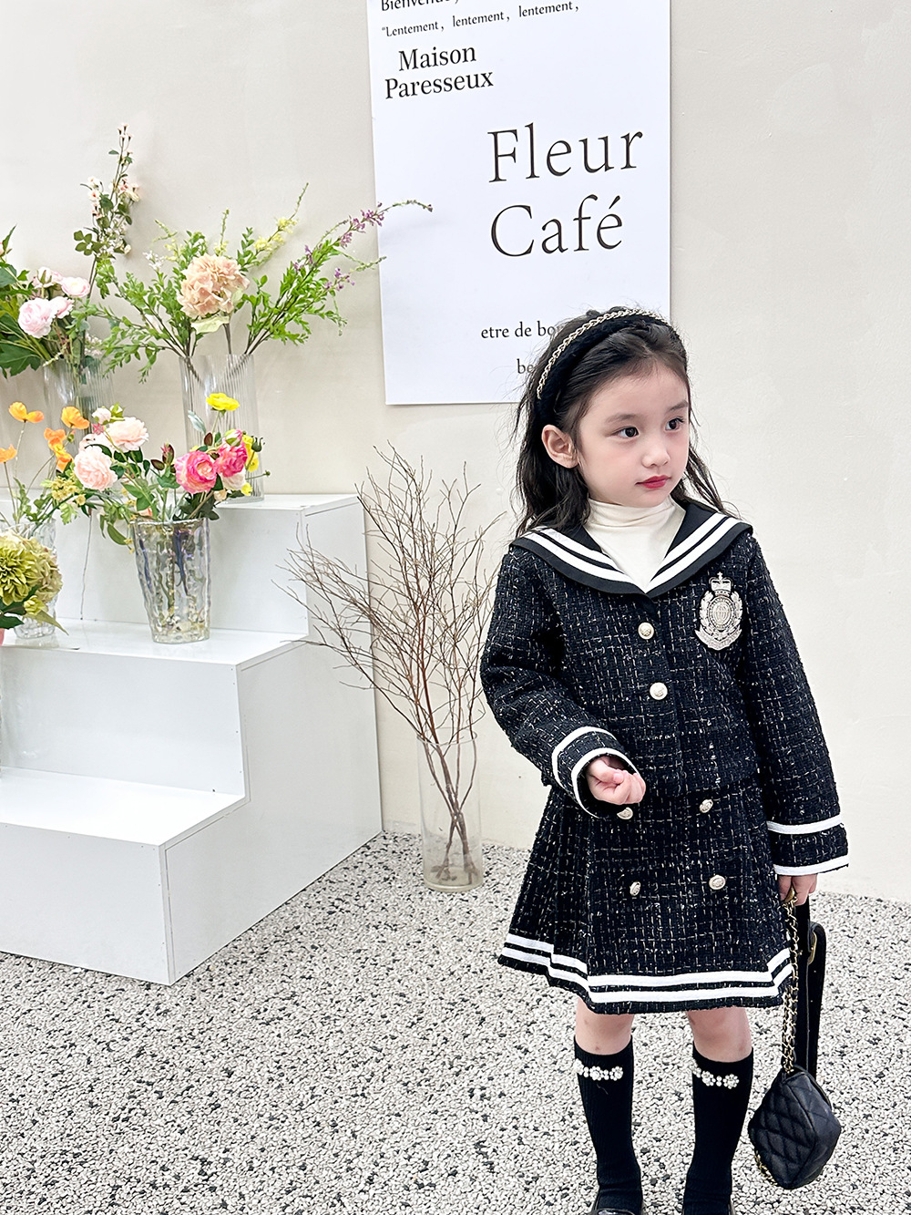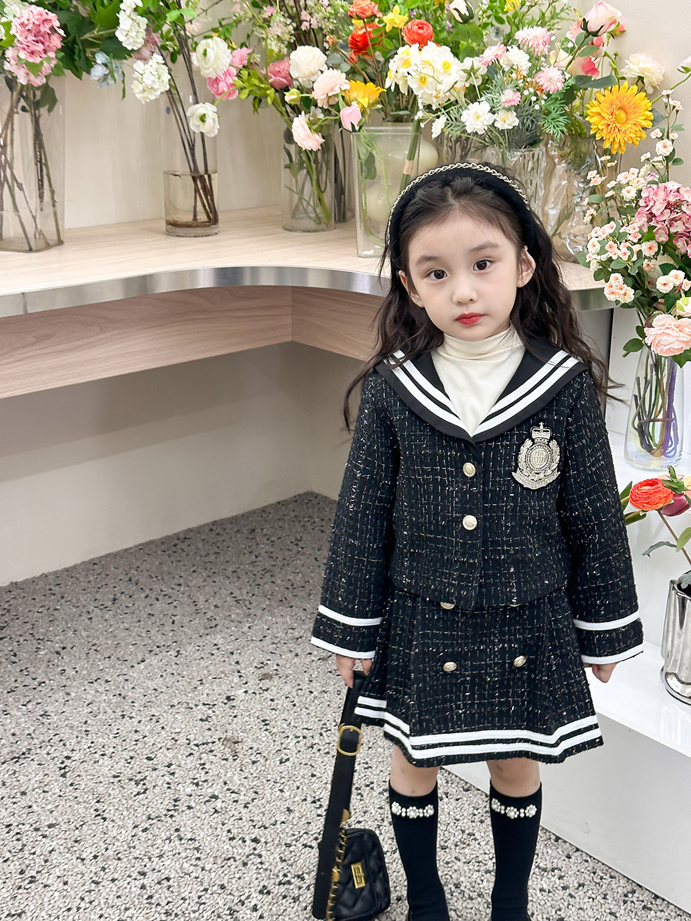여아용 아카데미 스타일 봄가을 작은 프랑스풍 JK 네이비 칼라 재킷 플리츠 스커트 투피스 세트 재고정리 상품 반품불가스토어 가기