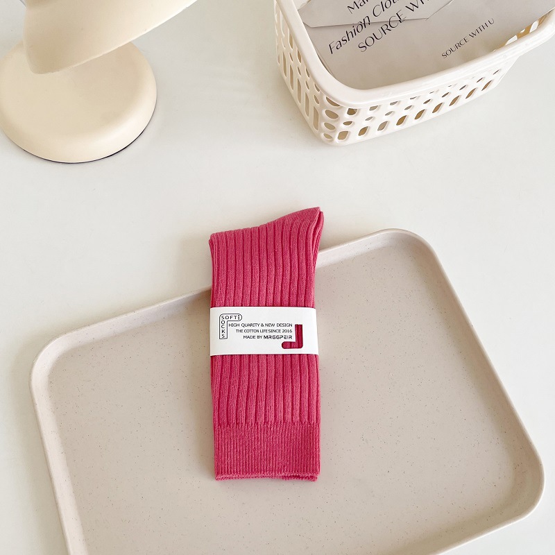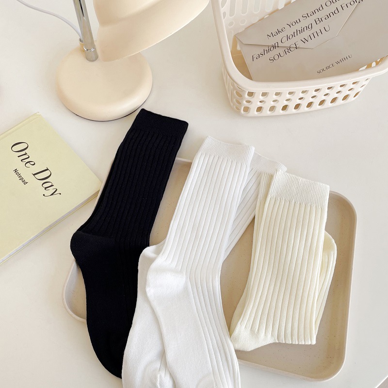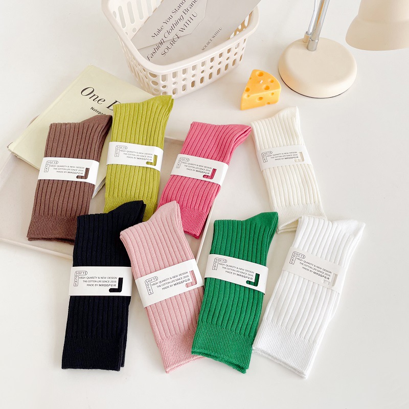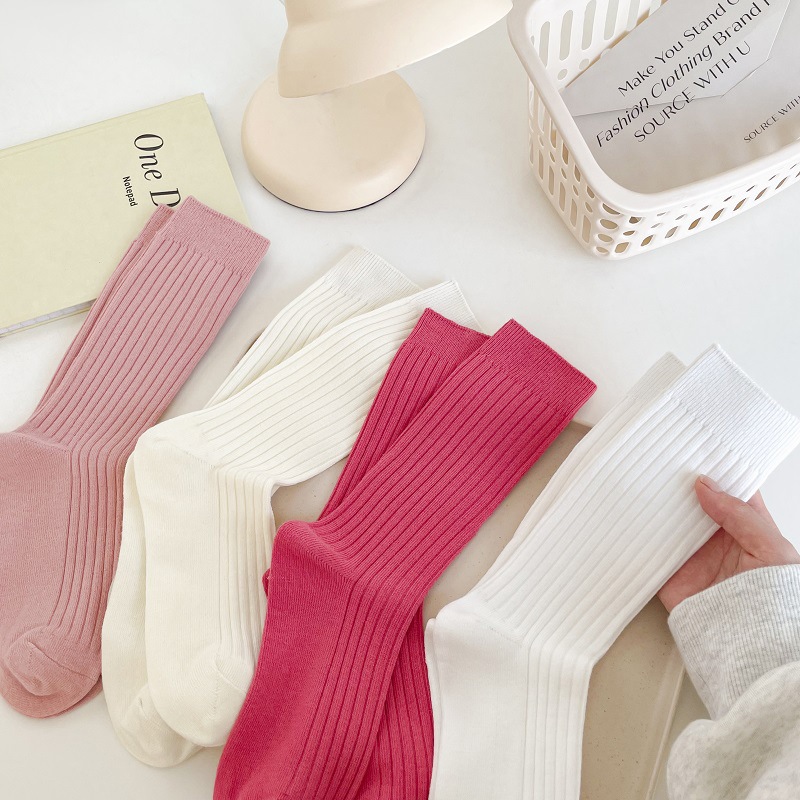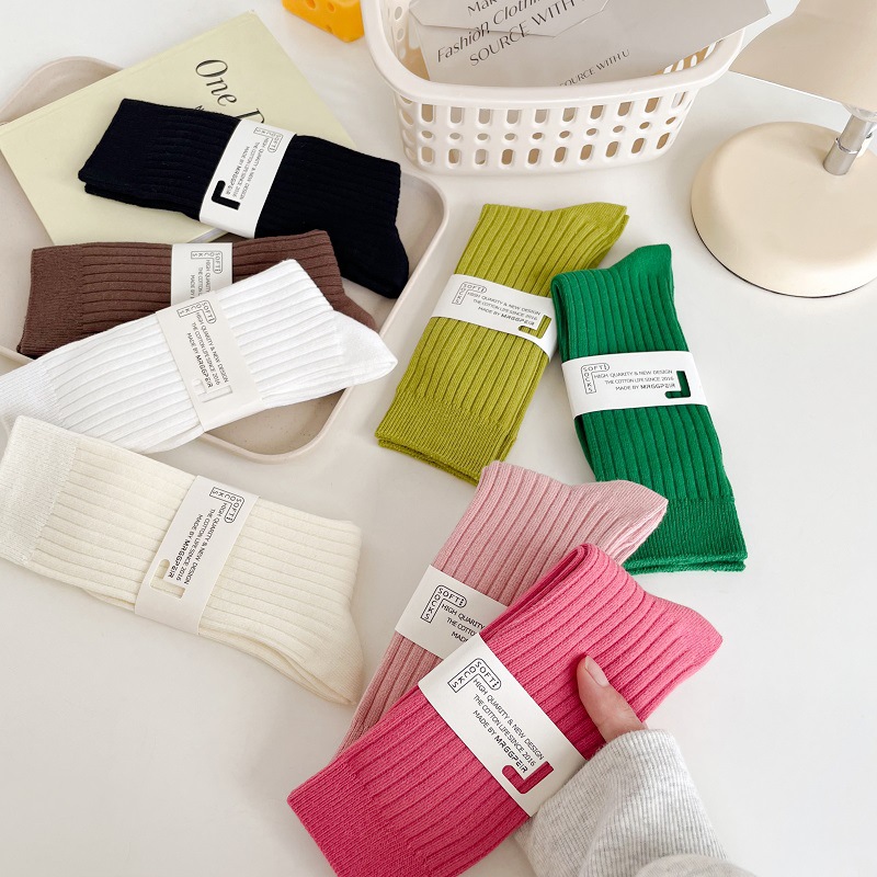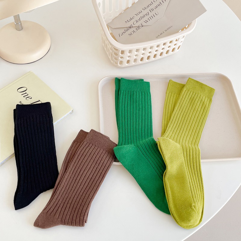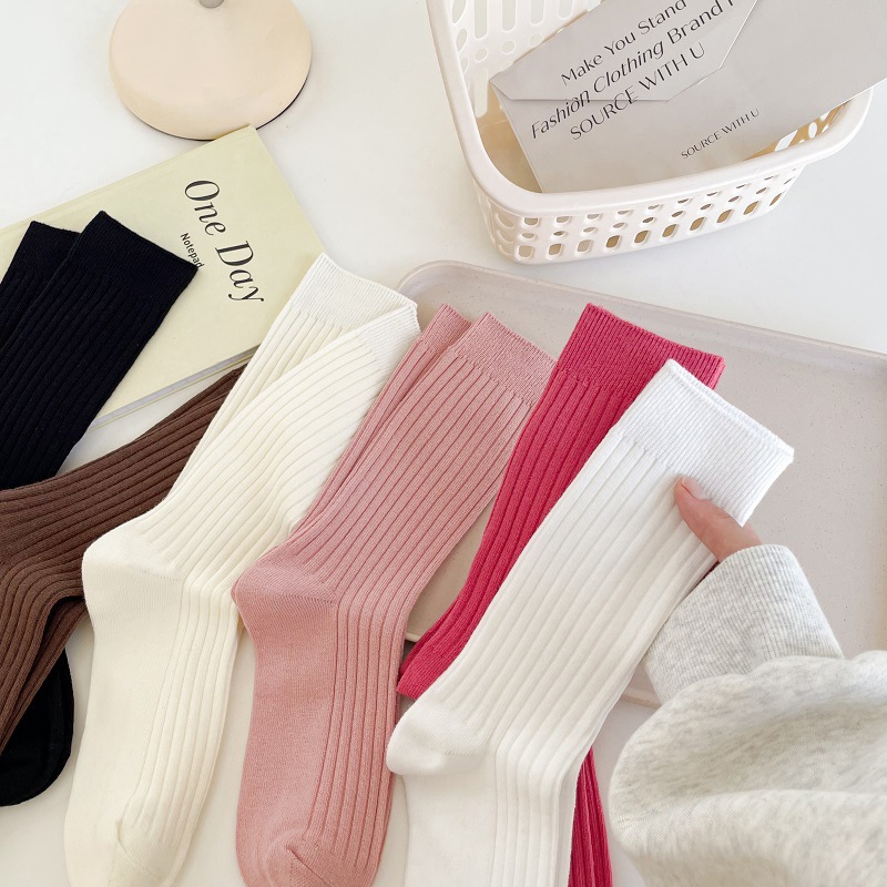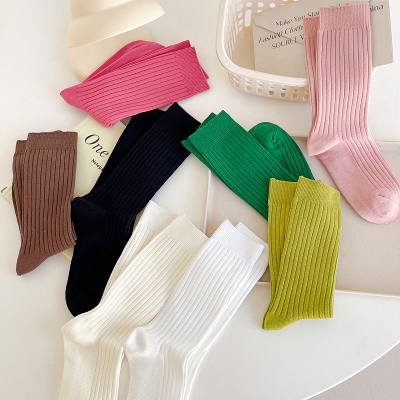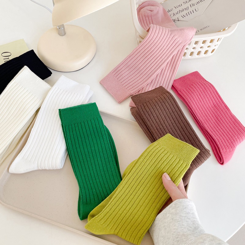 가을과 겨울 세로 줄무늬 중간 길이 스타킹 일본식 더블 니들 컬러 도파민 착용 스포츠 단색 스타킹스토어 가기