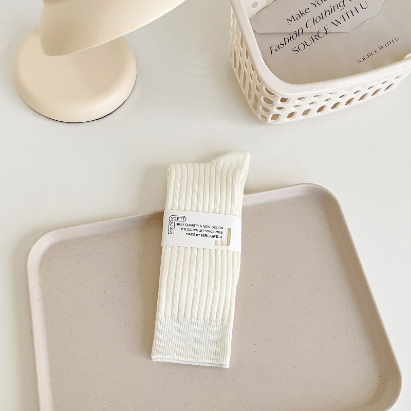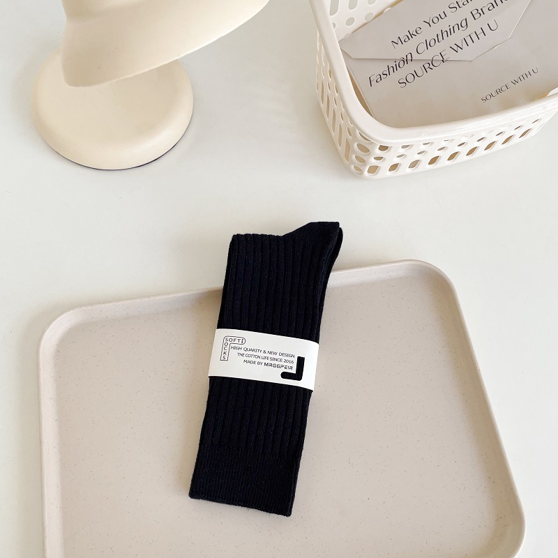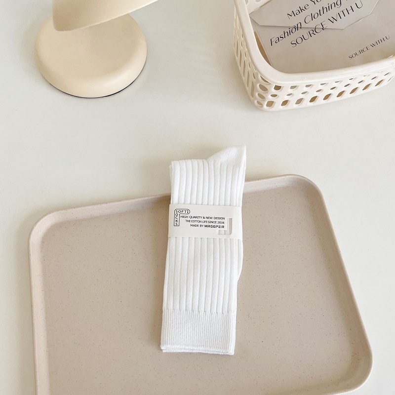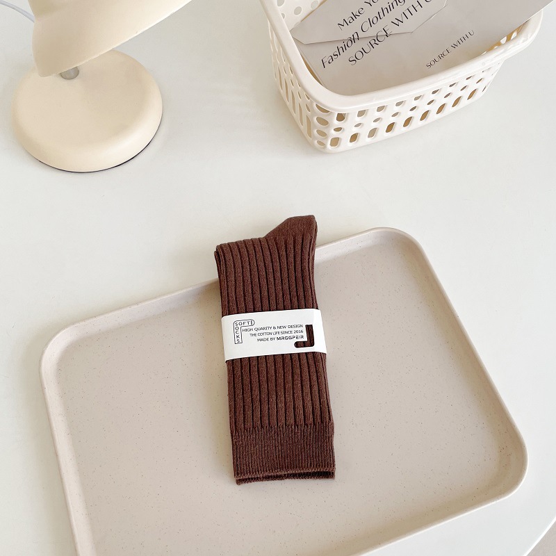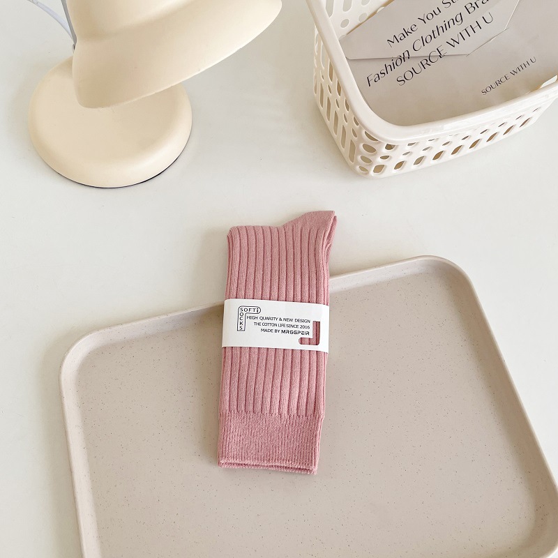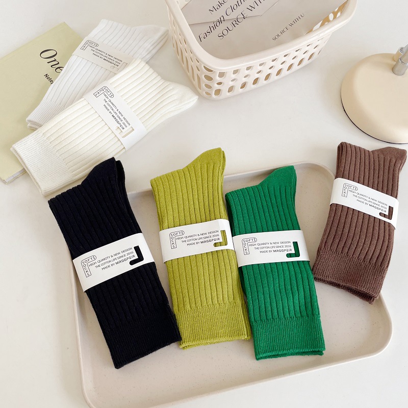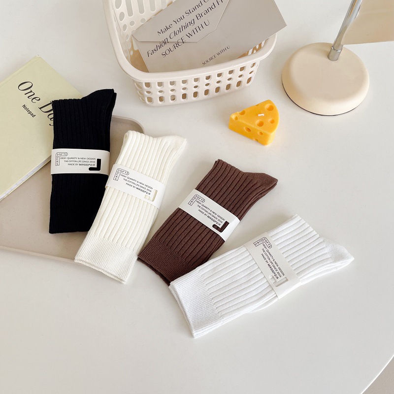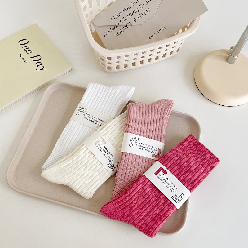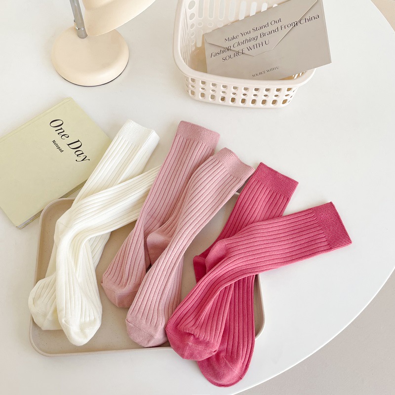 가을과 겨울 세로 줄무늬 중간 길이 스타킹 일본식 더블 니들 컬러 도파민 착용 스포츠 단색 스타킹스토어 가기
