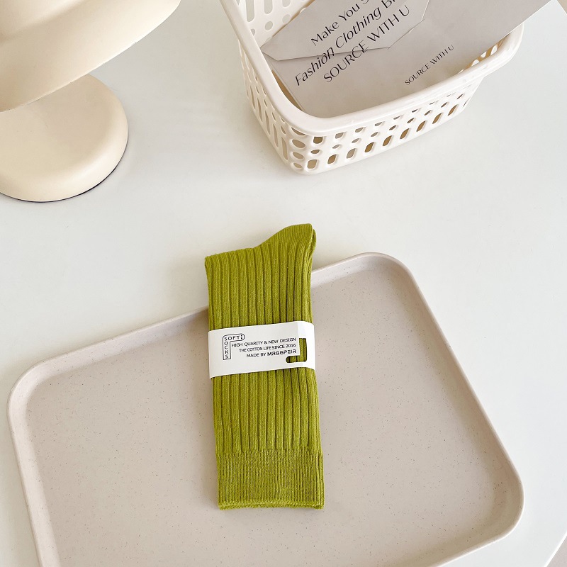 가을과 겨울 세로 줄무늬 중간 길이 스타킹 일본식 더블 니들 컬러 도파민 착용 스포츠 단색 스타킹