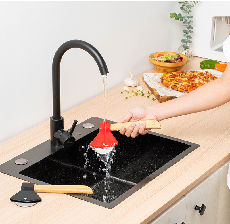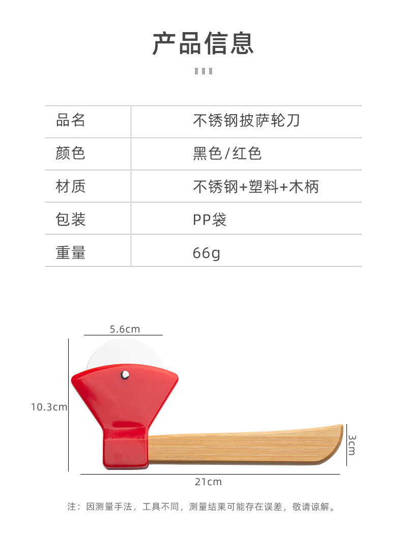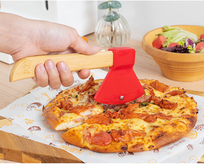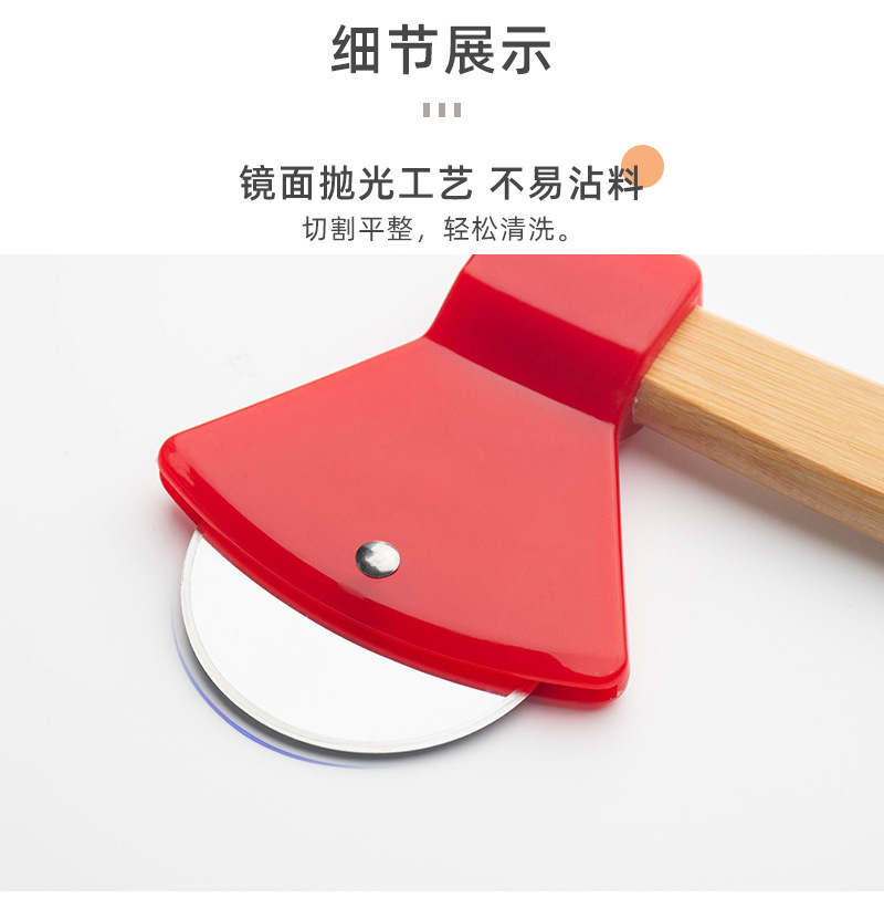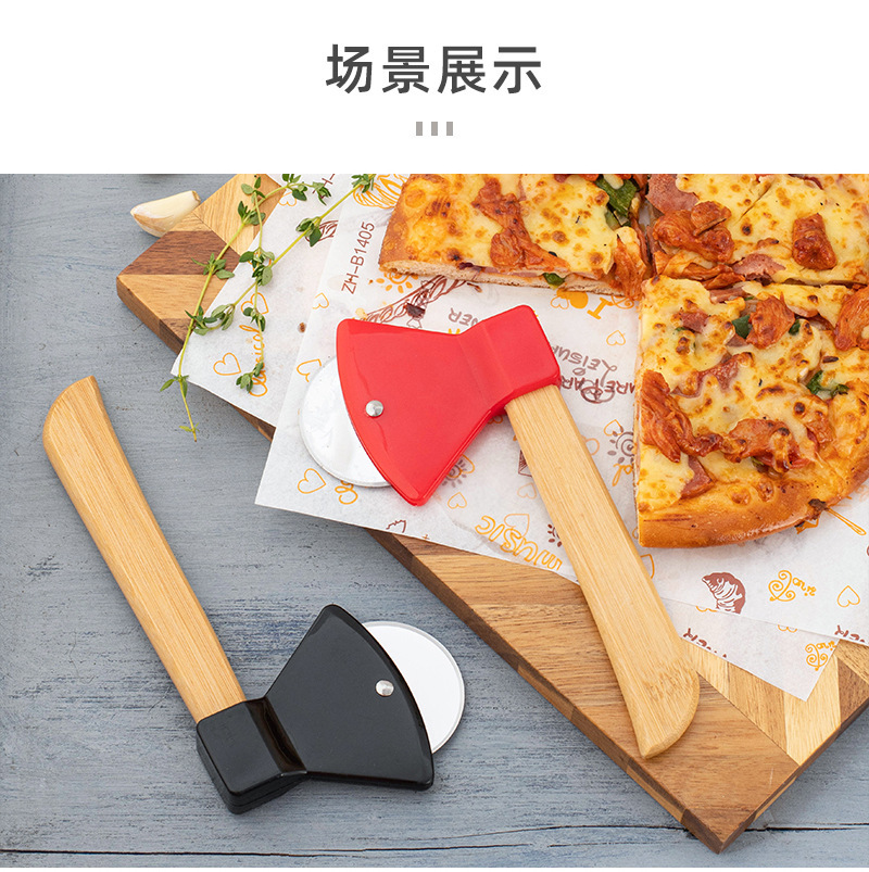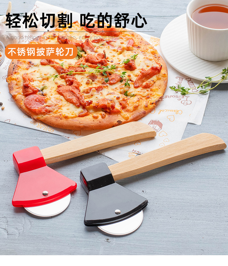 스테인레스 스틸 도끼형 피자 커터 나무 손잡이 피자 커터 베이킹 가제트 싱글 휠 팬케이크 커터