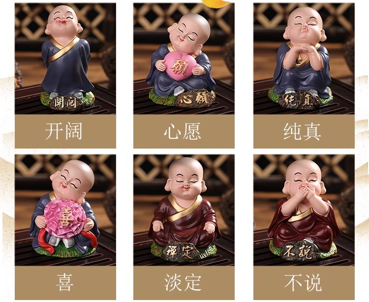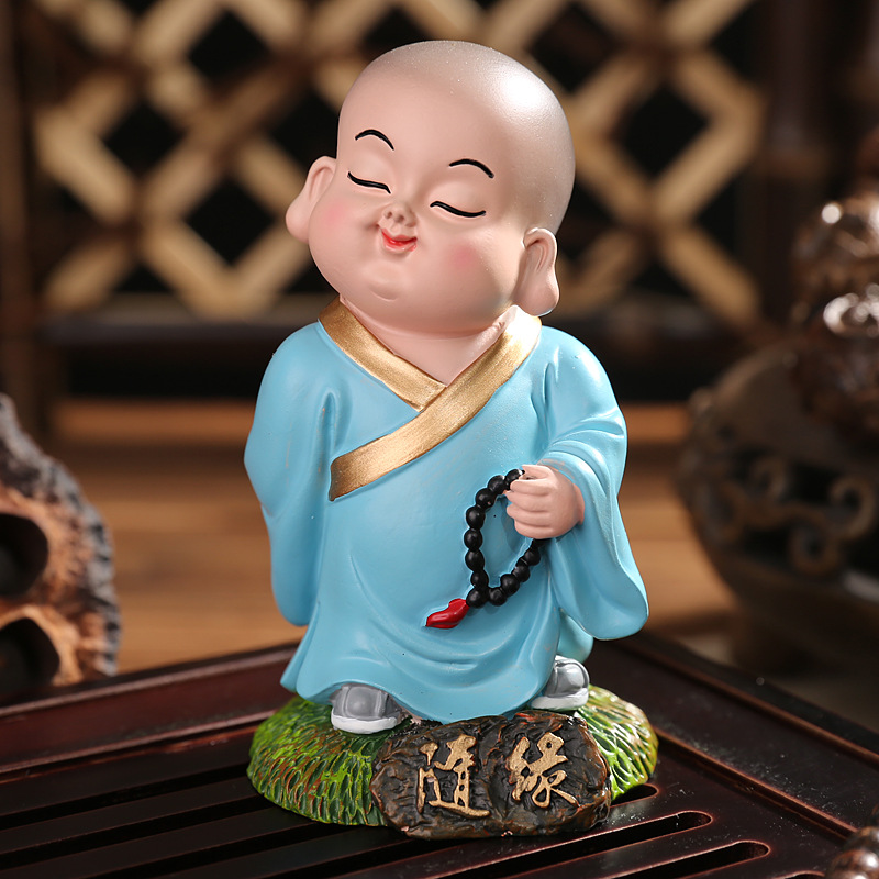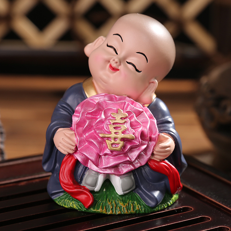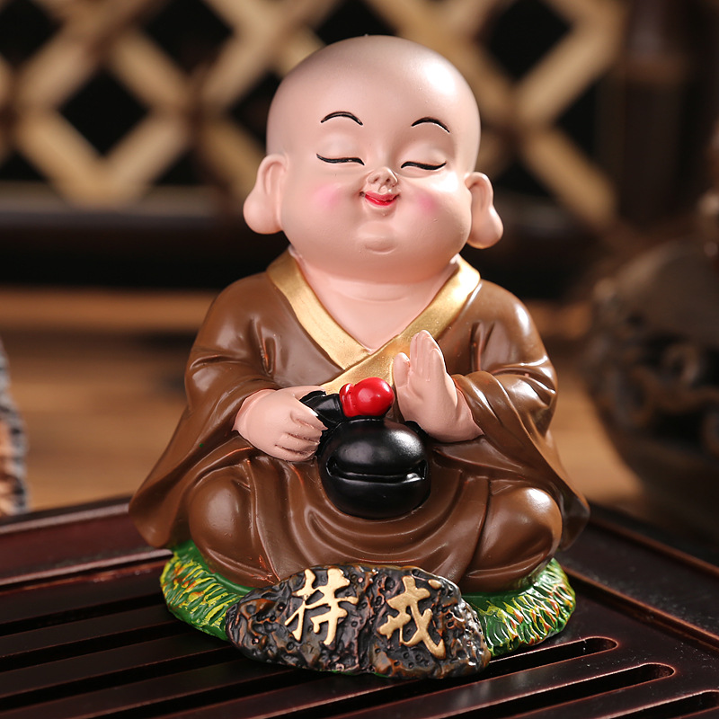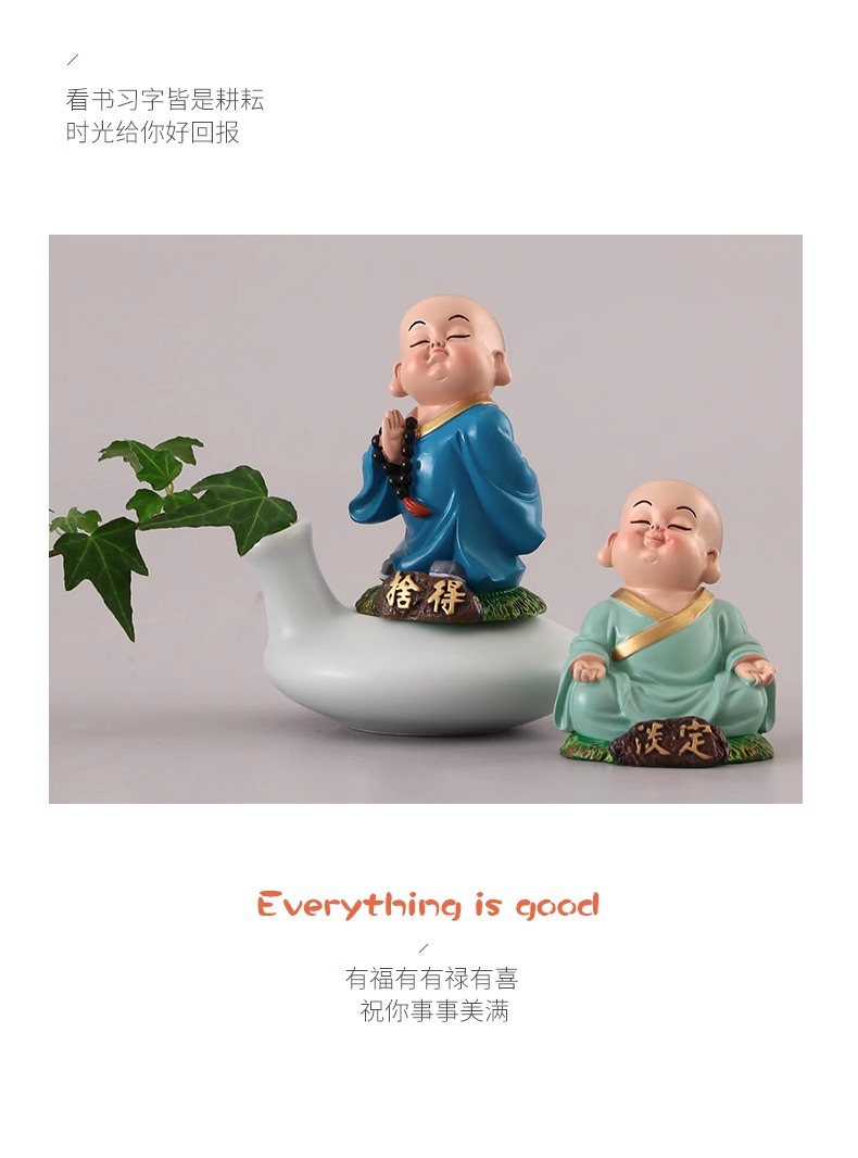 작은 스님 장식품 자동차 장식품 중국 가정 사무실 장식 선물 미니 수지 공예 도매