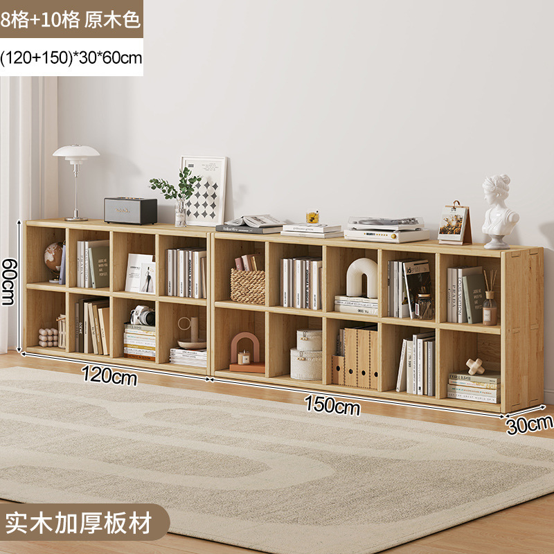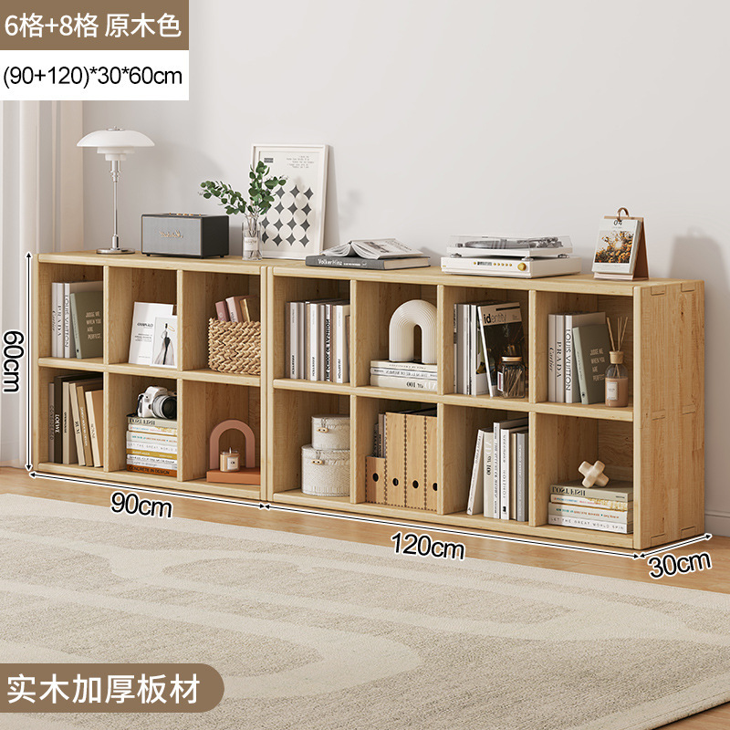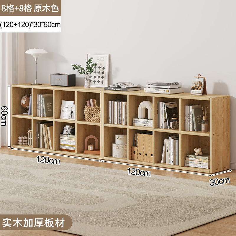 모든 단단한 나무 책장 보관 랙 바닥 서 벽 조합 격자 캐비닛 어린이 거실 수납 낮은 가정용 책장스토어 가기