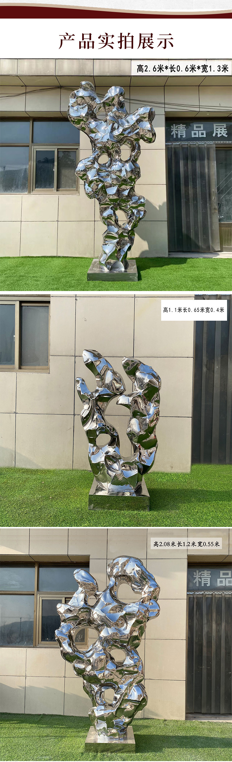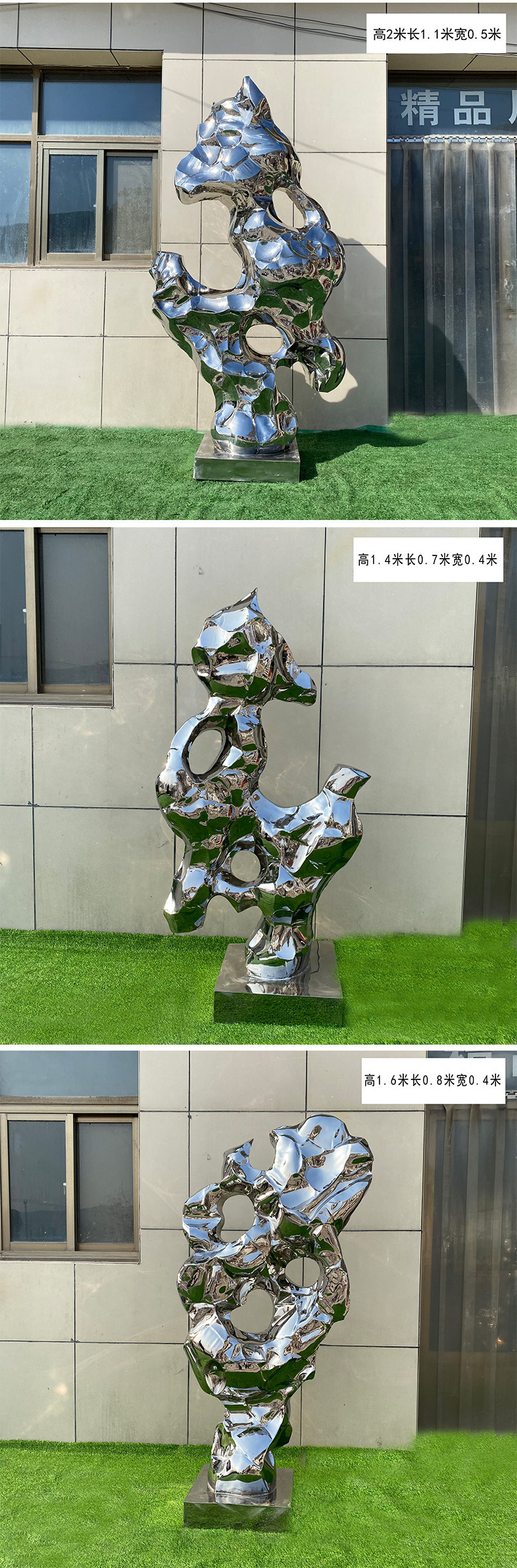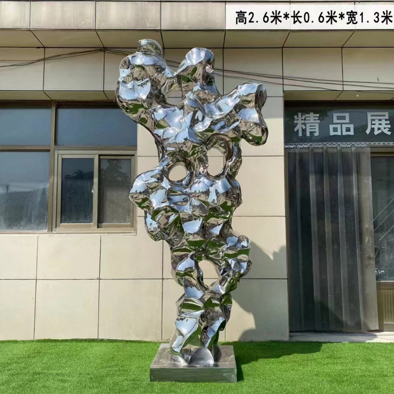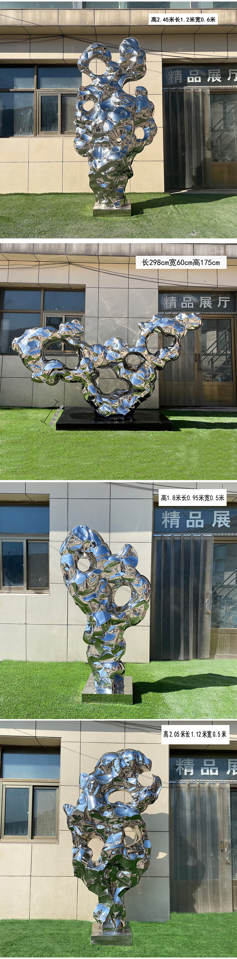 거울 스테인리스 호수 돌 조각 추상 금속 창조적 인 바위 스테인리스 조각 조약돌 풍경 조각스토어 가기
