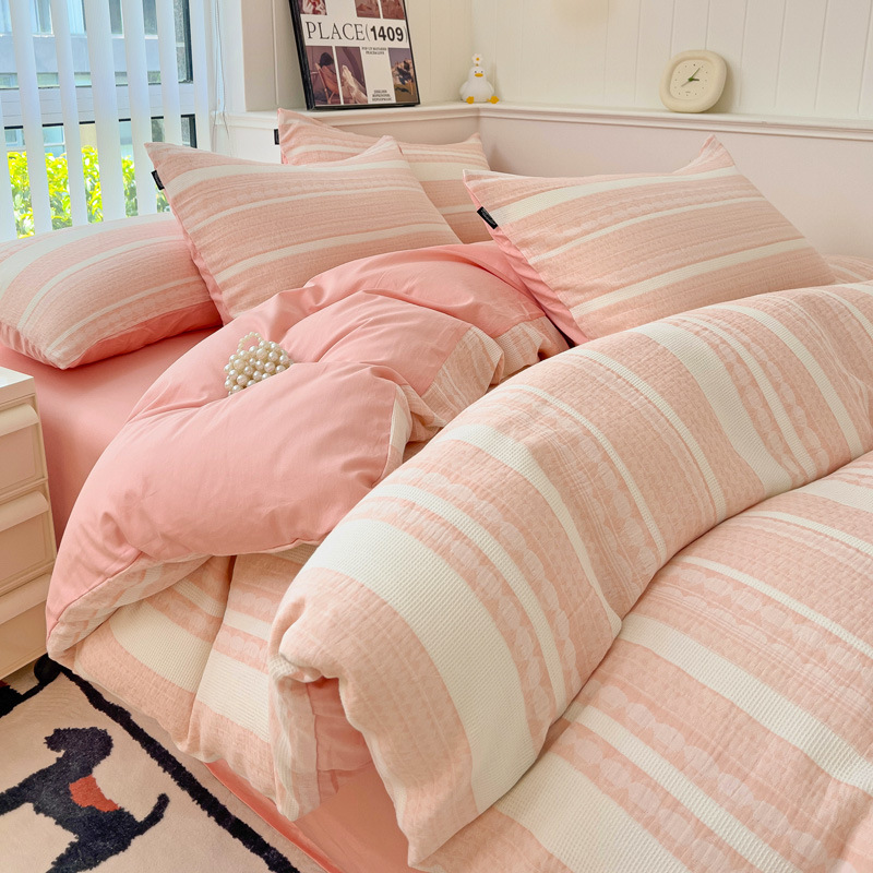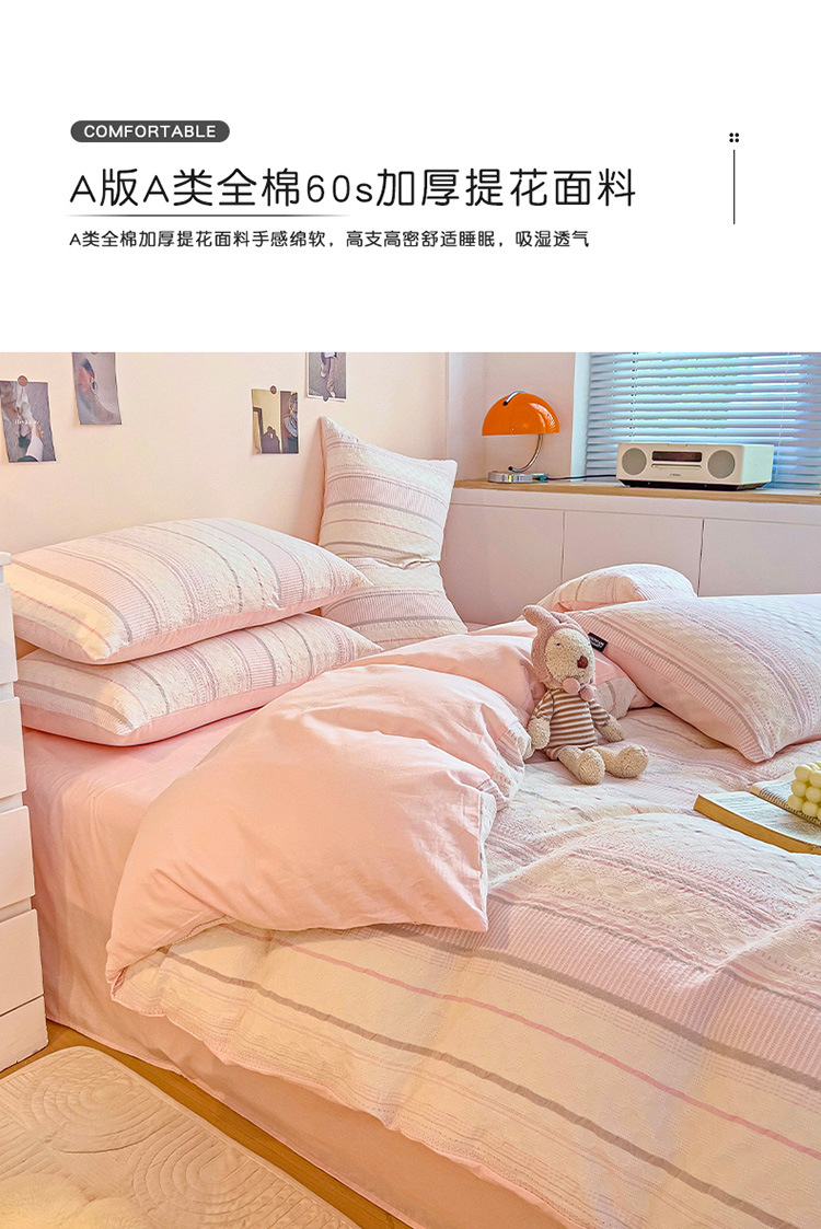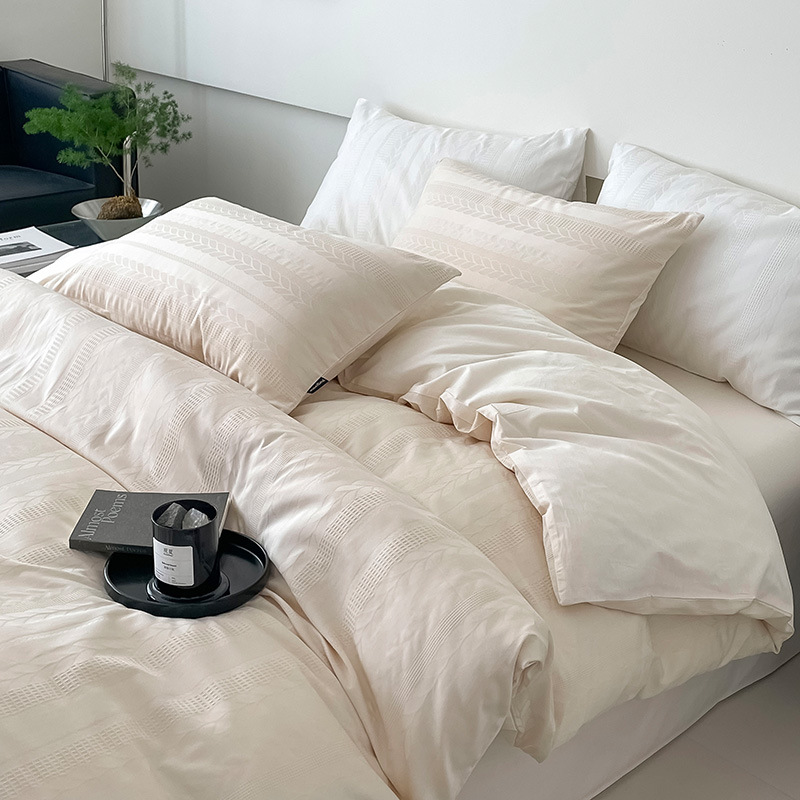 순면 엄마와 아이 클래스 A 60 년대 4 종 세트 자카드 코튼 3 종 세트 크림 윈드 이불 커버 침대 시트 기숙사 침구스토어 가기