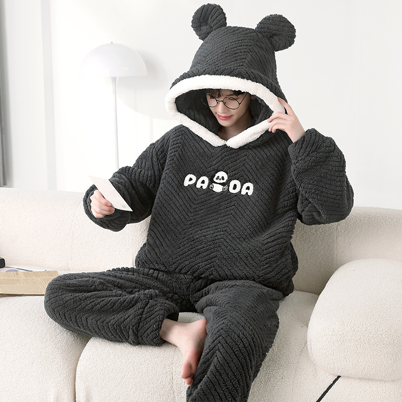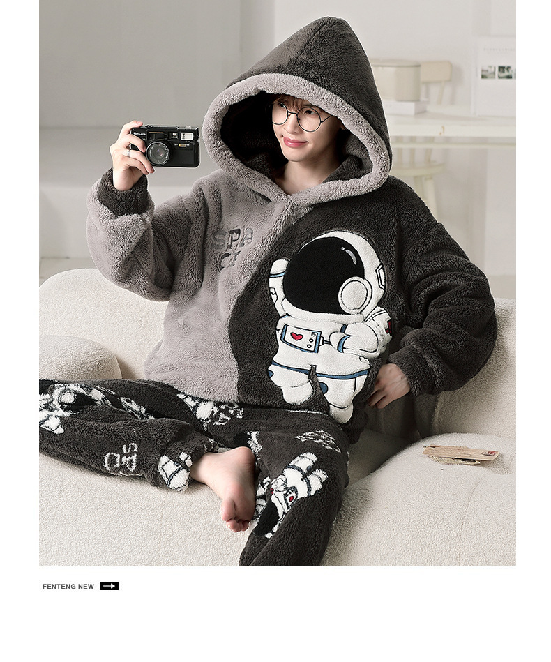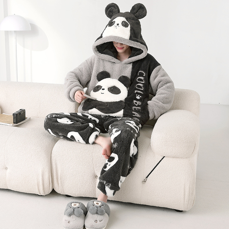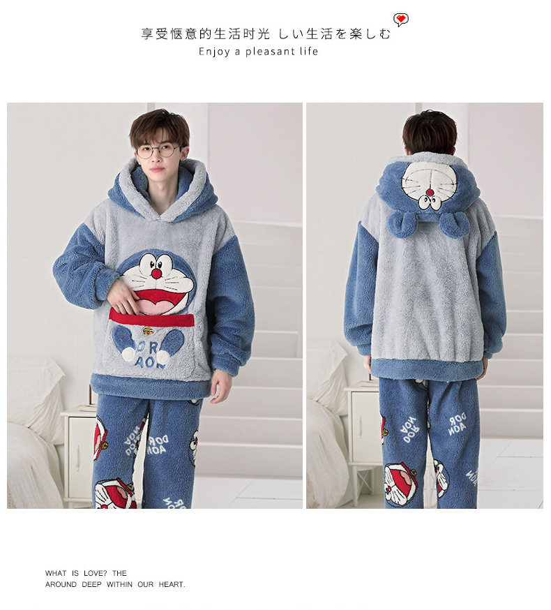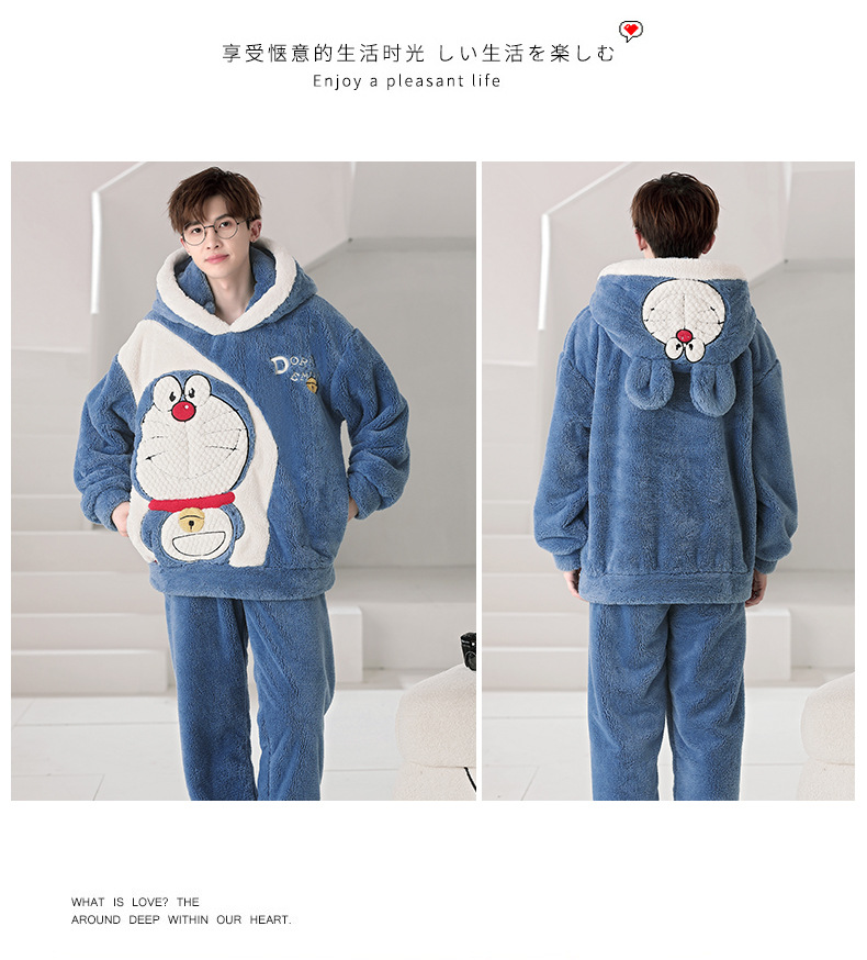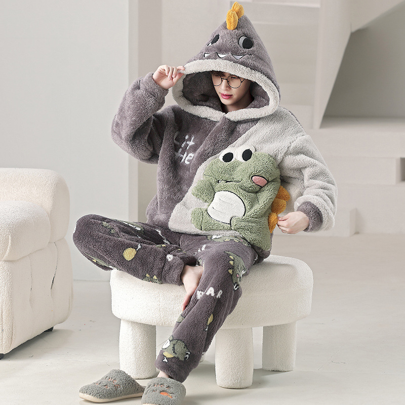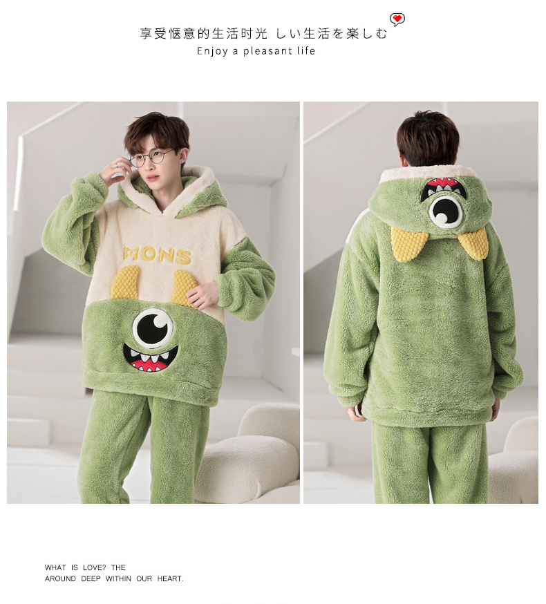 겨울 플란넬 잠옷 남자의 만화 두꺼운 십대 남자의 후드 산호 양털 플러스 사이즈 가정 옷 세트스토어 가기