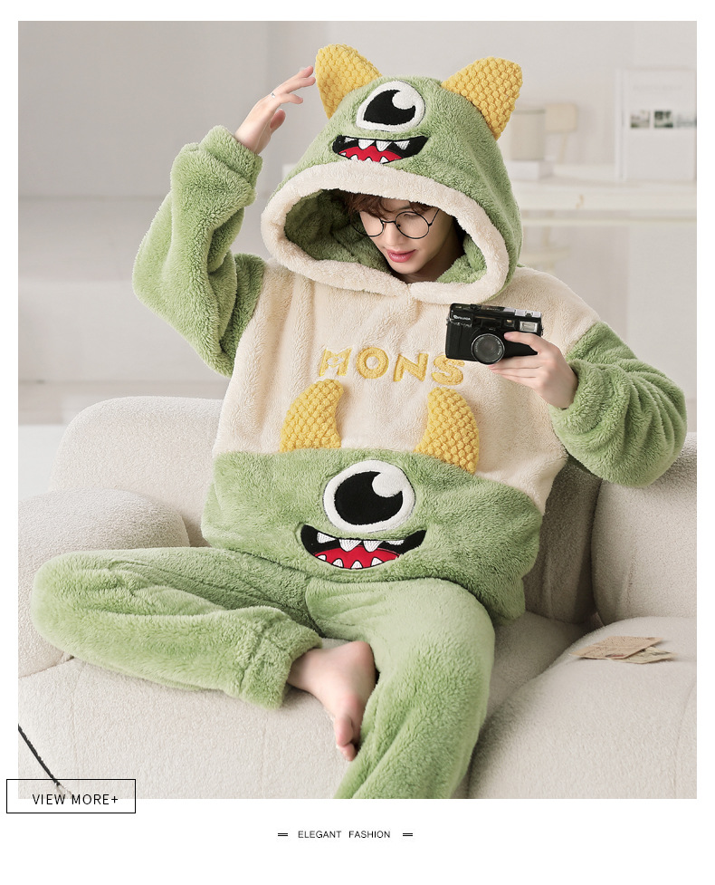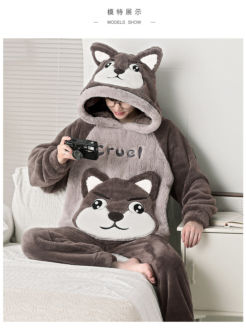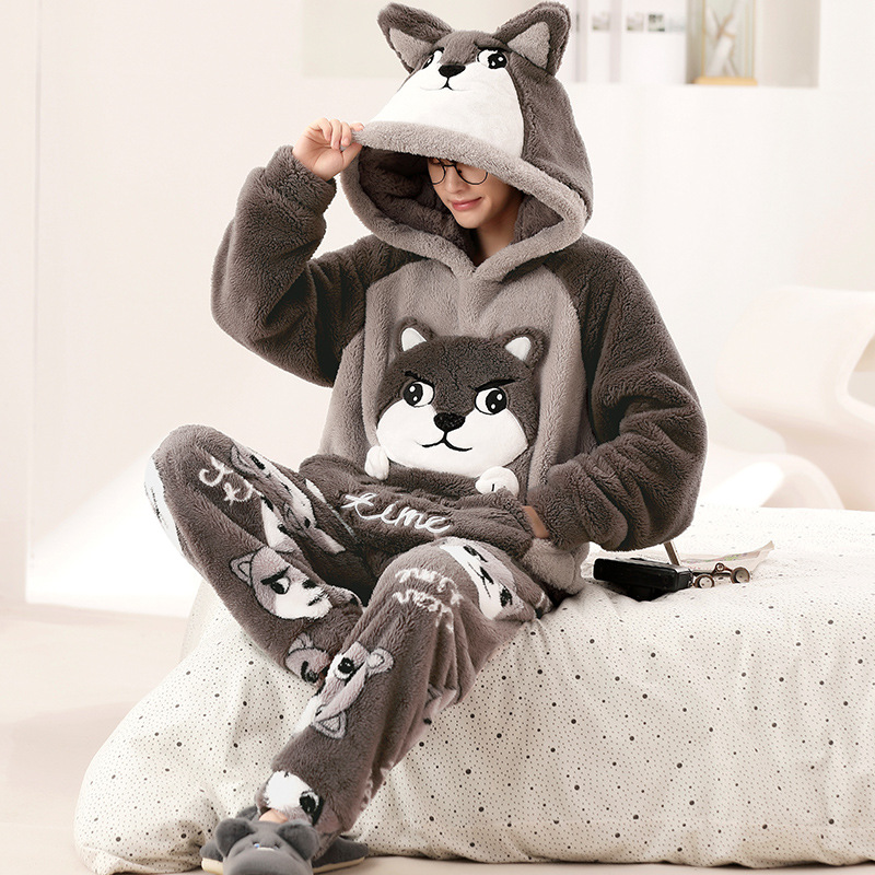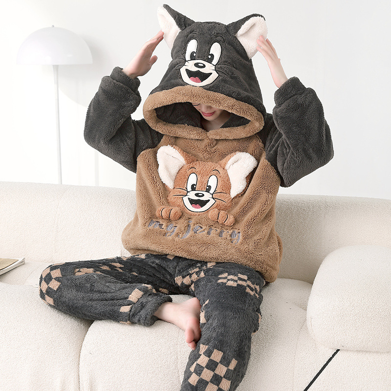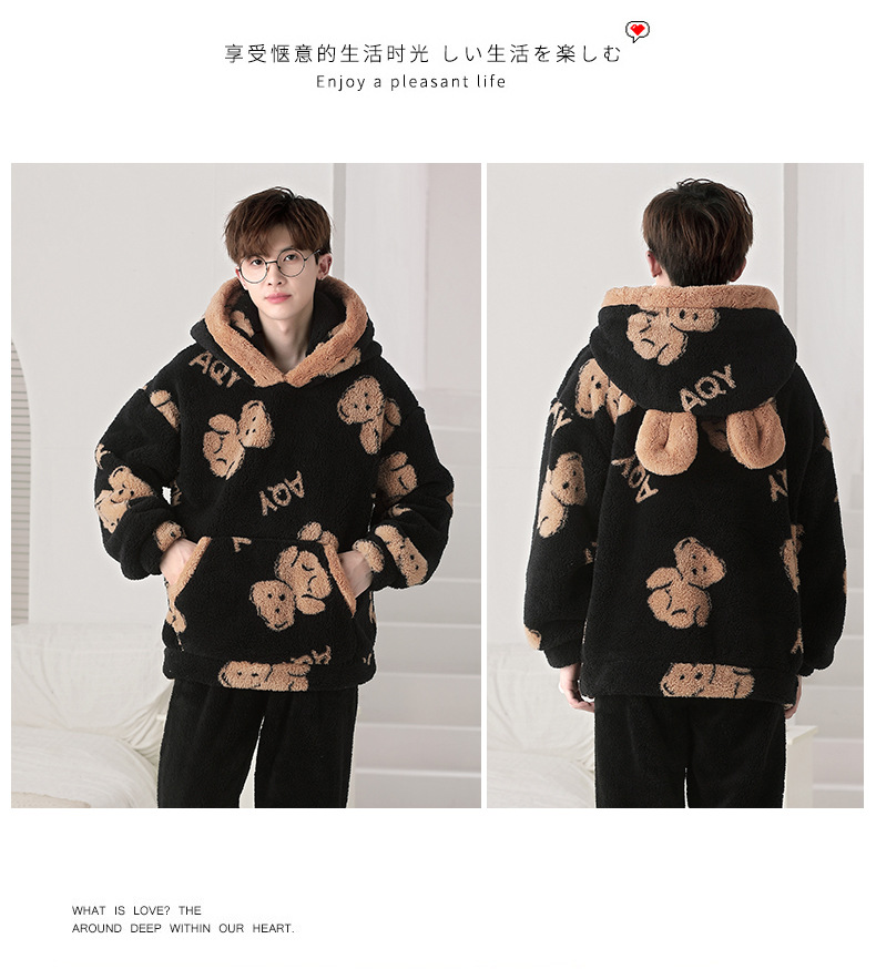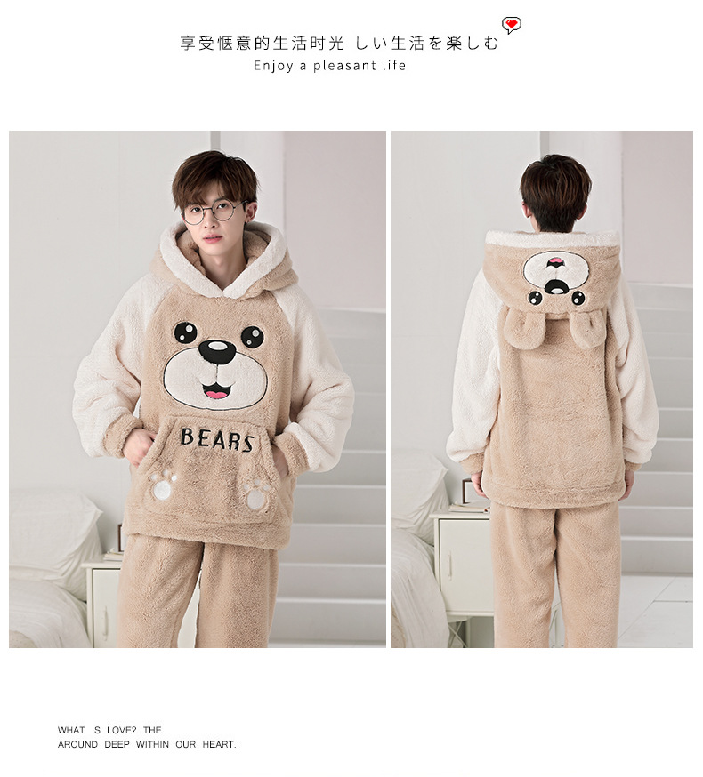 겨울 플란넬 잠옷 남자의 만화 두꺼운 십대 남자의 후드 산호 양털 플러스 사이즈 가정 옷 세트스토어 가기