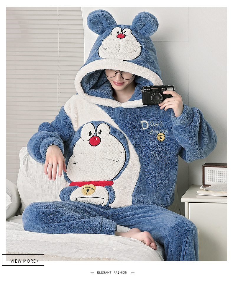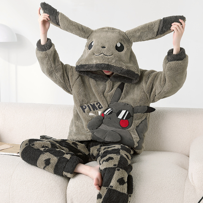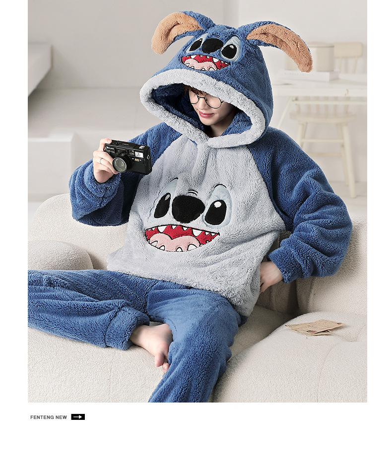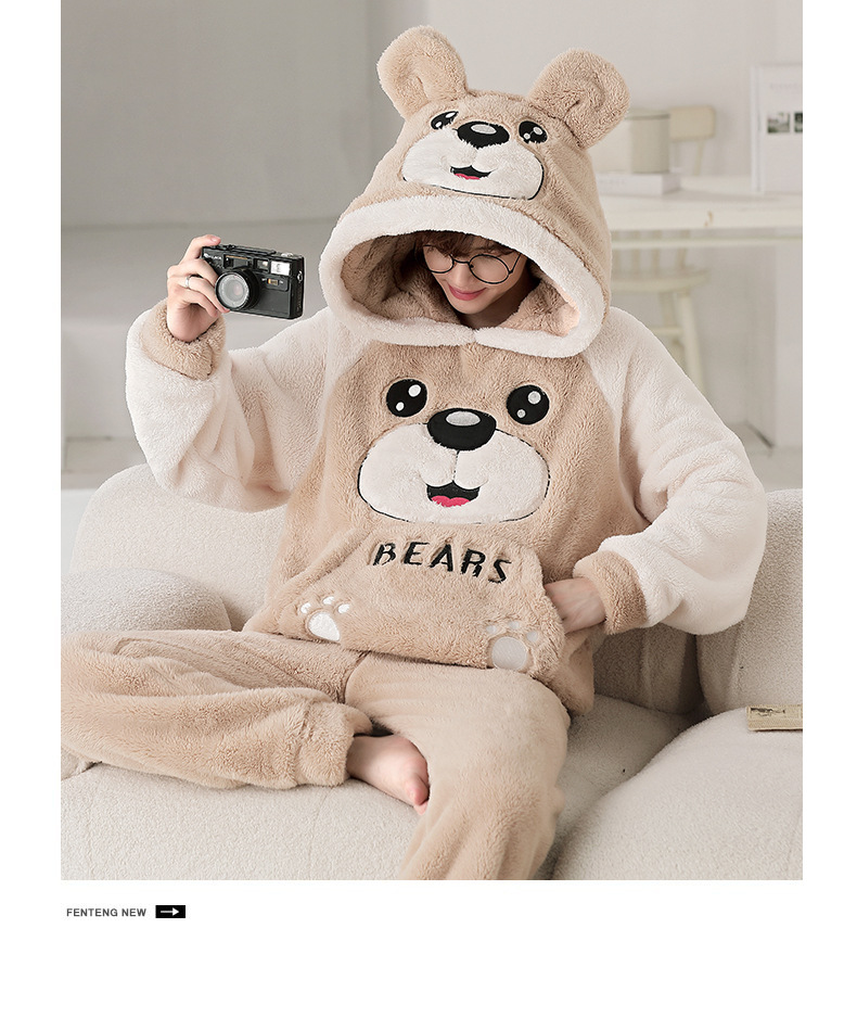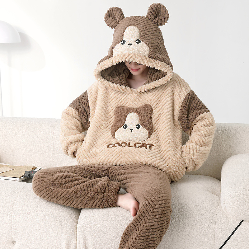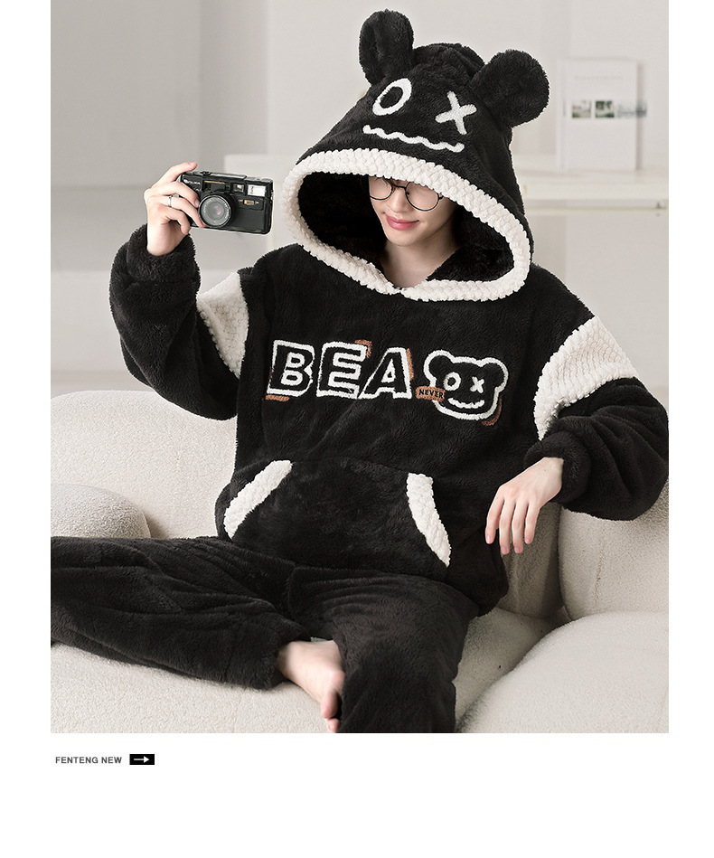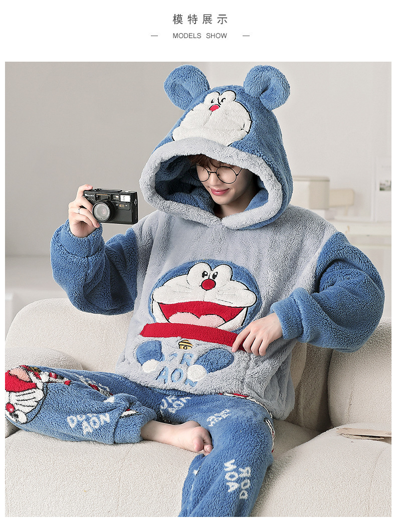 겨울 플란넬 잠옷 남자의 만화 두꺼운 십대 남자의 후드 산호 양털 플러스 사이즈 가정 옷 세트스토어 가기