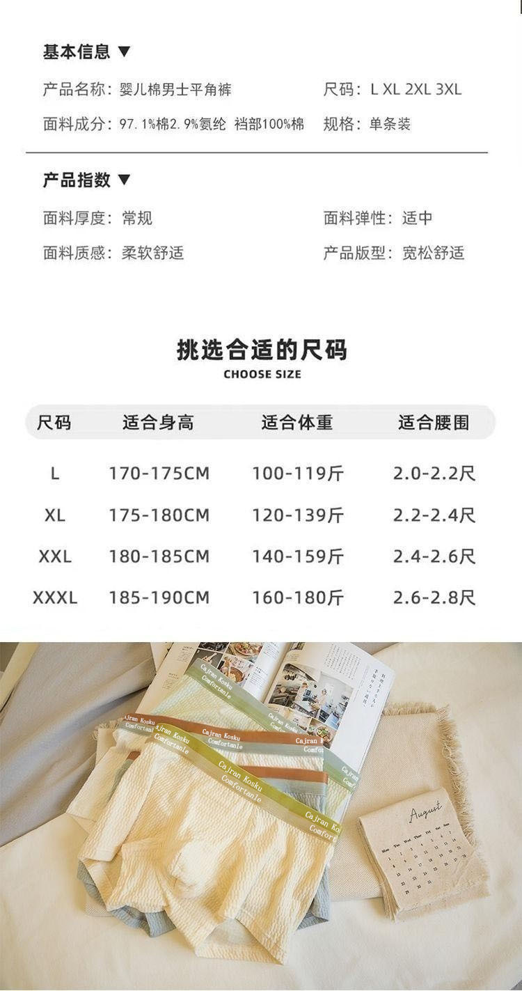 아기면 속옷 소년면 편안한 미드 웨이스트 복서 남성용 통기성 항균 복서 여름 반바지 헤드