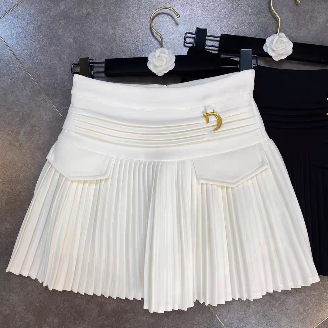 여아 가을 벨벳 스커트, 레터 메탈 버클, 더블 포켓, 골드 벨벳 플리츠 스커트, 한국 스타일 중대형 아동 스커트스토어 가기