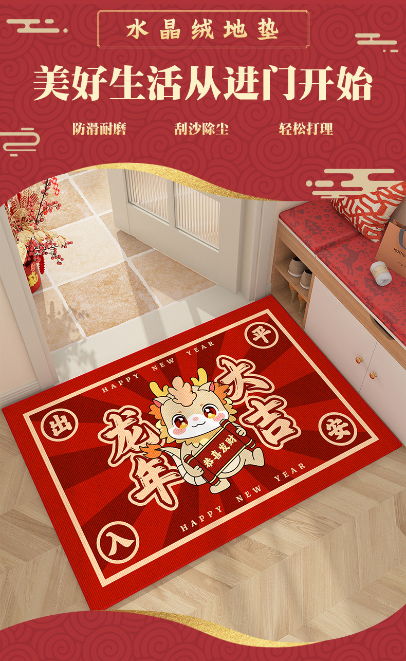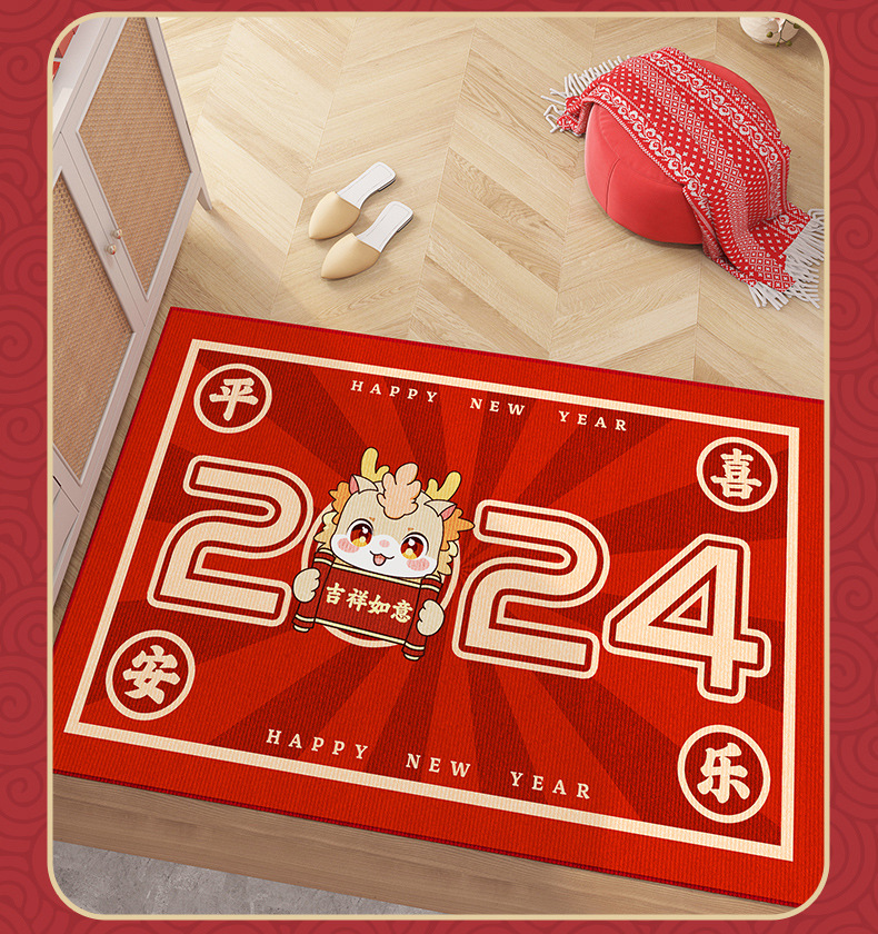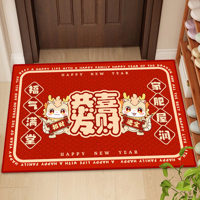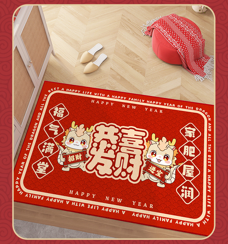 2024 새로운 용의 해 바닥 매트 만화 메이시 드래곤 물 흡수 미끄럼 방지 바닥 매트 홈 새해 문 바닥 매트스토어 가기