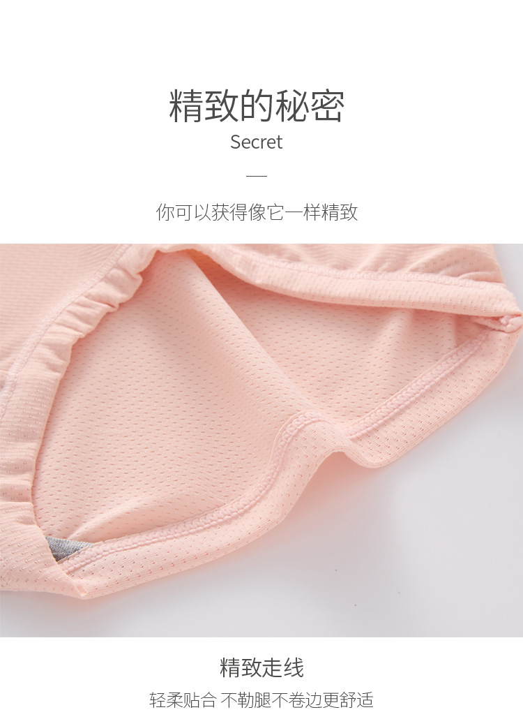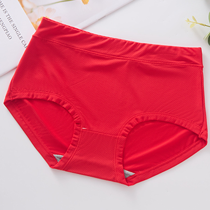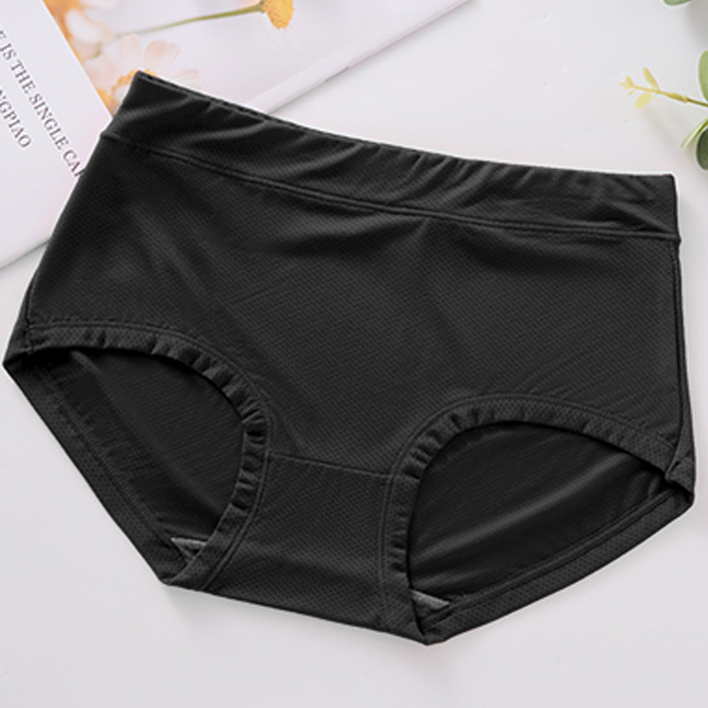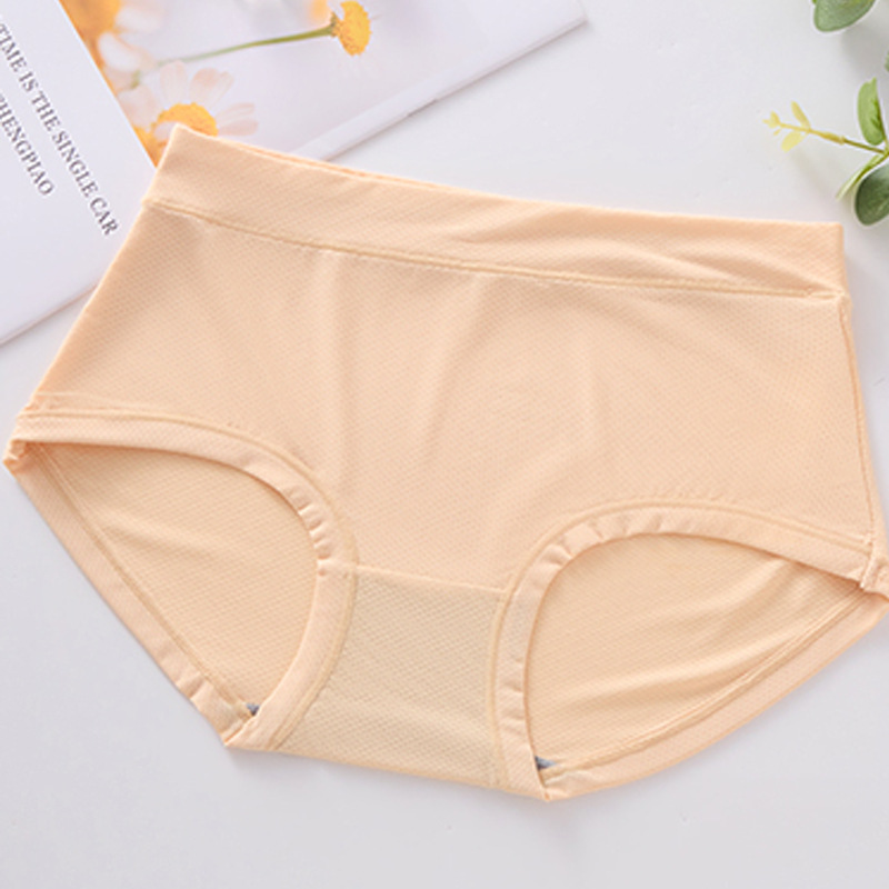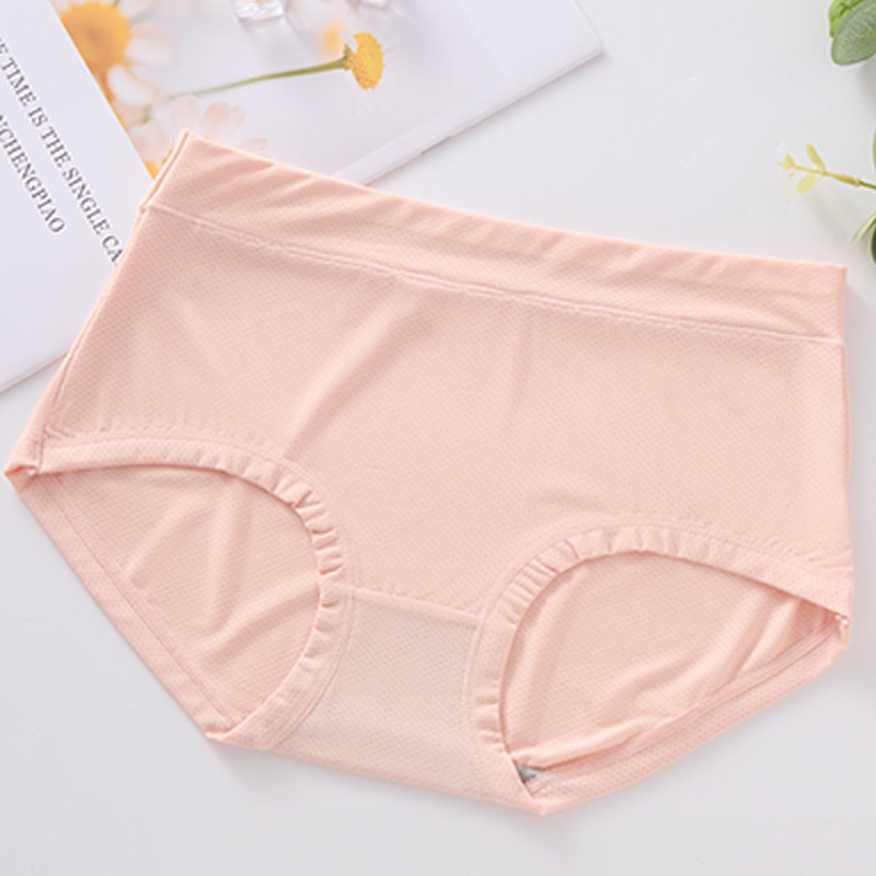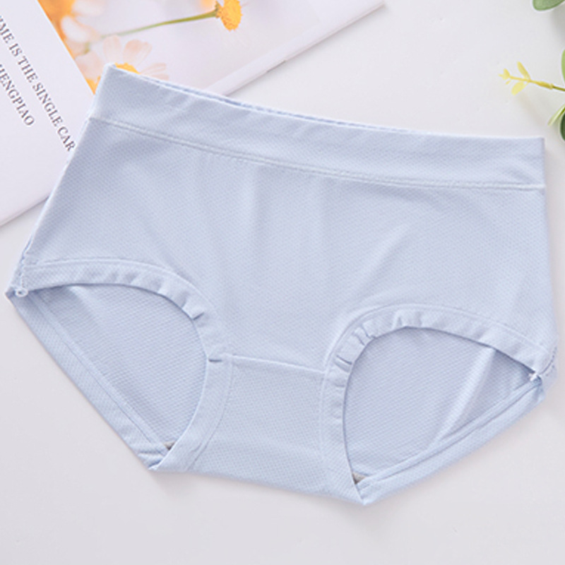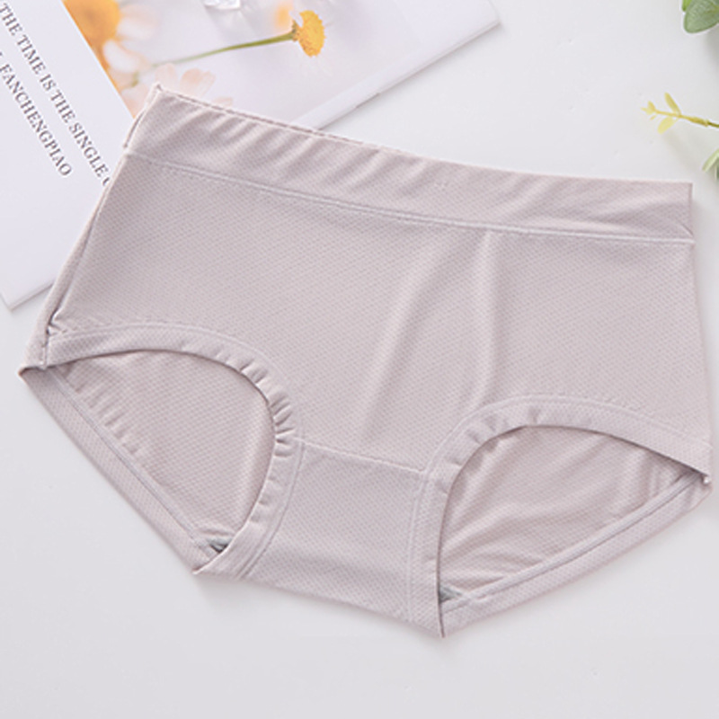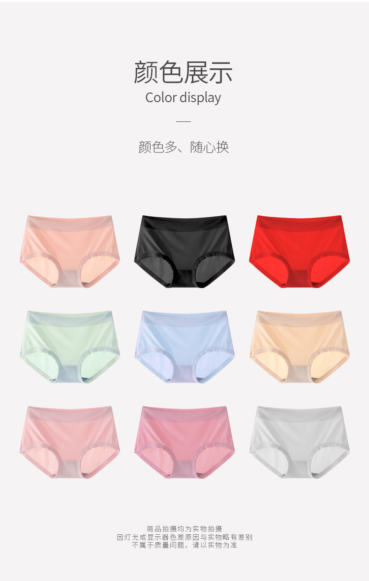아이스 실크 팬티 여성용 메쉬 미드 웨이스트 단색 마카롱 통기성 코튼 가랑이 소녀 브리프 라이브 폭발 도매스토어 가기