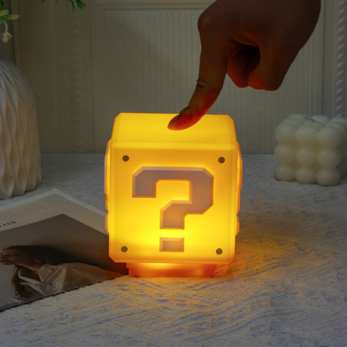 동일한 마리오 물음표 소리 충전 야간 조명 사각형 벽돌 데스크탑 USB 유도 야간 조명 크로스 보더스토어 가기