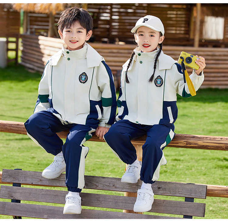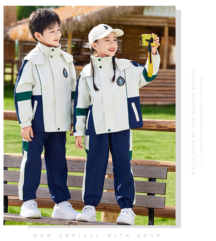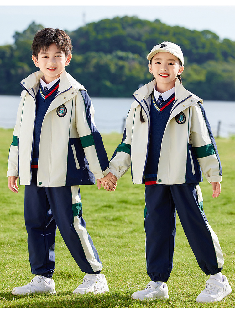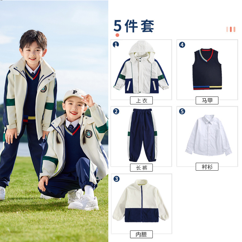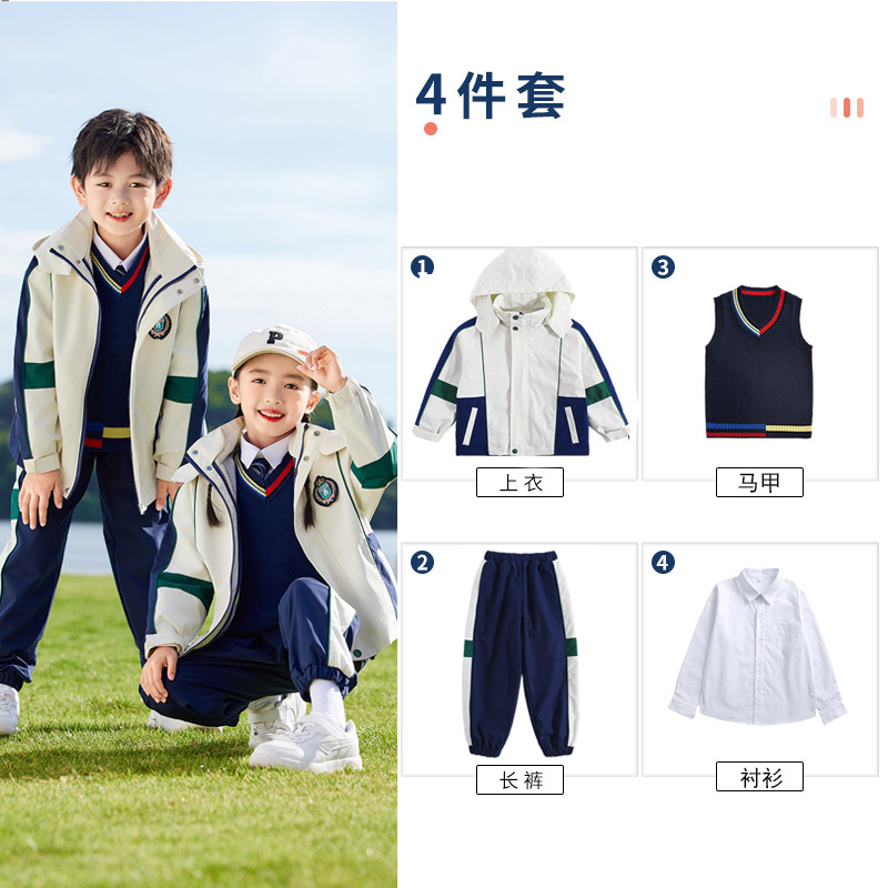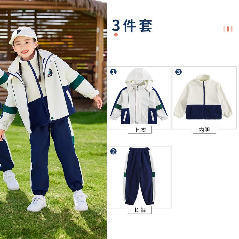 유치원 정원복 봄 가을 겨울 새 러쉬 옷 3 종 세트 초등학교 교복 운동복 베이지 어린이 수업복