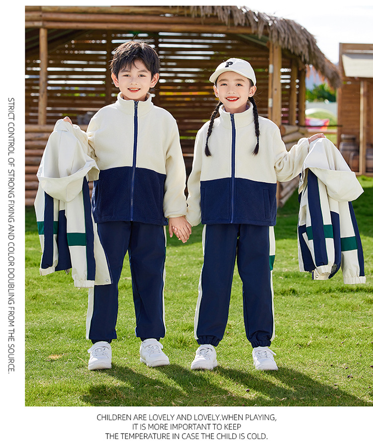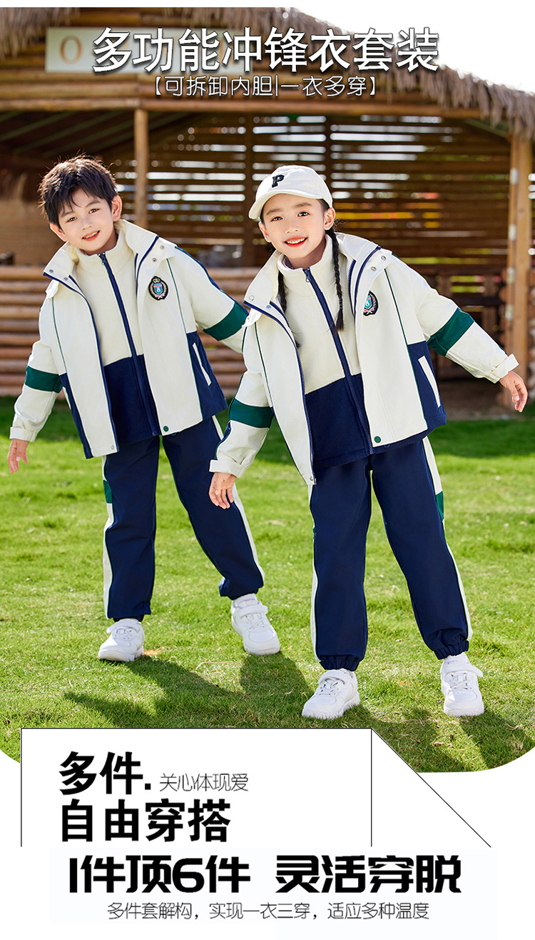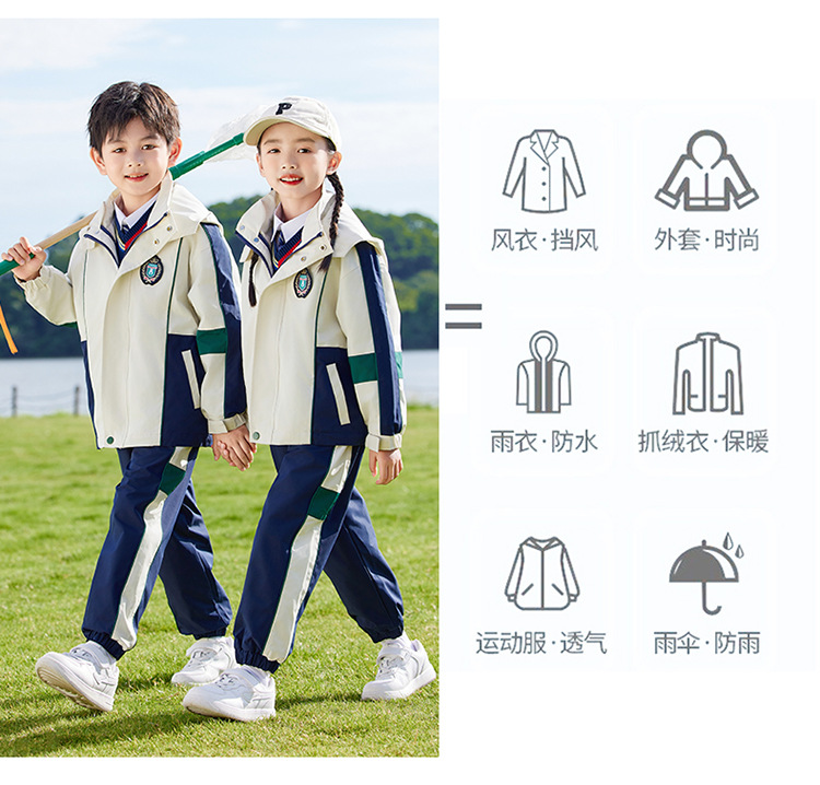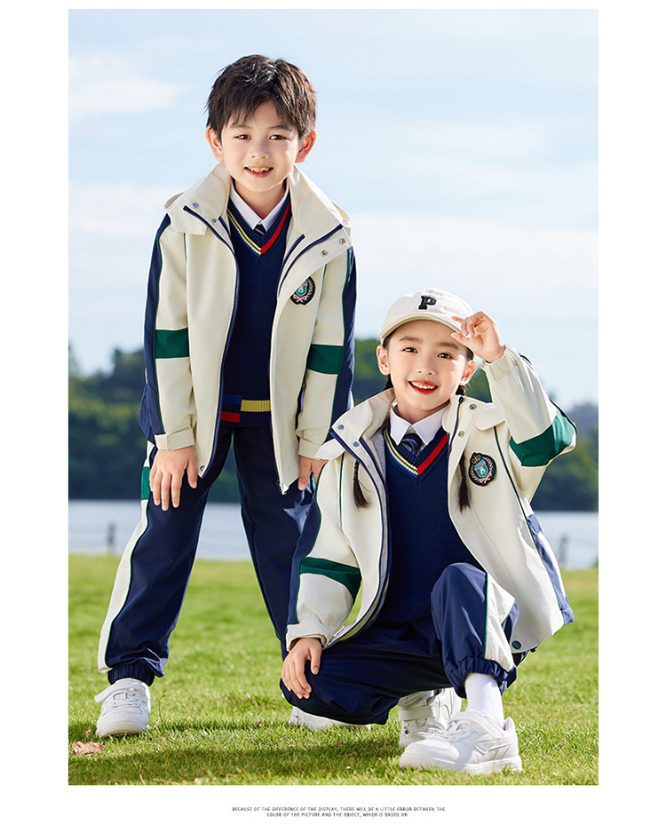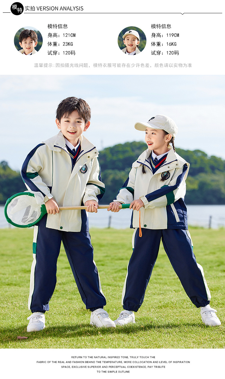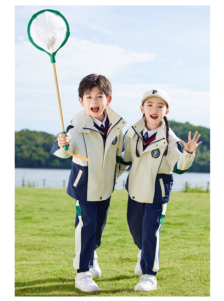 유치원 정원복 봄 가을 겨울 새 러쉬 옷 3 종 세트 초등학교 교복 운동복 베이지 어린이 수업복