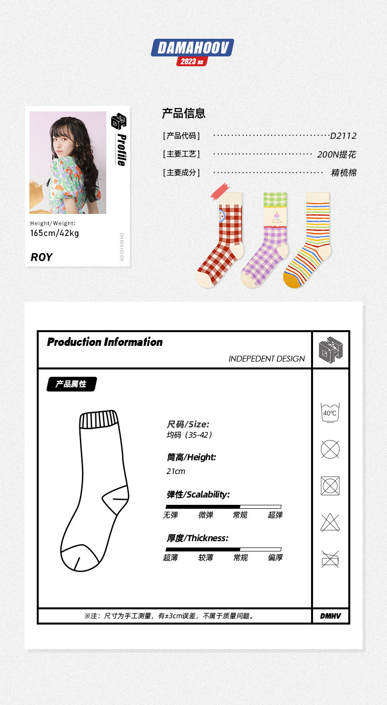 DAMAHOOV 양말 여자 한국 달콤한 귀여운 대학 스타일 양말 긴 튜브 원래 디자인 감각 면 양말
