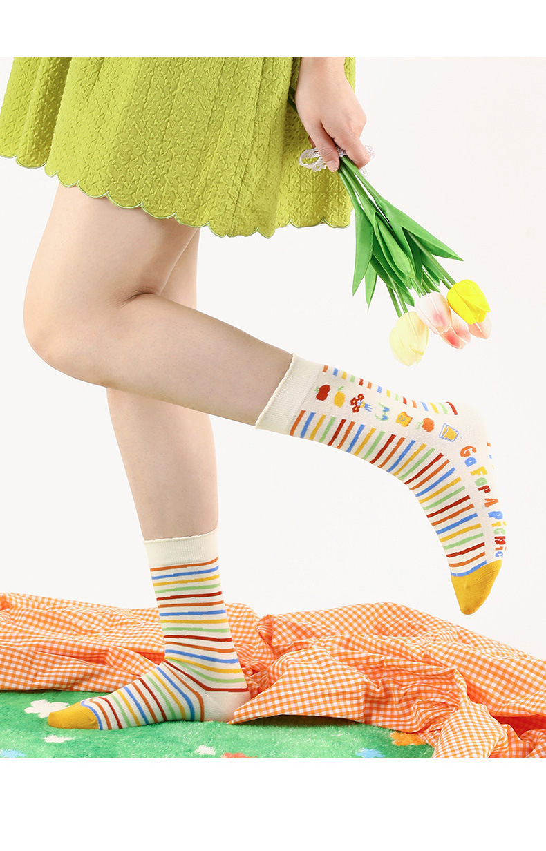 DAMAHOOV 양말 여자 한국 달콤한 귀여운 대학 스타일 양말 긴 튜브 원래 디자인 감각 면 양말스토어 가기