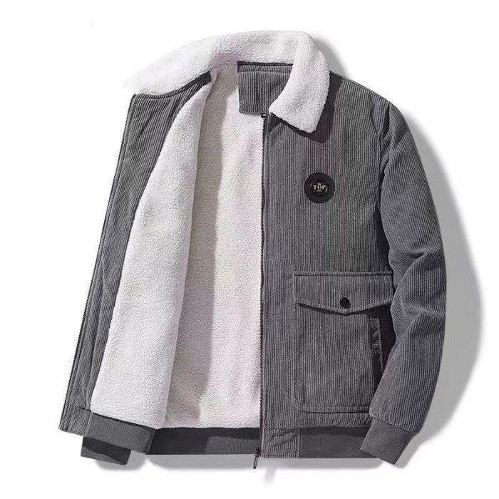 가을과 겨울 코듀로이 재킷 남자의 느슨한 탑 2023 새로운 겨울 기모 두꺼운 따뜻한 면 재킷