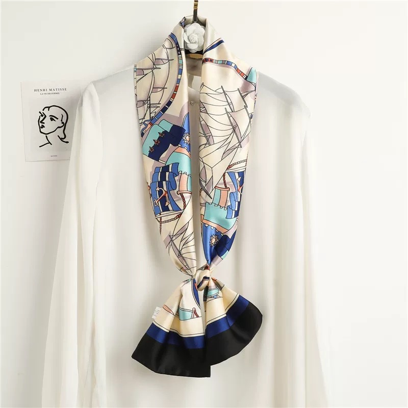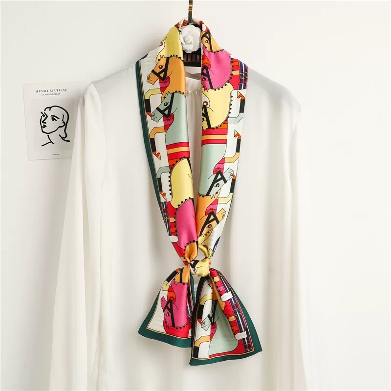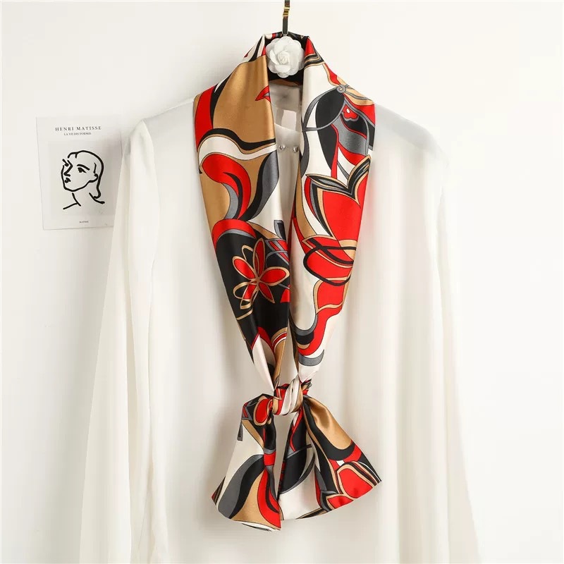 새로운 좁은 스카프 여성용 리본 헤어 액세서리 타이 팩 작은 스카프 인쇄 헤어 밴드 모조 실크 긴 장식 스카프 도매
