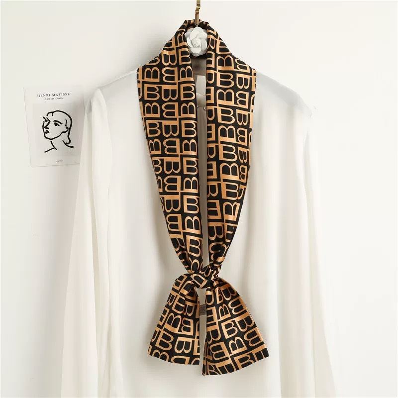 새로운 좁은 스카프 여성용 리본 헤어 액세서리 타이 팩 작은 스카프 인쇄 헤어 밴드 모조 실크 긴 장식 스카프 도매스토어 가기