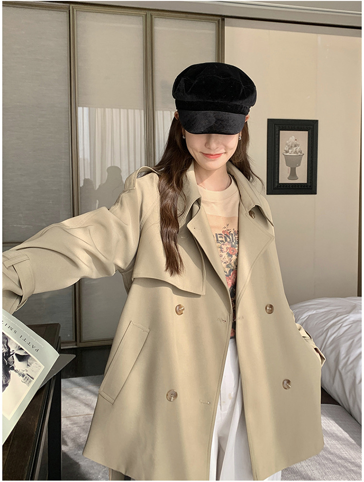 스몰 트렌치 코트 여성용 2023 봄과 가을 새로운 한국 고급 Khachi 영어 스타일 더블 브레스트 코트 재킷
