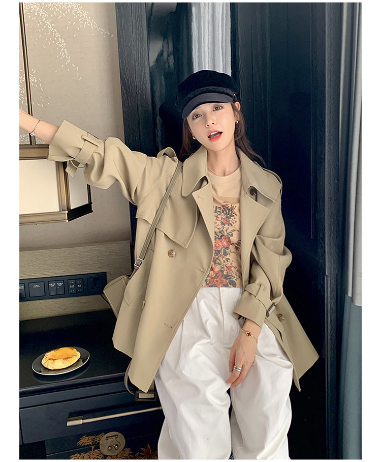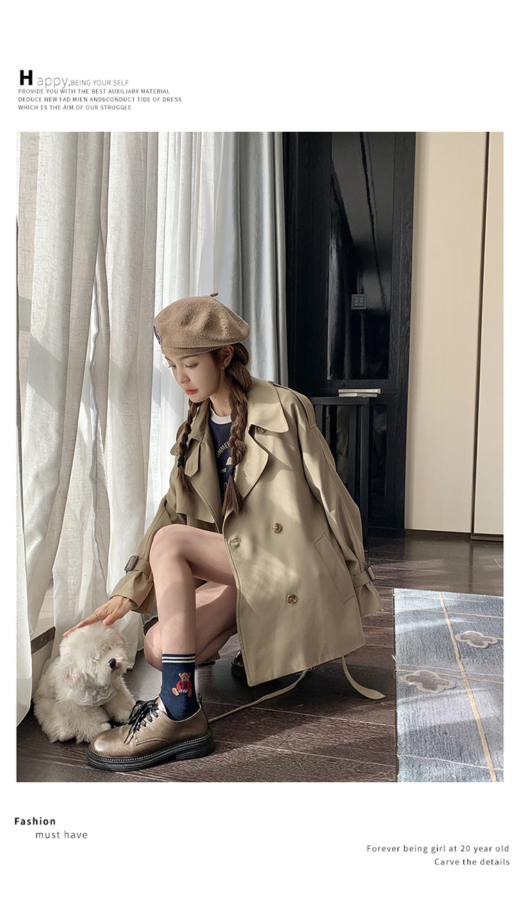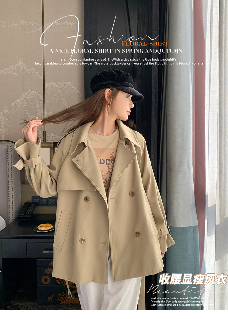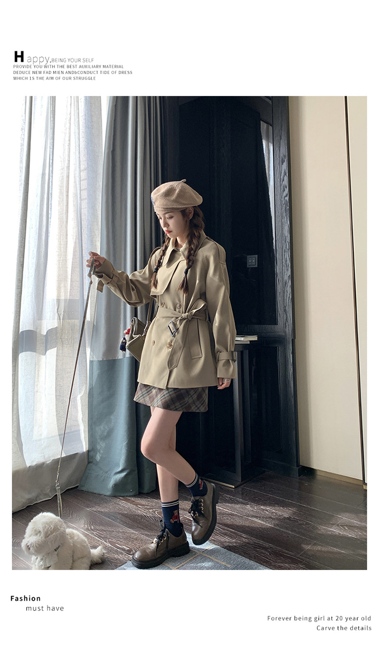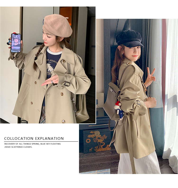 스몰 트렌치 코트 여성용 2023 봄과 가을 새로운 한국 고급 Khachi 영어 스타일 더블 브레스트 코트 재킷스토어 가기