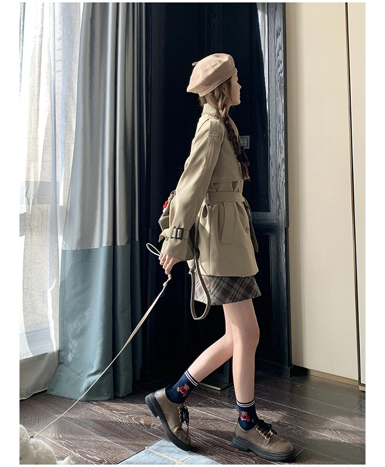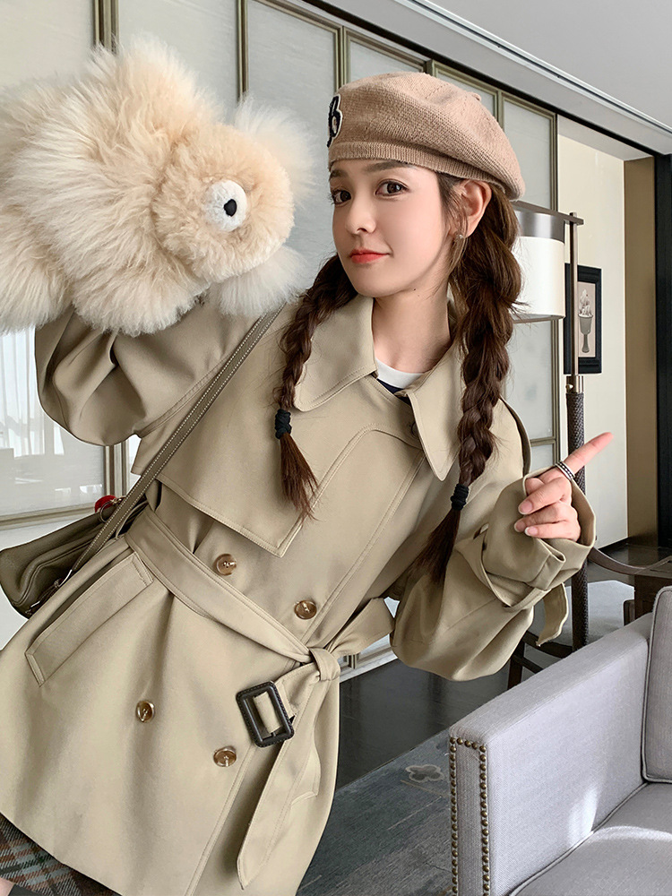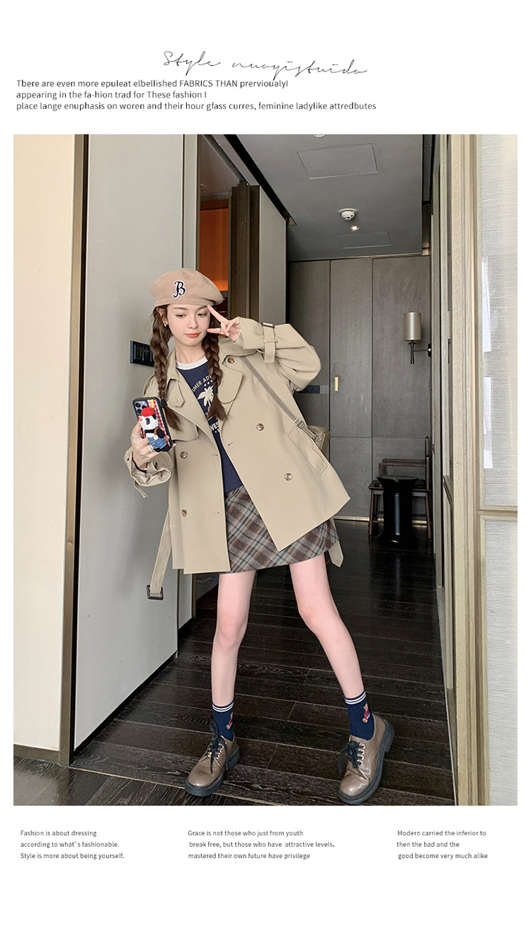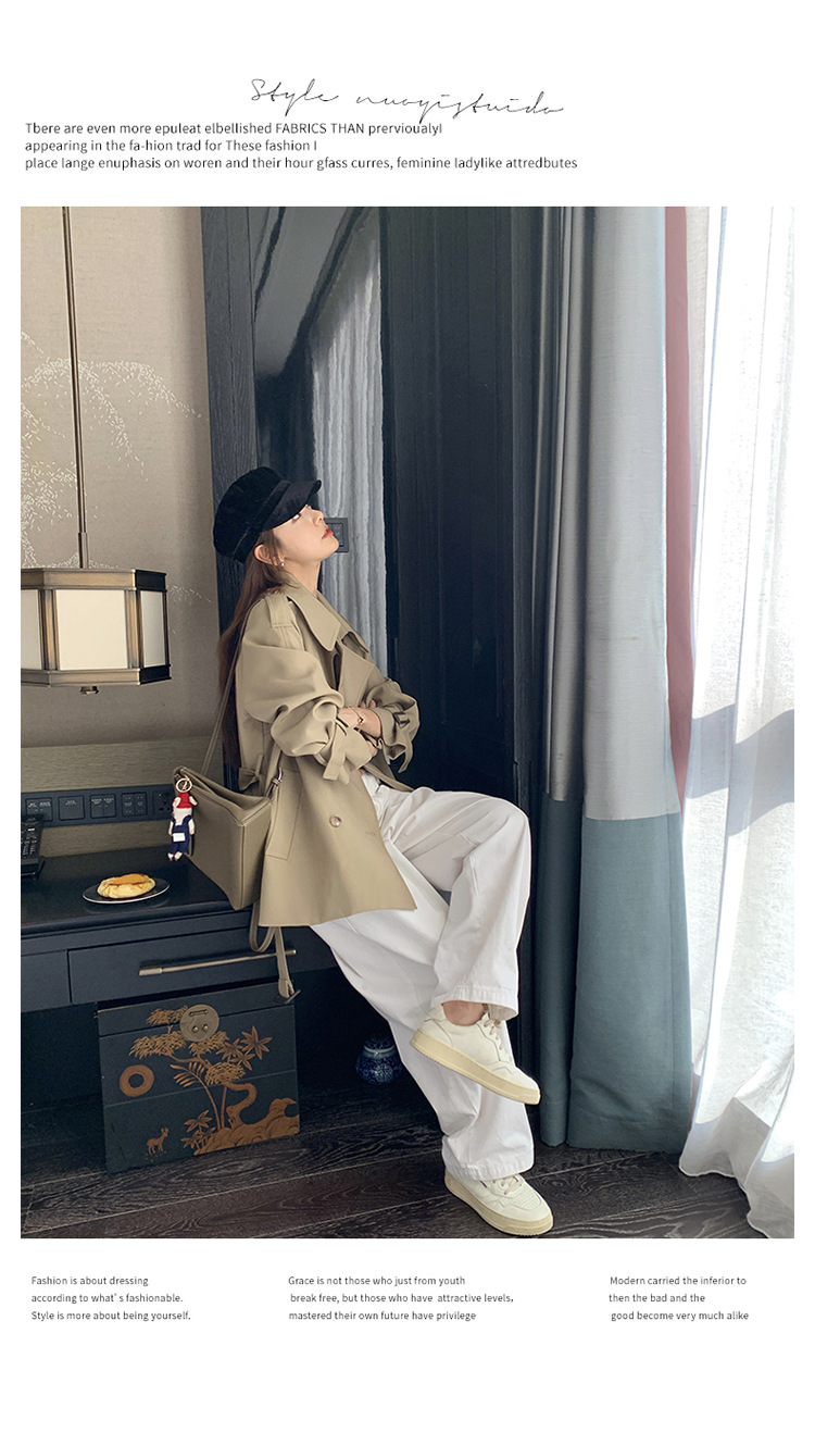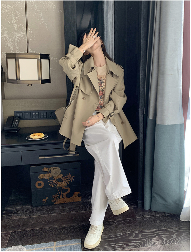 스몰 트렌치 코트 여성용 2023 봄과 가을 새로운 한국 고급 Khachi 영어 스타일 더블 브레스트 코트 재킷스토어 가기