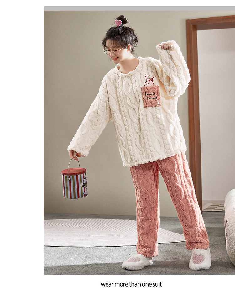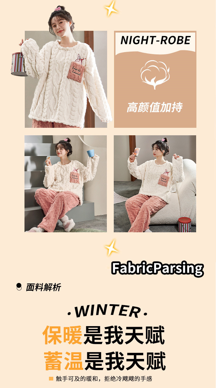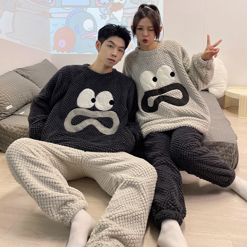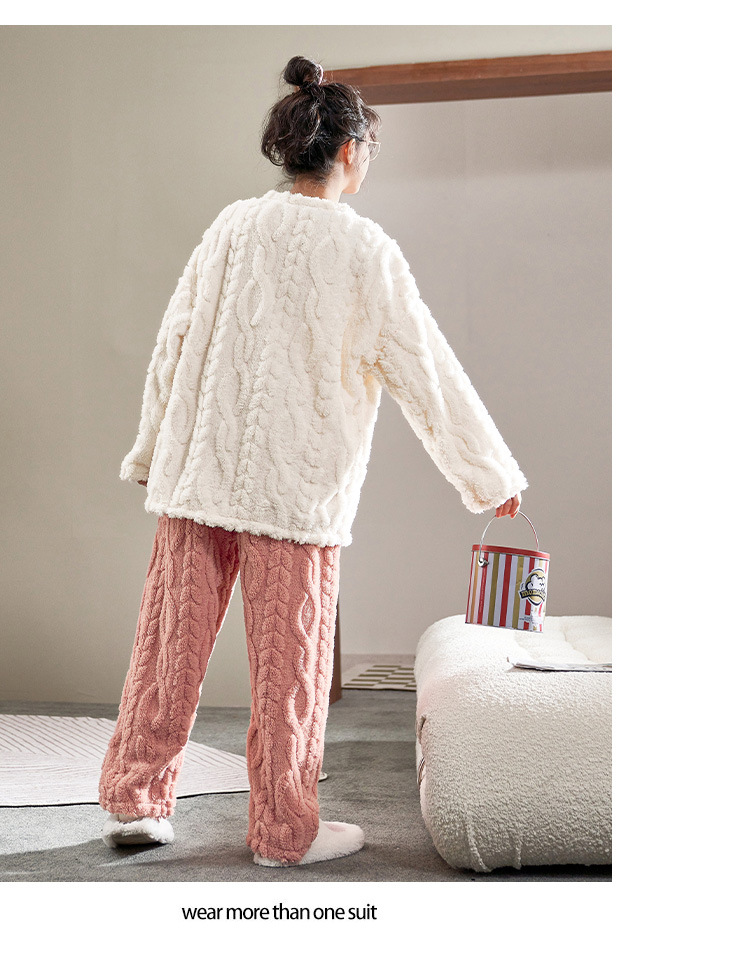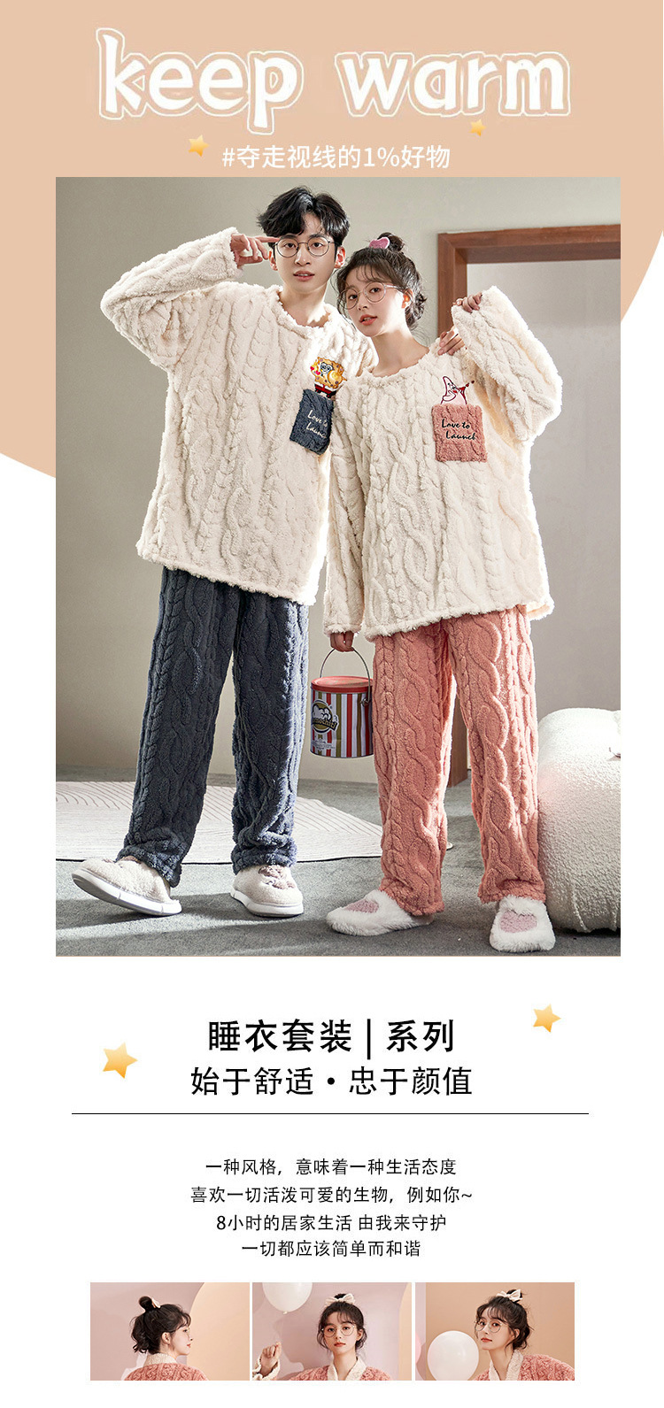 여성을위한 산호 벨벳 커플 잠옷 가을, 겨울 플러스 벨벳 두꺼운 플란넬 따뜻한 캐주얼 웨어러블 홈웨어 세트