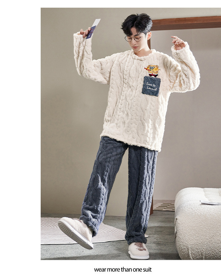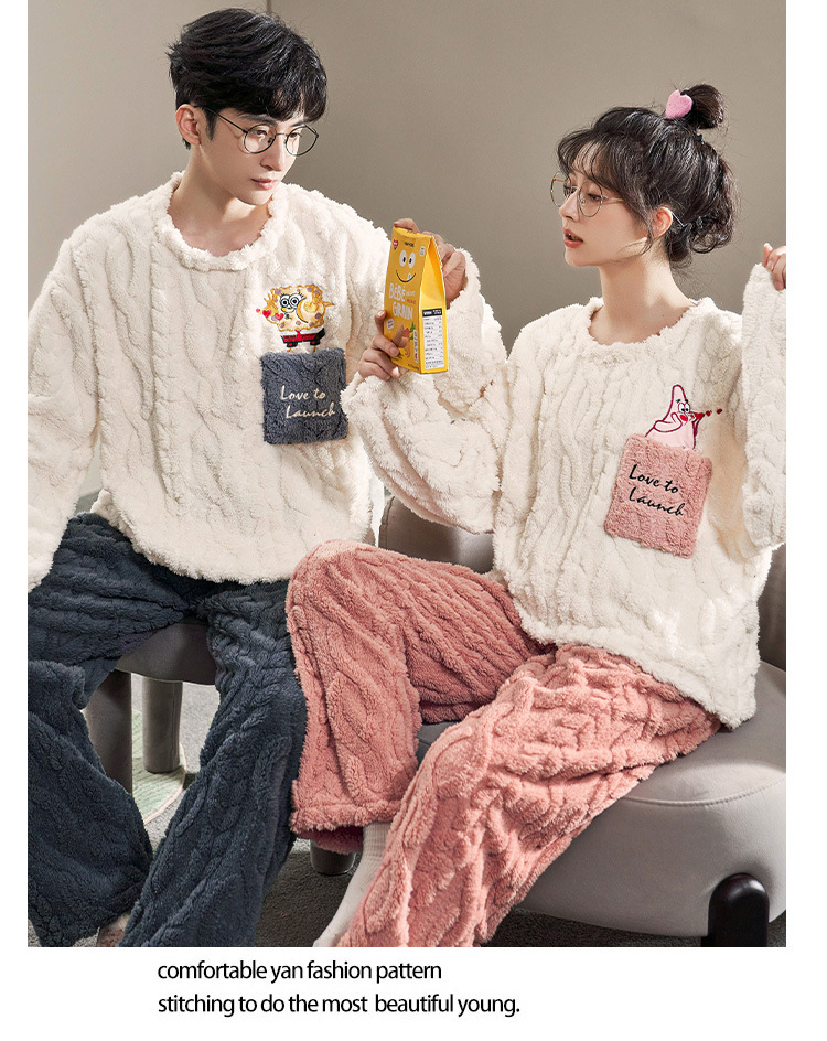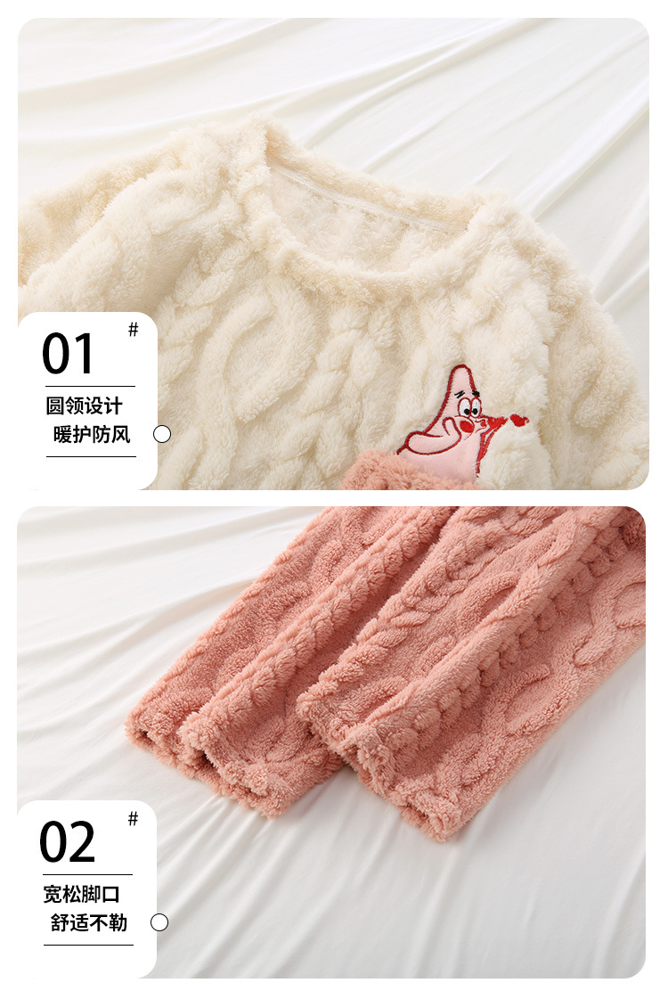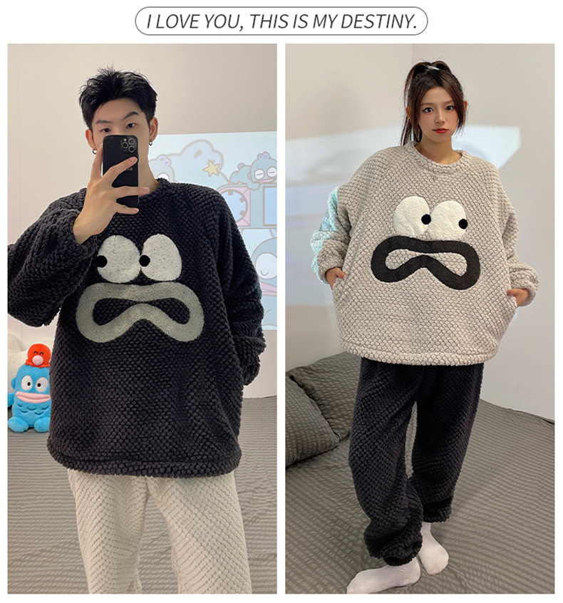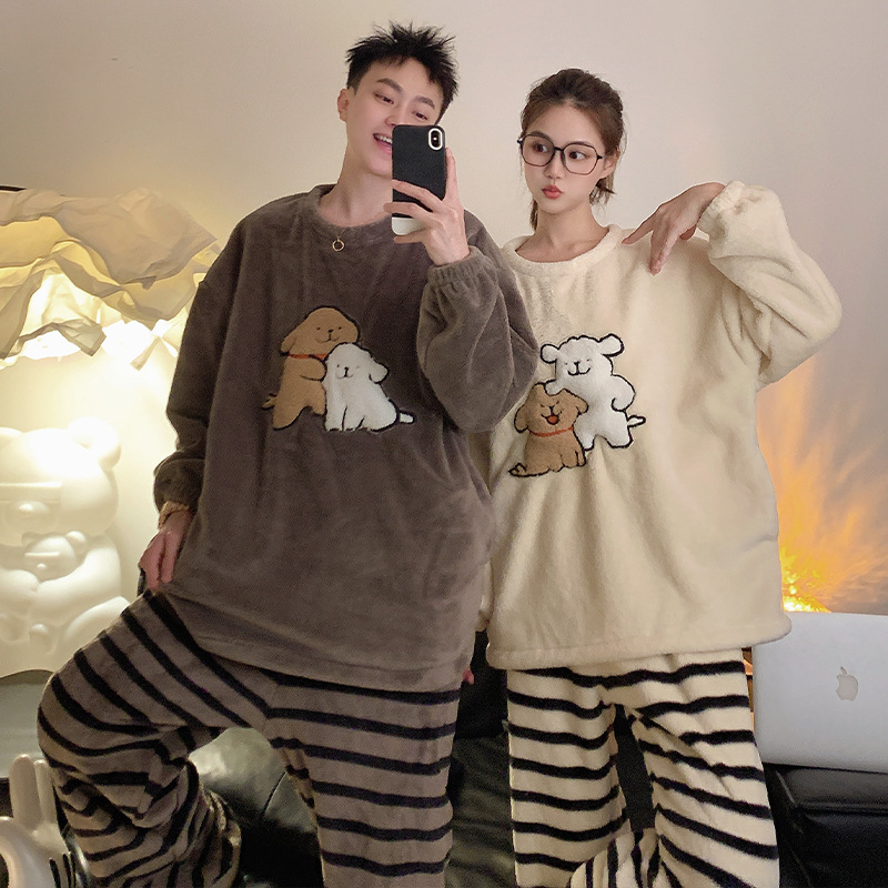 여성을위한 산호 벨벳 커플 잠옷 가을, 겨울 플러스 벨벳 두꺼운 플란넬 따뜻한 캐주얼 웨어러블 홈웨어 세트