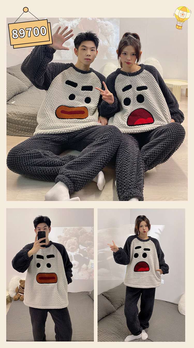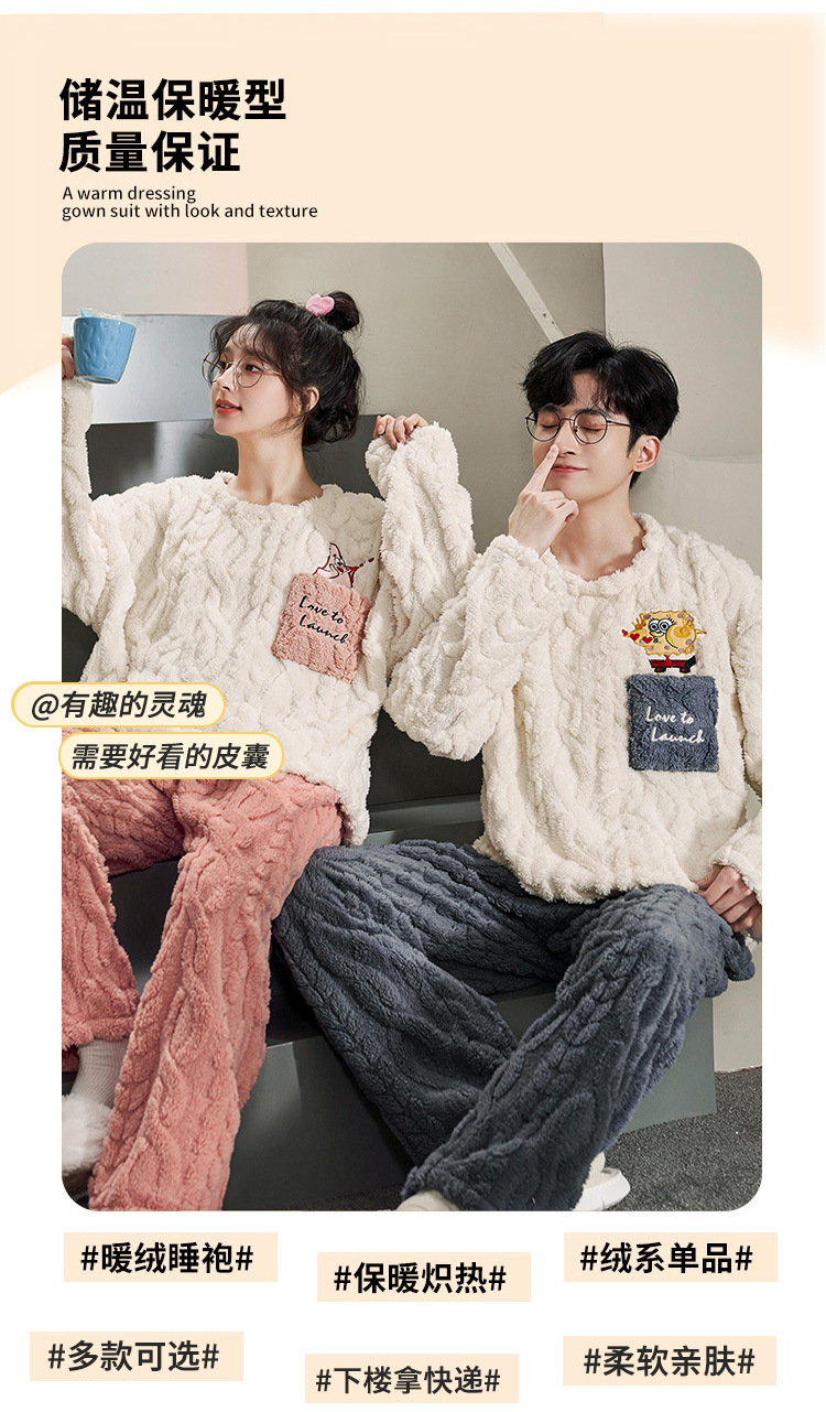 여성을위한 산호 벨벳 커플 잠옷 가을, 겨울 플러스 벨벳 두꺼운 플란넬 따뜻한 캐주얼 웨어러블 홈웨어 세트스토어 가기
